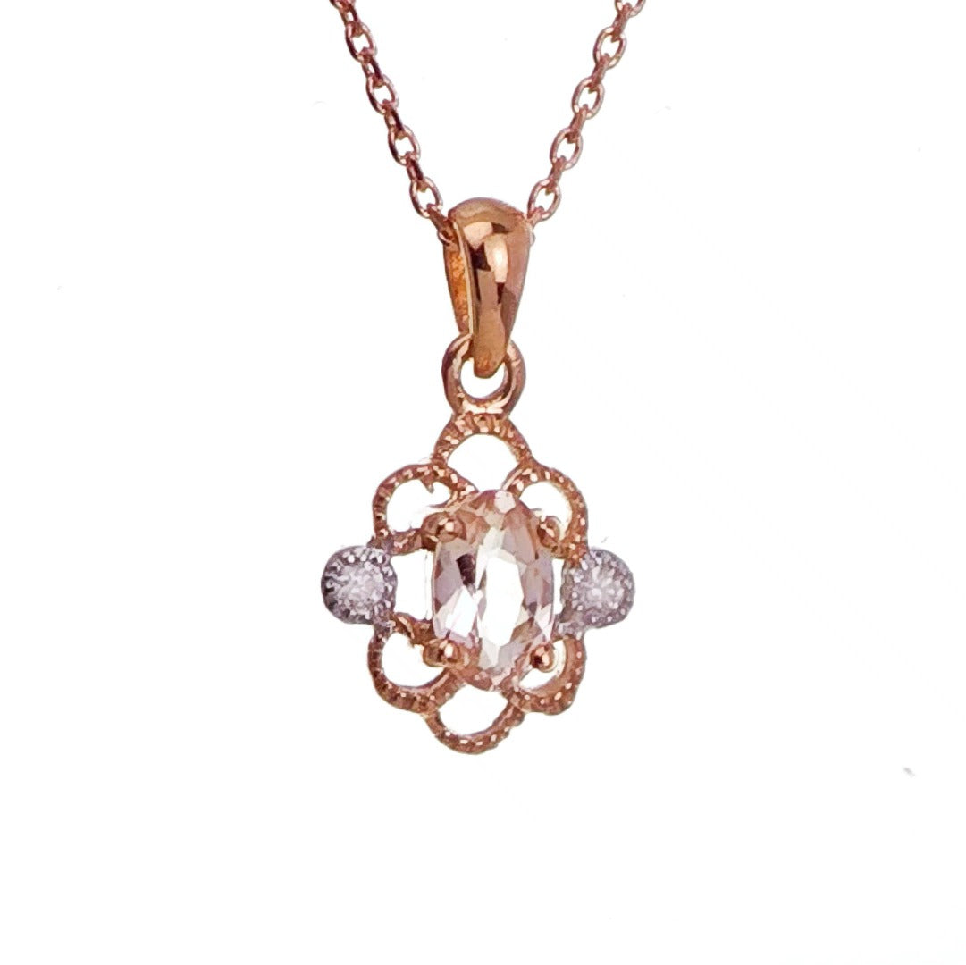 9ct Morganite Diamond Necklace Rose Gold Pink 0.18 ct Natural