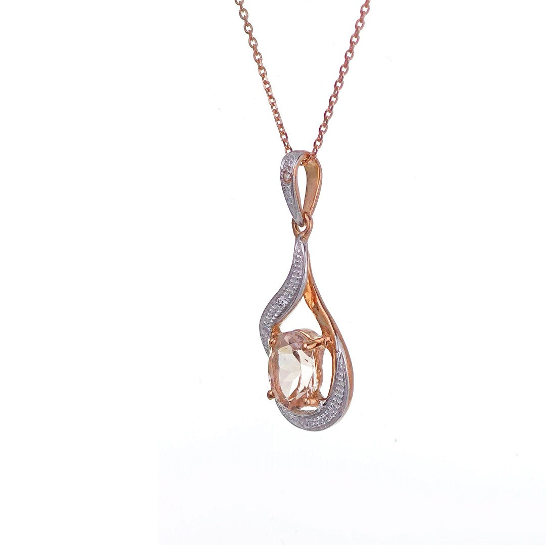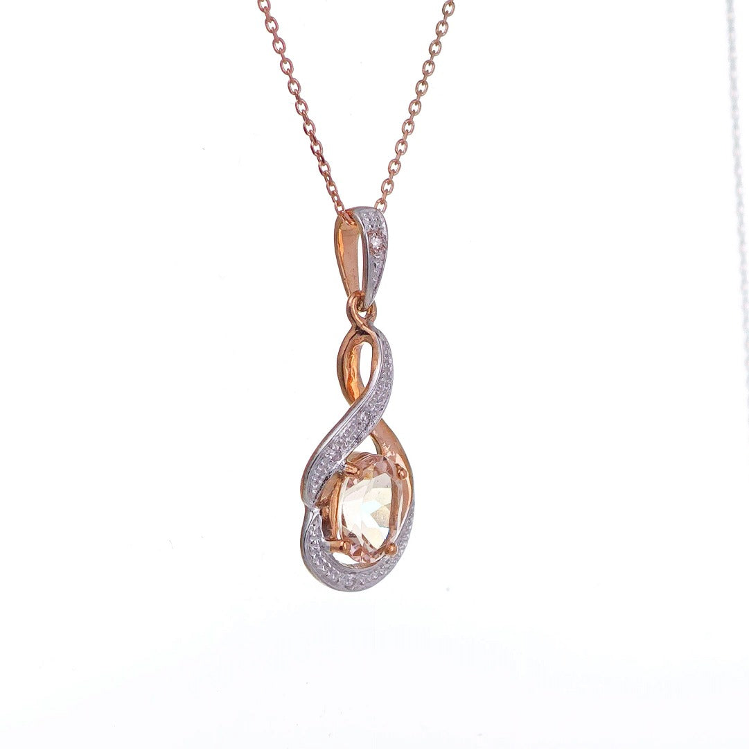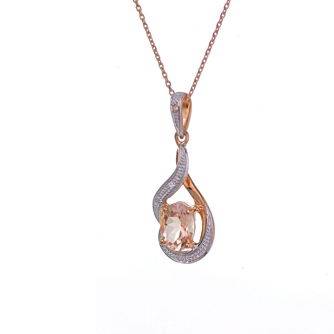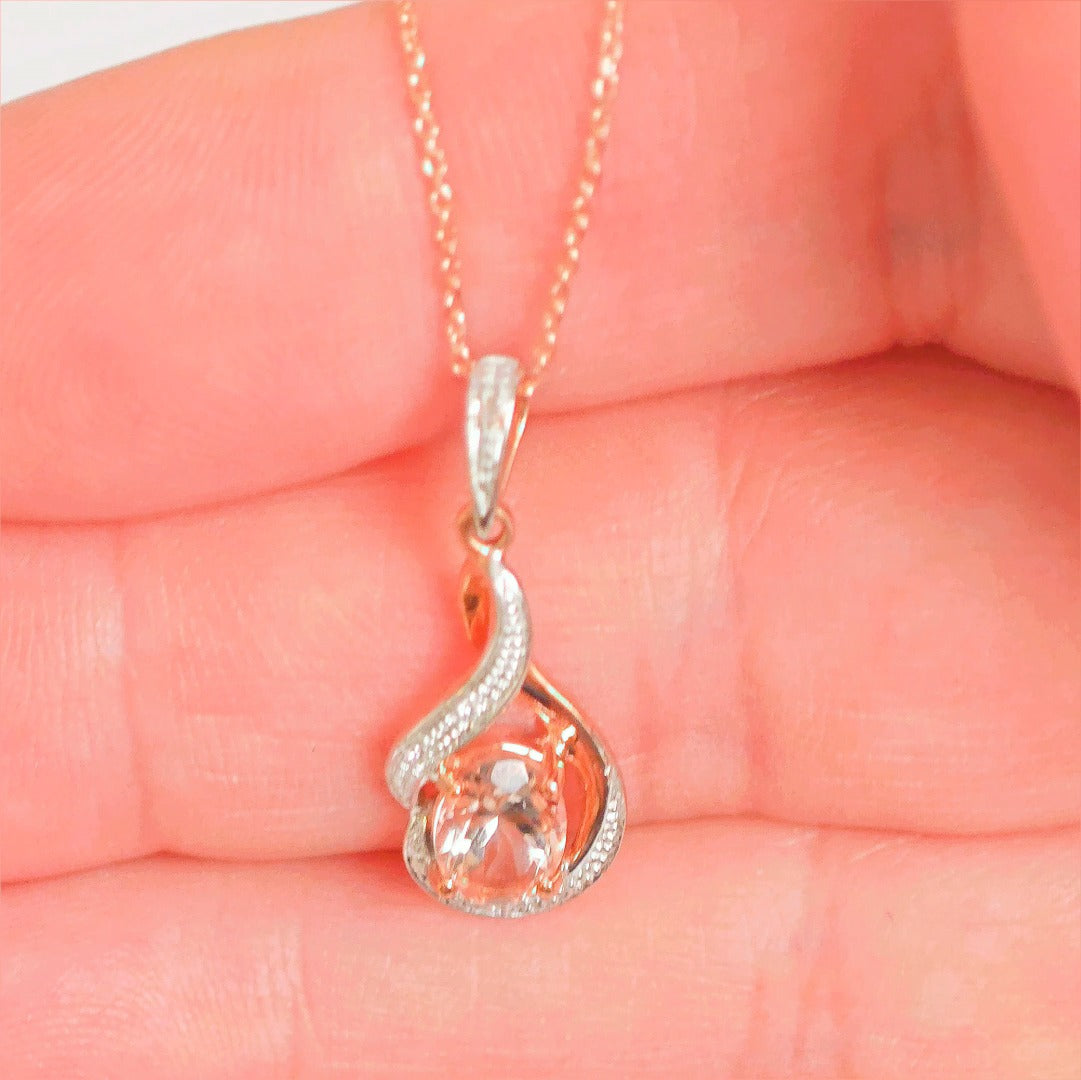 9ct Morganite Diamond Necklace Rose Gold Pink 0.65 ct Natural Gemstone