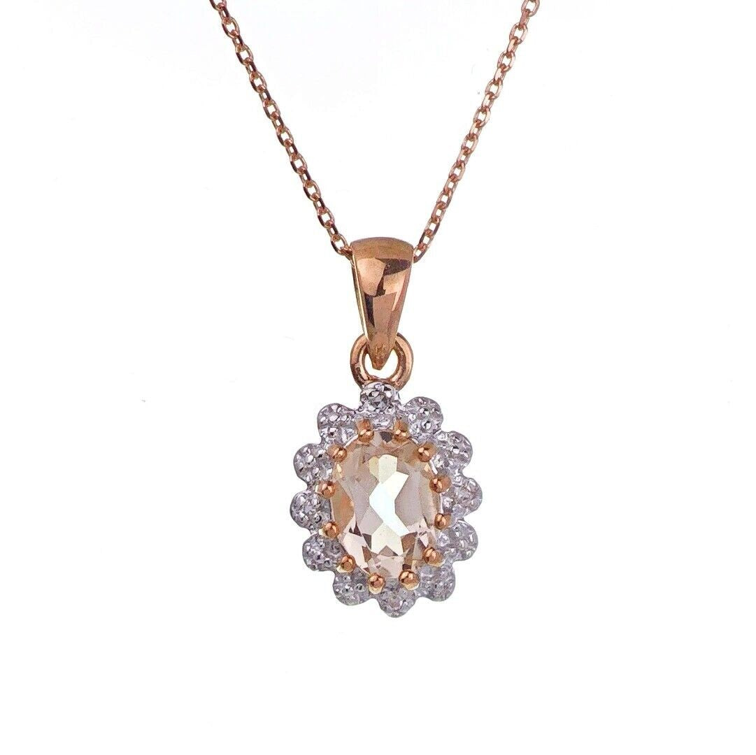 9ct Morganite Necklace Diamonds Rose Gold 0.4ct Pink Oval Natural Gemstone