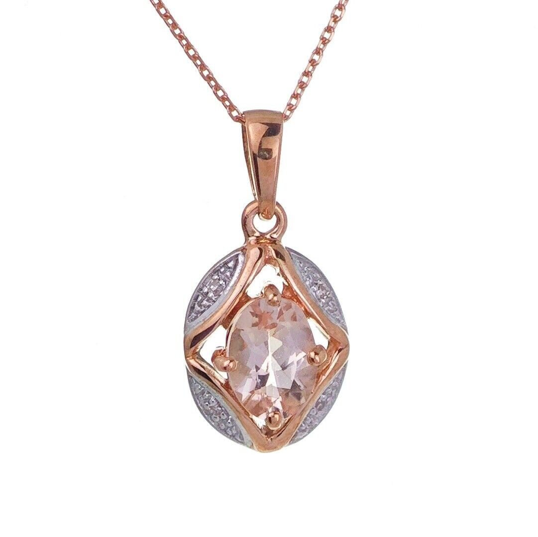 9ct Morganite Necklace Rose Gold 0.66ct Pink Oval Natural Gemstone