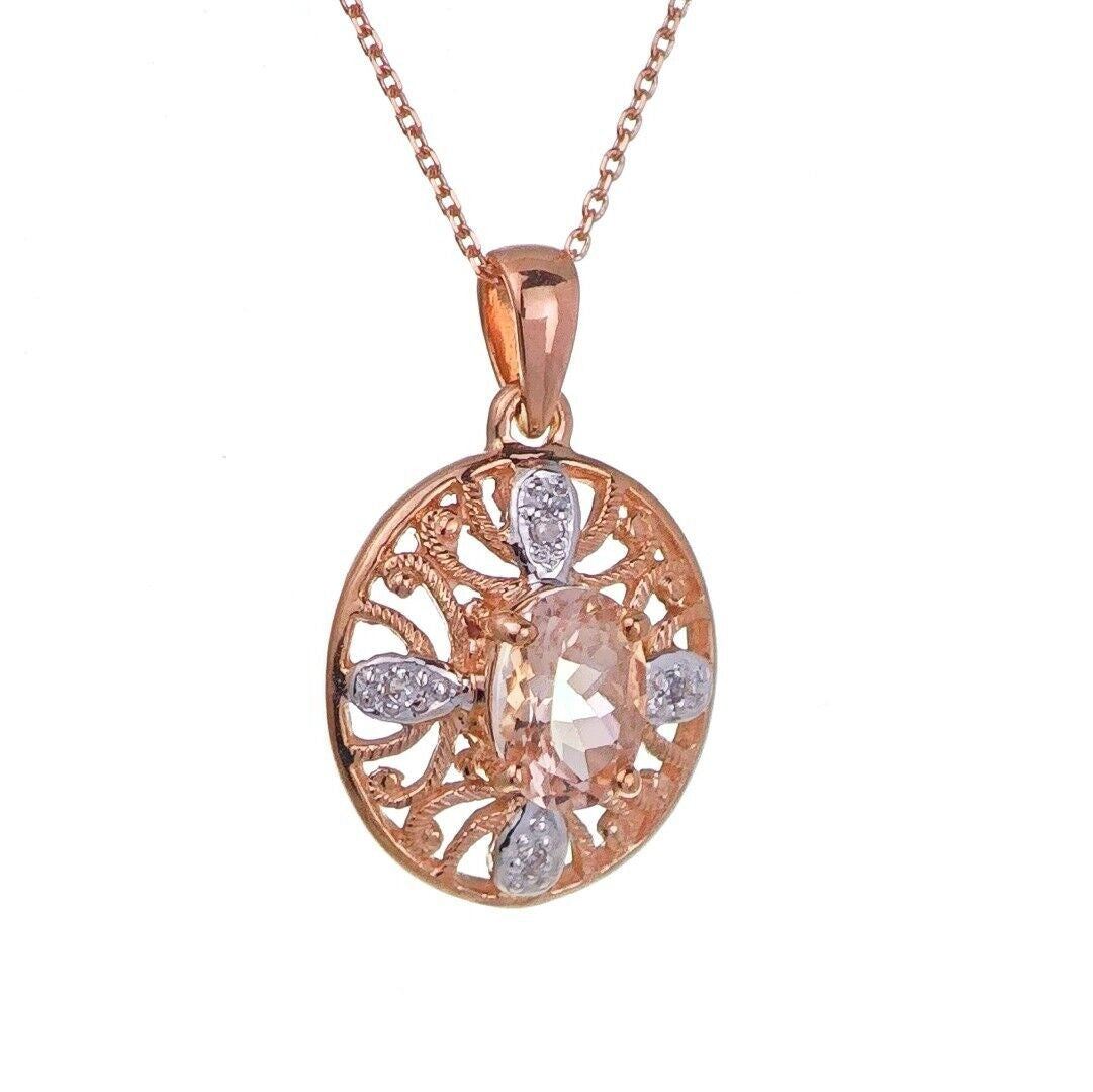 9ct Morganite Necklace Rose Gold 0.65ct Pink Oval Natural Gemstone