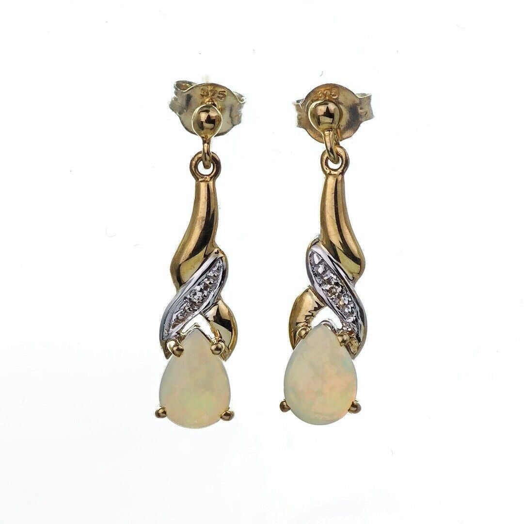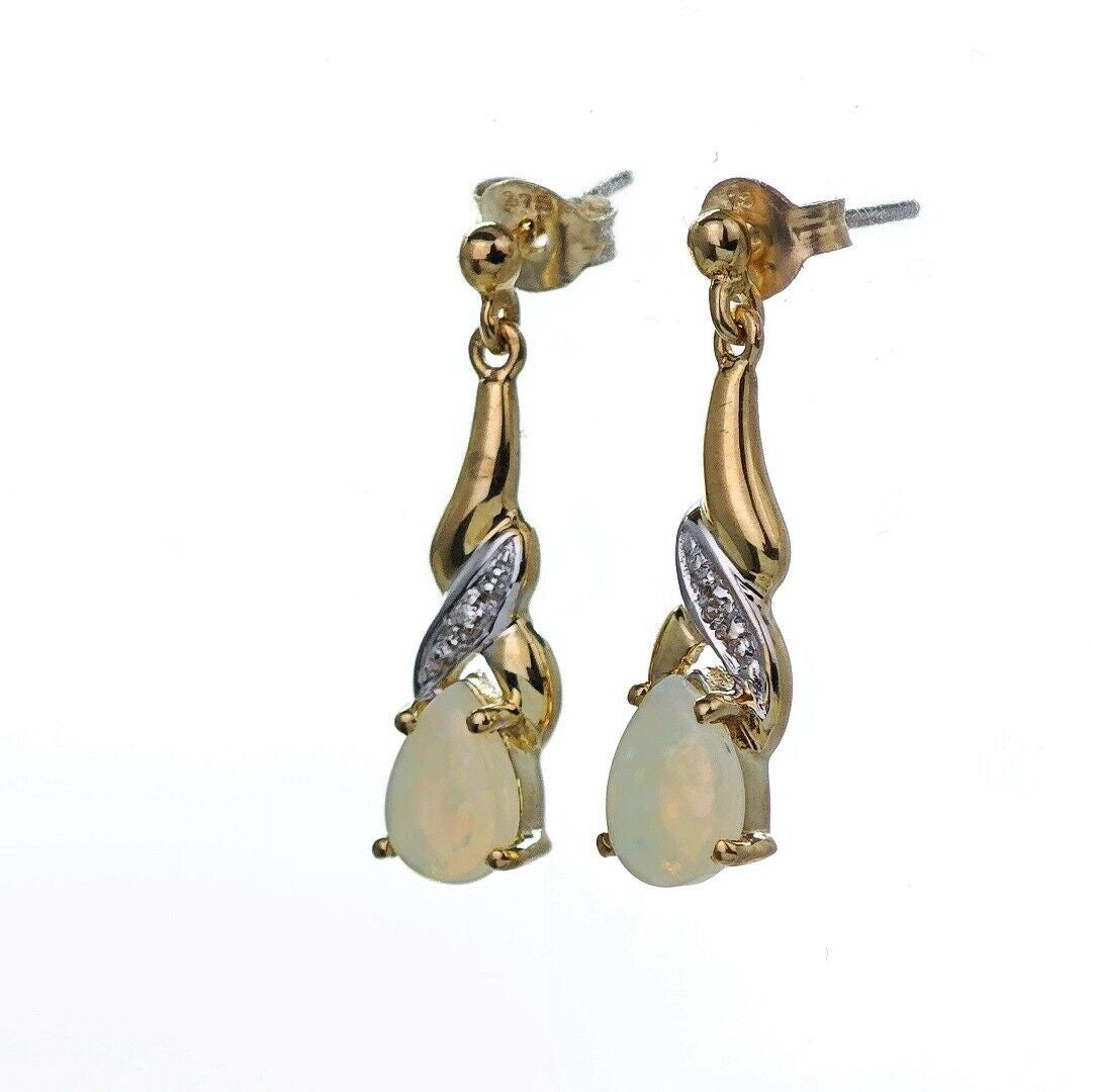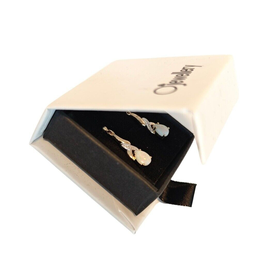 9ct Opal Dangle Earrings Diamond Gold Natural White Gemstones 0.88ct