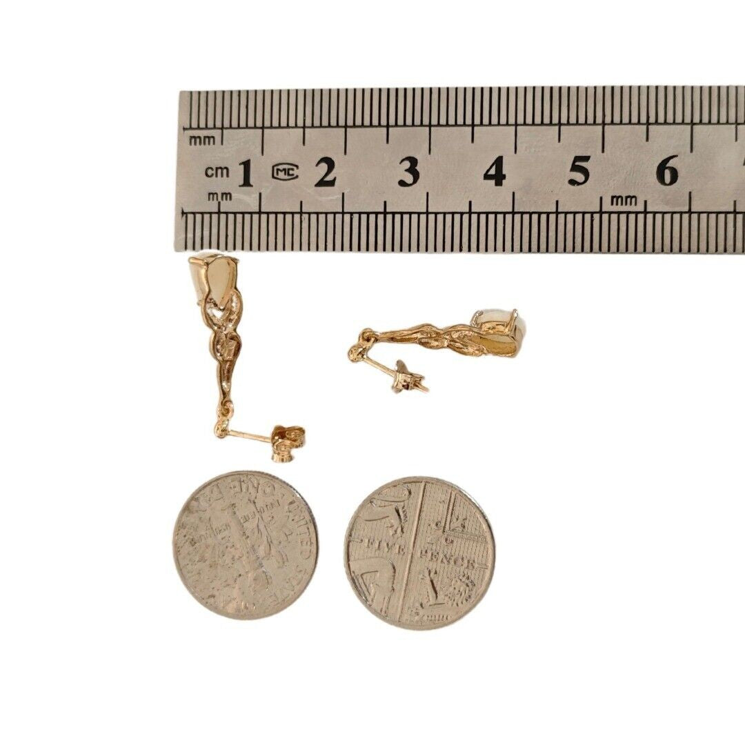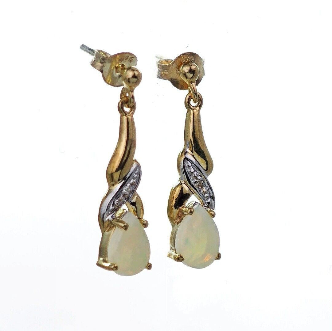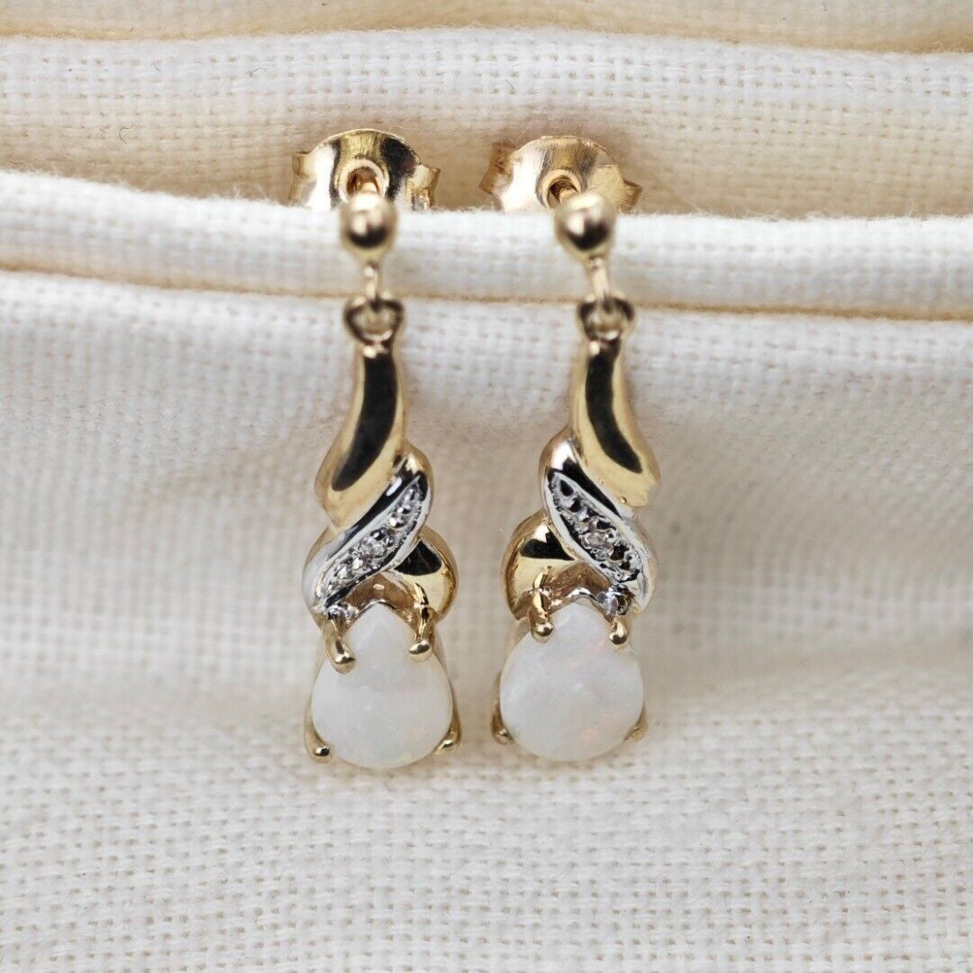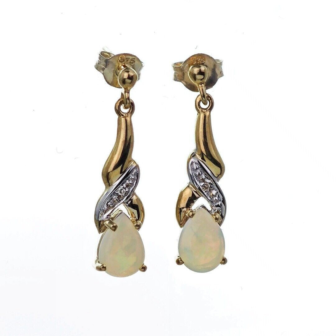 9ct Opal Dangle Earrings Diamond Gold Natural White Gemstones 0.88ct