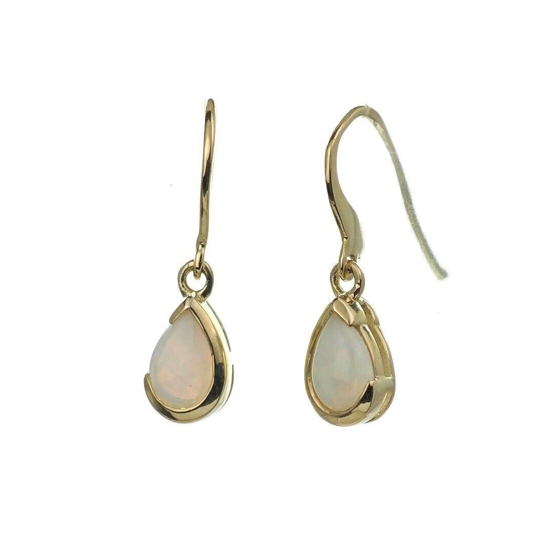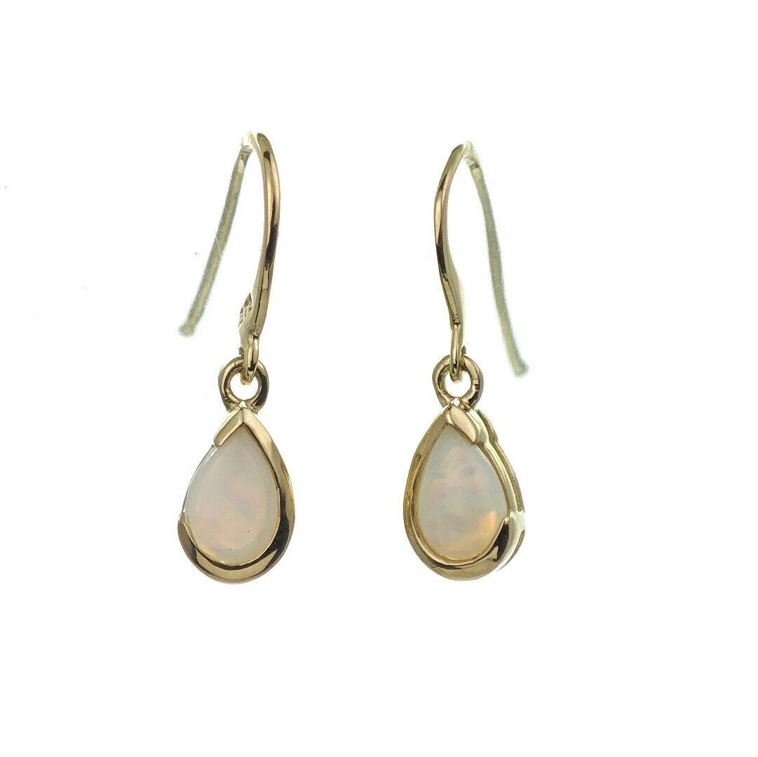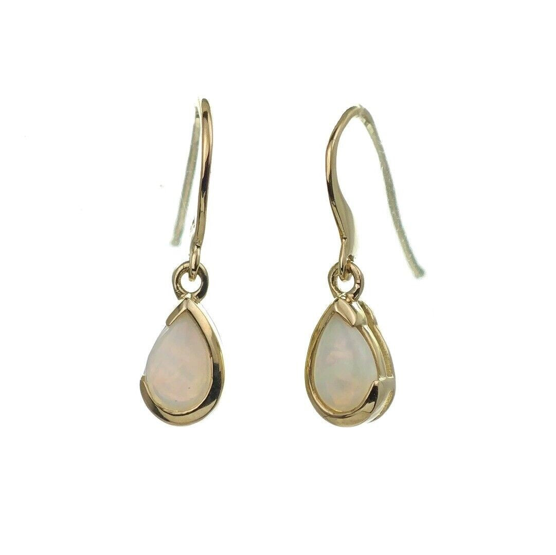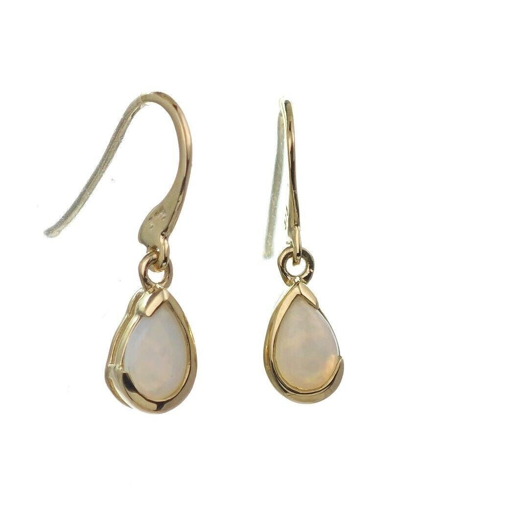 9ct Opal Dangle Earrings Yellow Gold Handmade Natural White Opulescent Gemstones