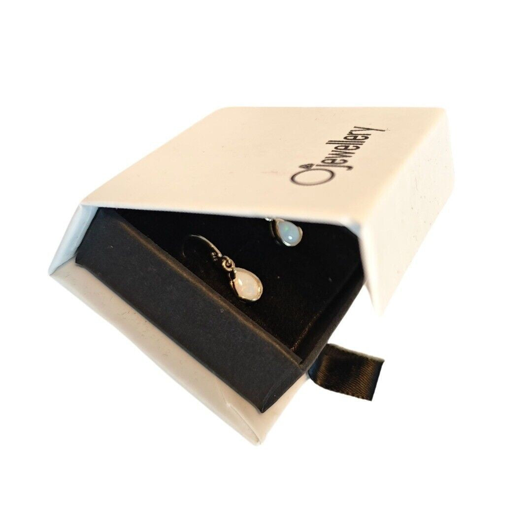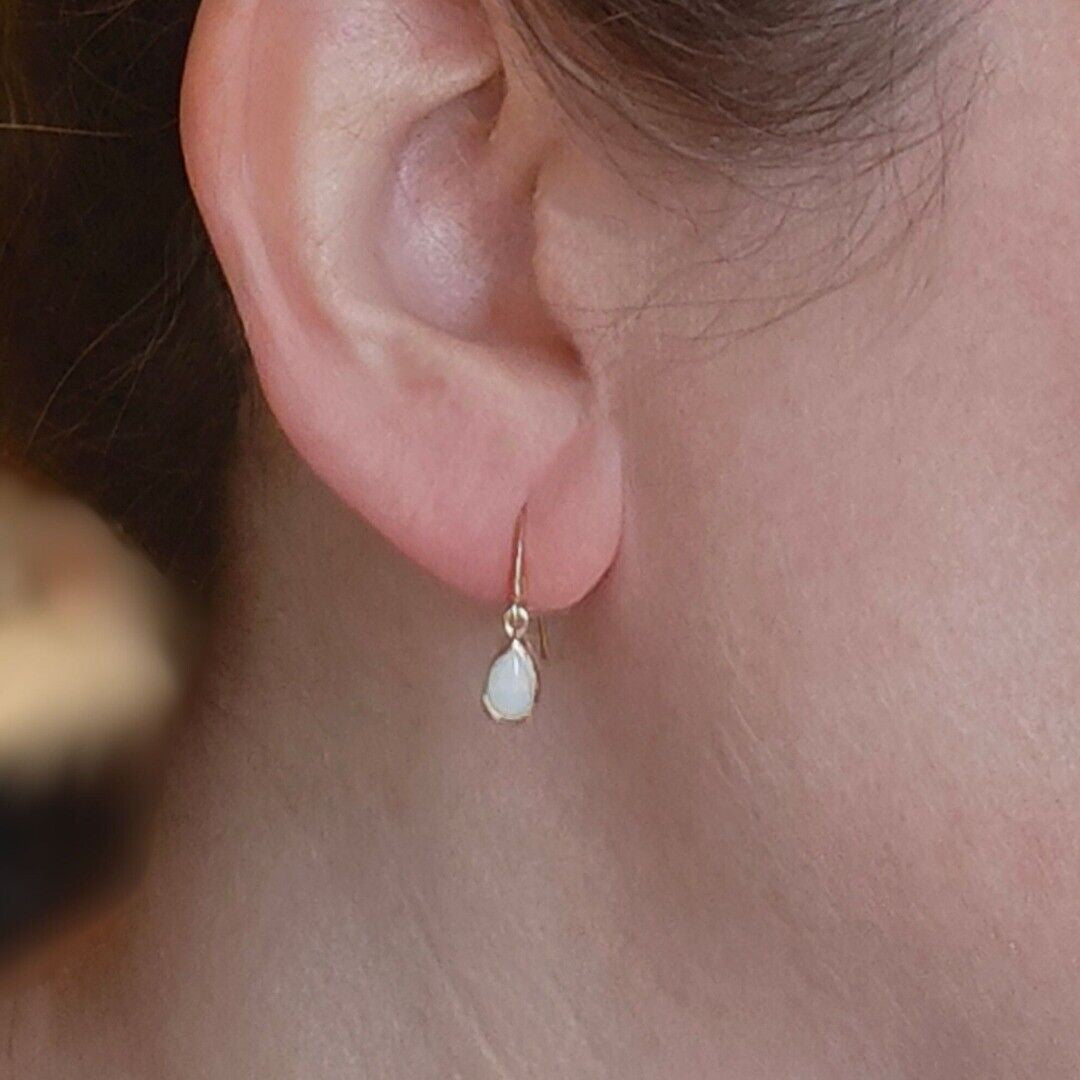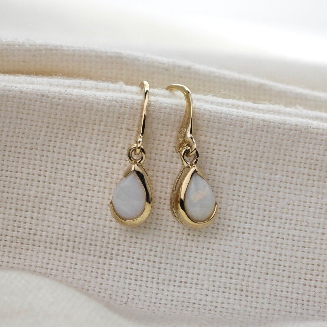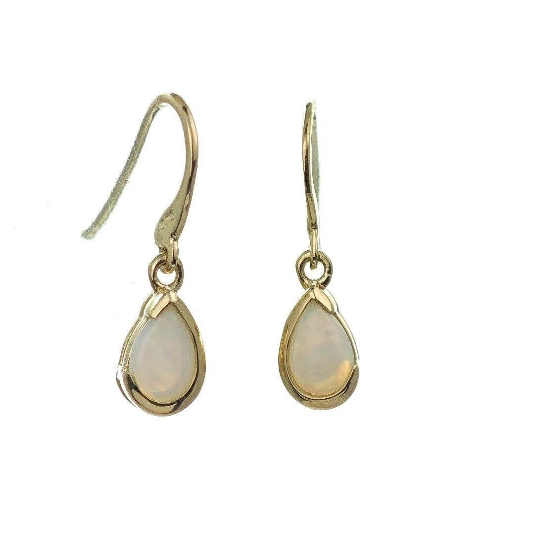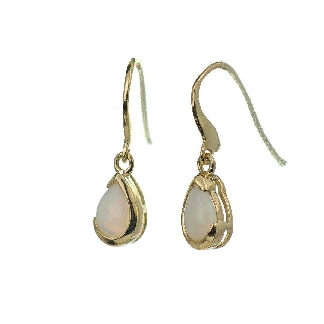 9ct Opal Dangle Earrings Yellow Gold Handmade Natural White Opulescent Gemstones