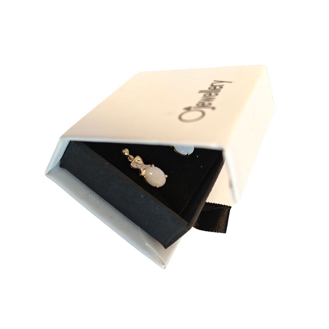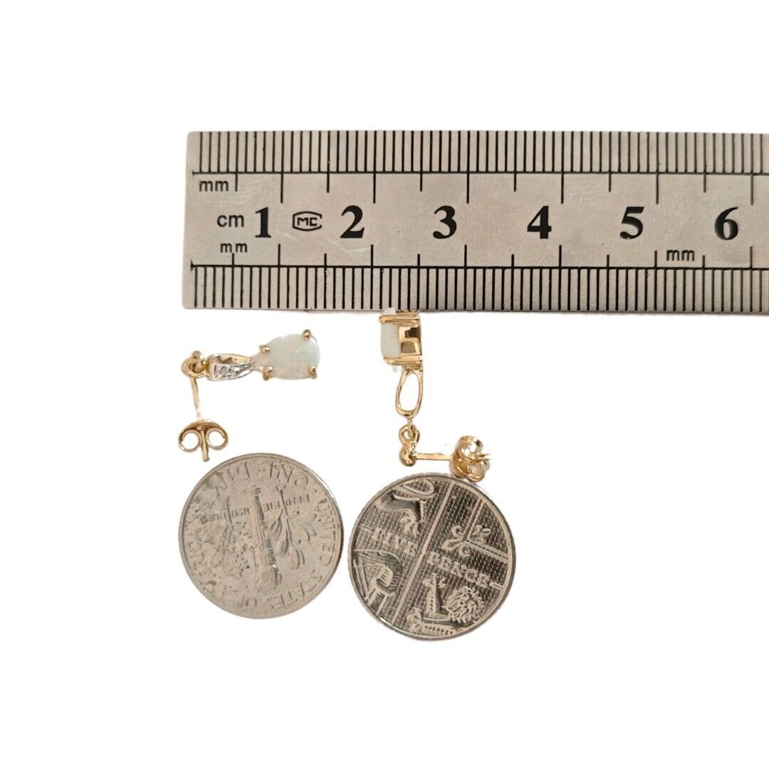 9ct Opal Diamond Drop Earrings Gold Natural White Gemstones 1.38ct