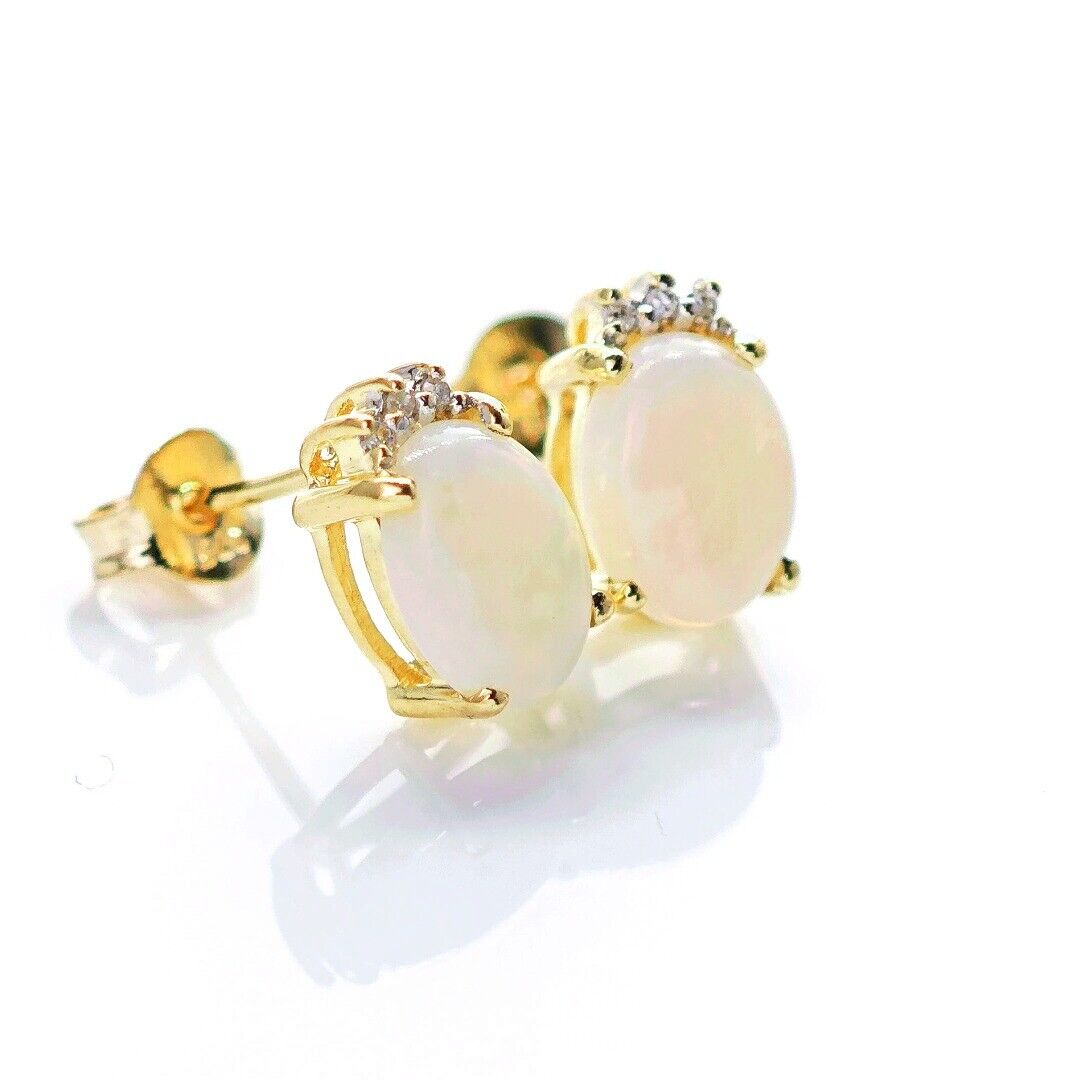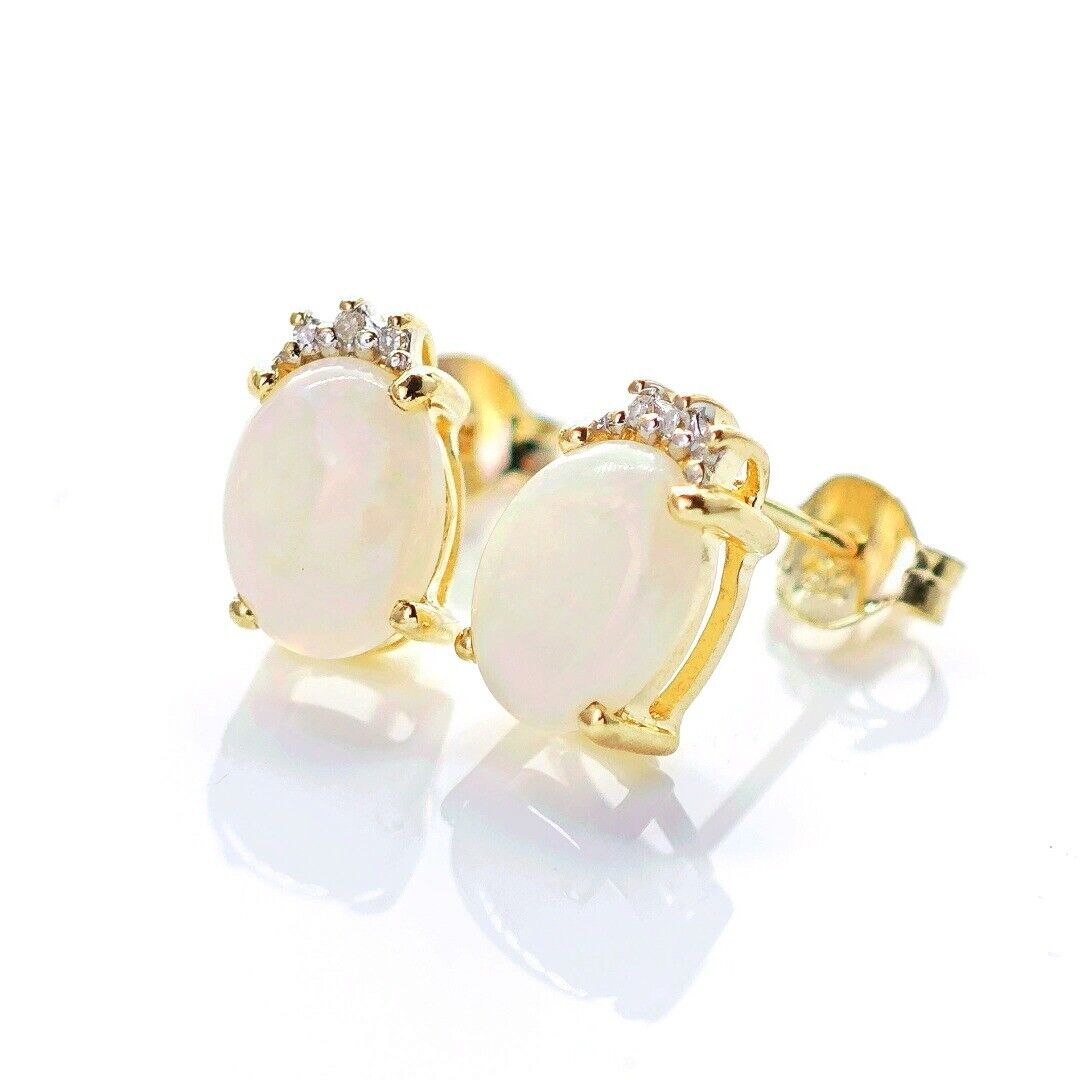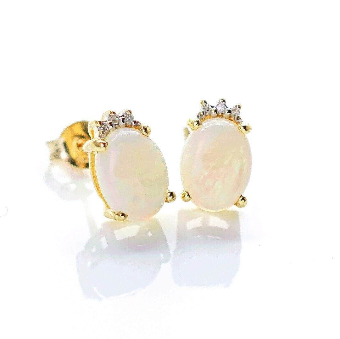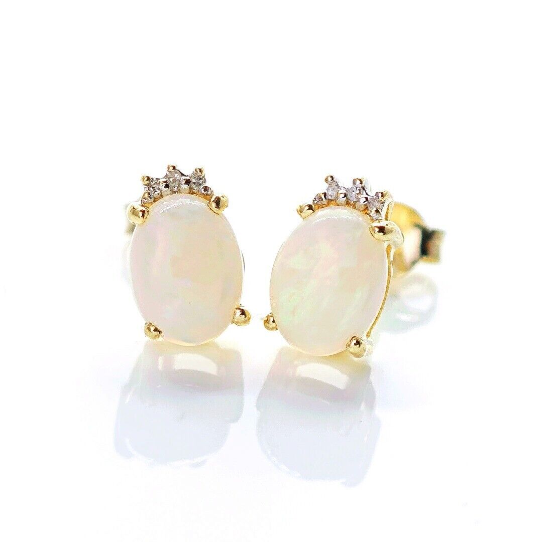 9ct Opal Diamond Earrings Gold Studs Natural white Gemstones 1.29ct Boxed Gift