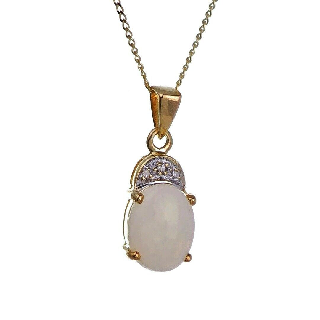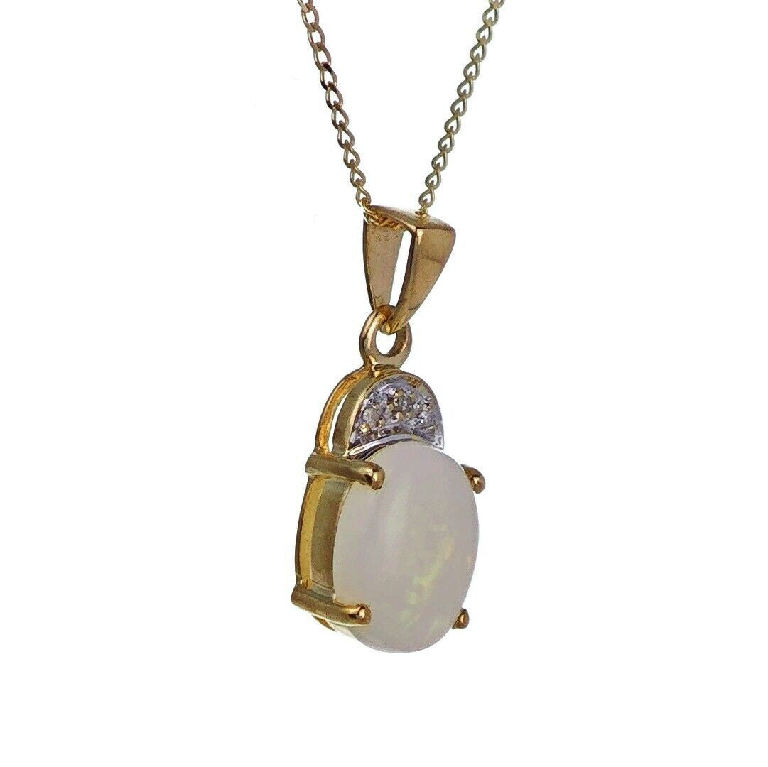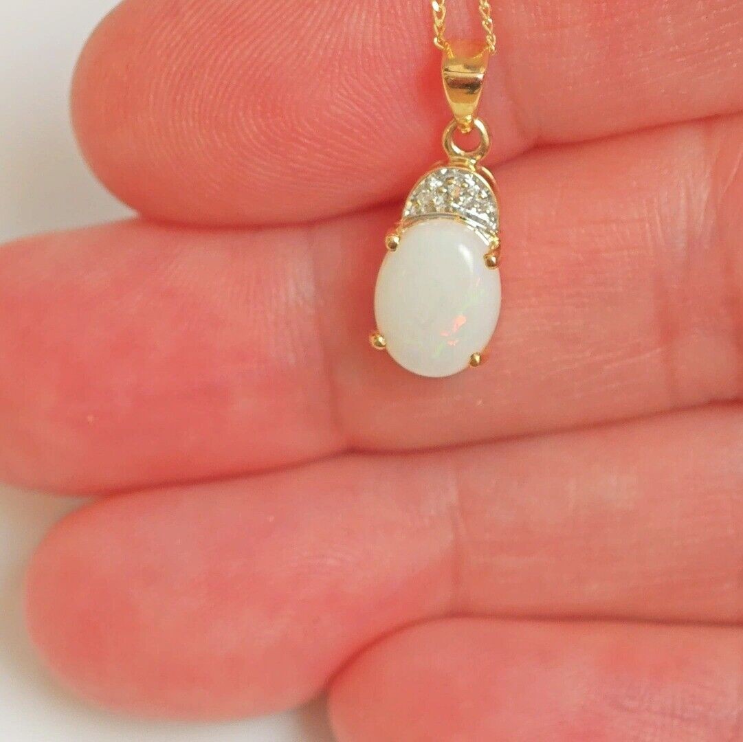 9ct Opal Necklace Yellow Gold 1.02ct White Oval Natural Gemstone