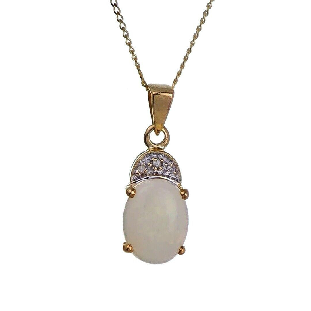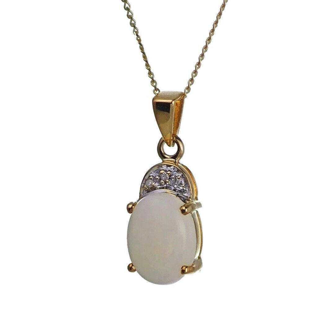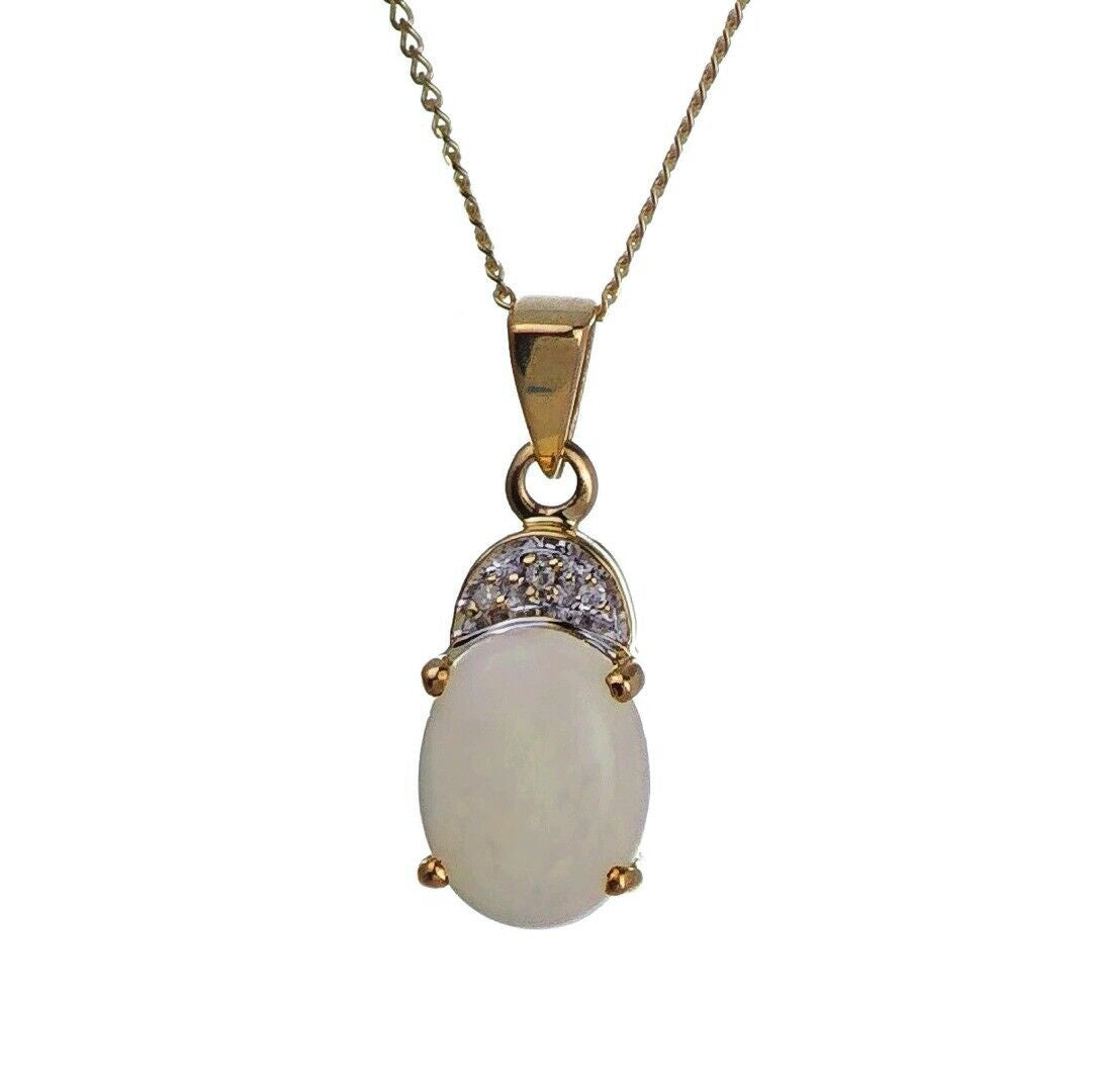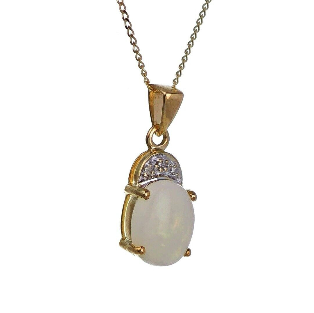 9ct Opal Necklace Yellow Gold 1.02ct White Oval Natural Gemstone