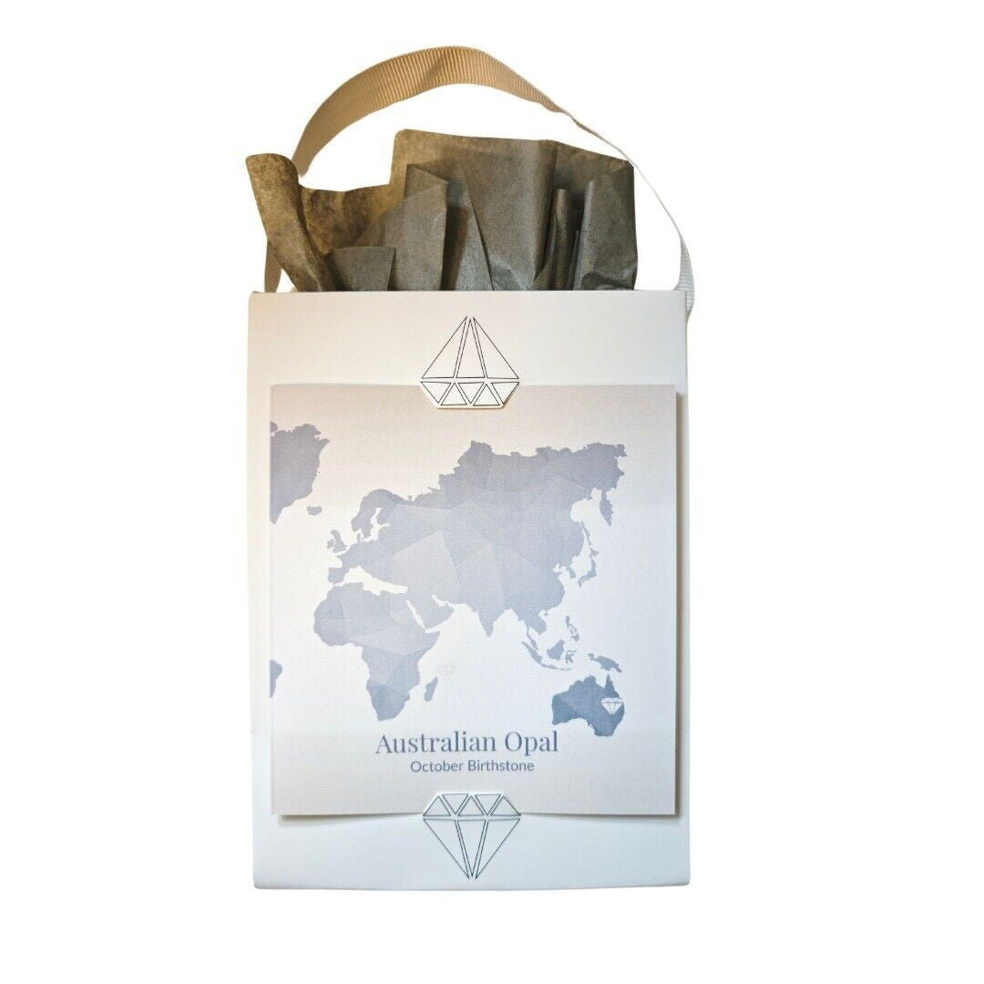 This elegant Opal 18inch Necklace is handmade. It features a natural White Australian Opal gemstone. The stone is set in 9ct yellow gold to show off its natural sparkle. Opal are associated with faithfulness and good fortune. Opal derives from opalus a Latin word meaning precious jewel and opallios Greek for to see a colour change. They are the birthstone for October. This elegant 18inch Necklace is suitable to wear for daytime or evening wear, it makes a perfect gift for someone special.Supplied in an Ojewellery presentation box, within a ribbon handled gift bag, complete with product information card with space for a gift message and a jewellery cleaning cloth to keep your jewellery in ready to wear condition. Our jewellery packaging is from an FSC chain of custody audited supplier and our very short supply chains mean we are able to trace our natural gemstones back to country of origin.