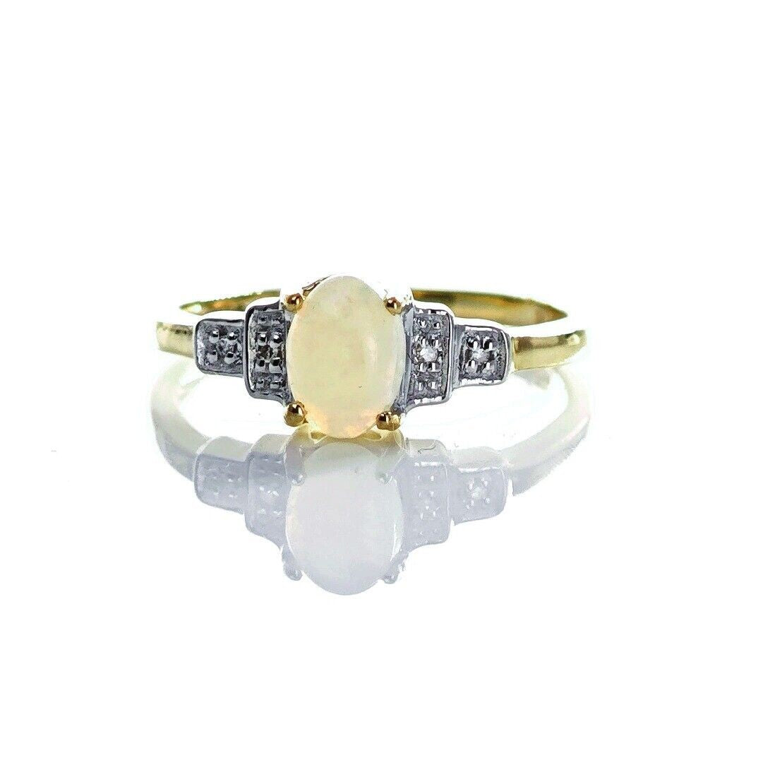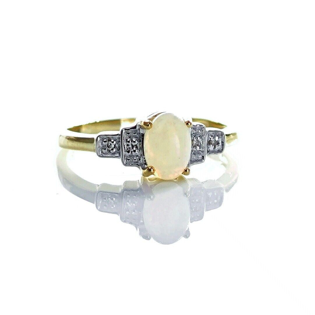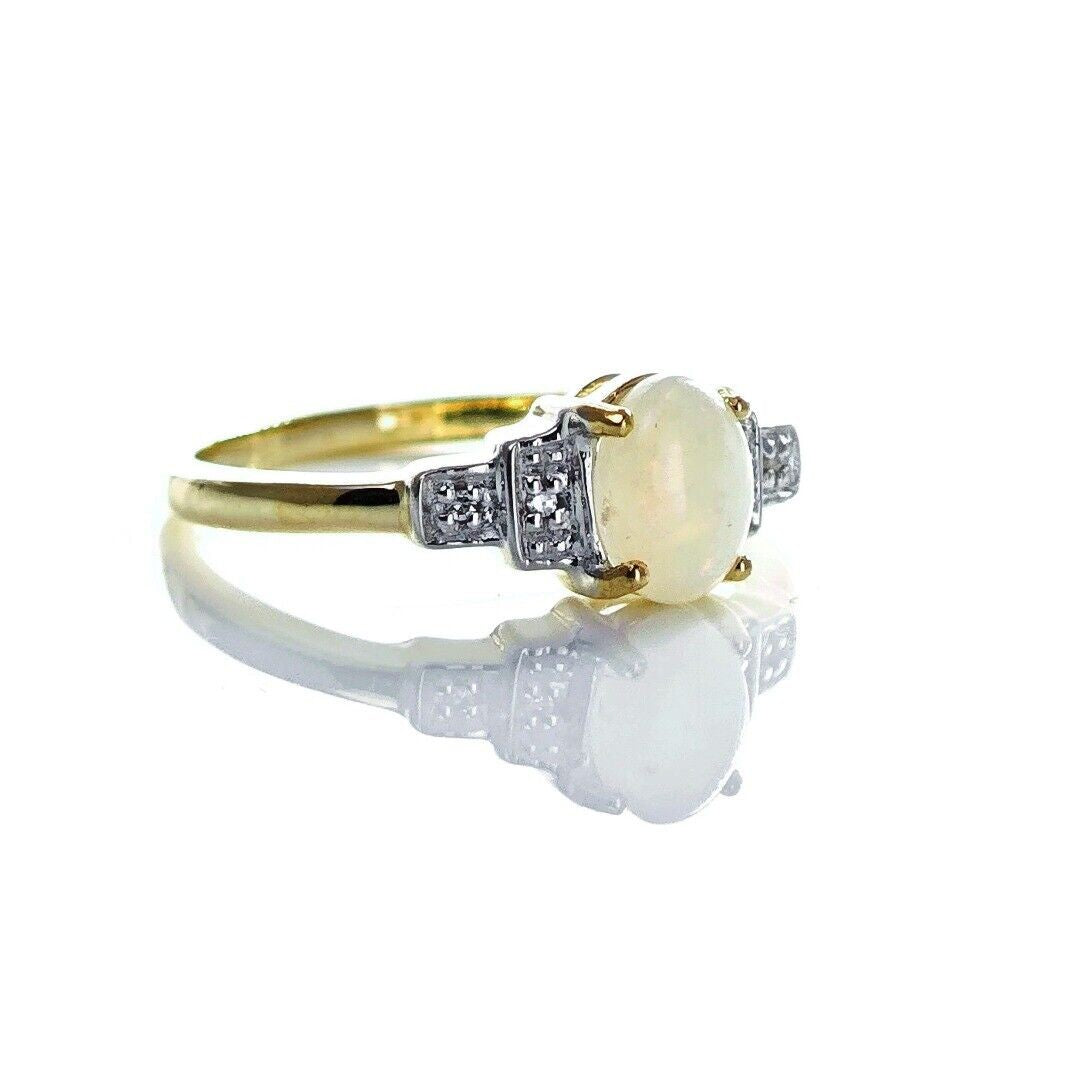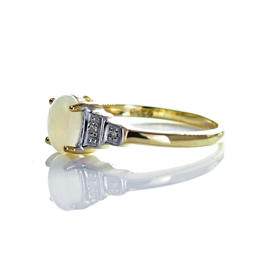 9ct Opal Ring Size M.5 Diamond Yellow Gold 0.33ct White Oval Gemstone