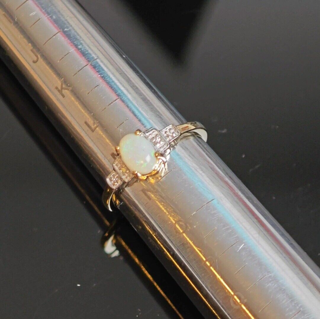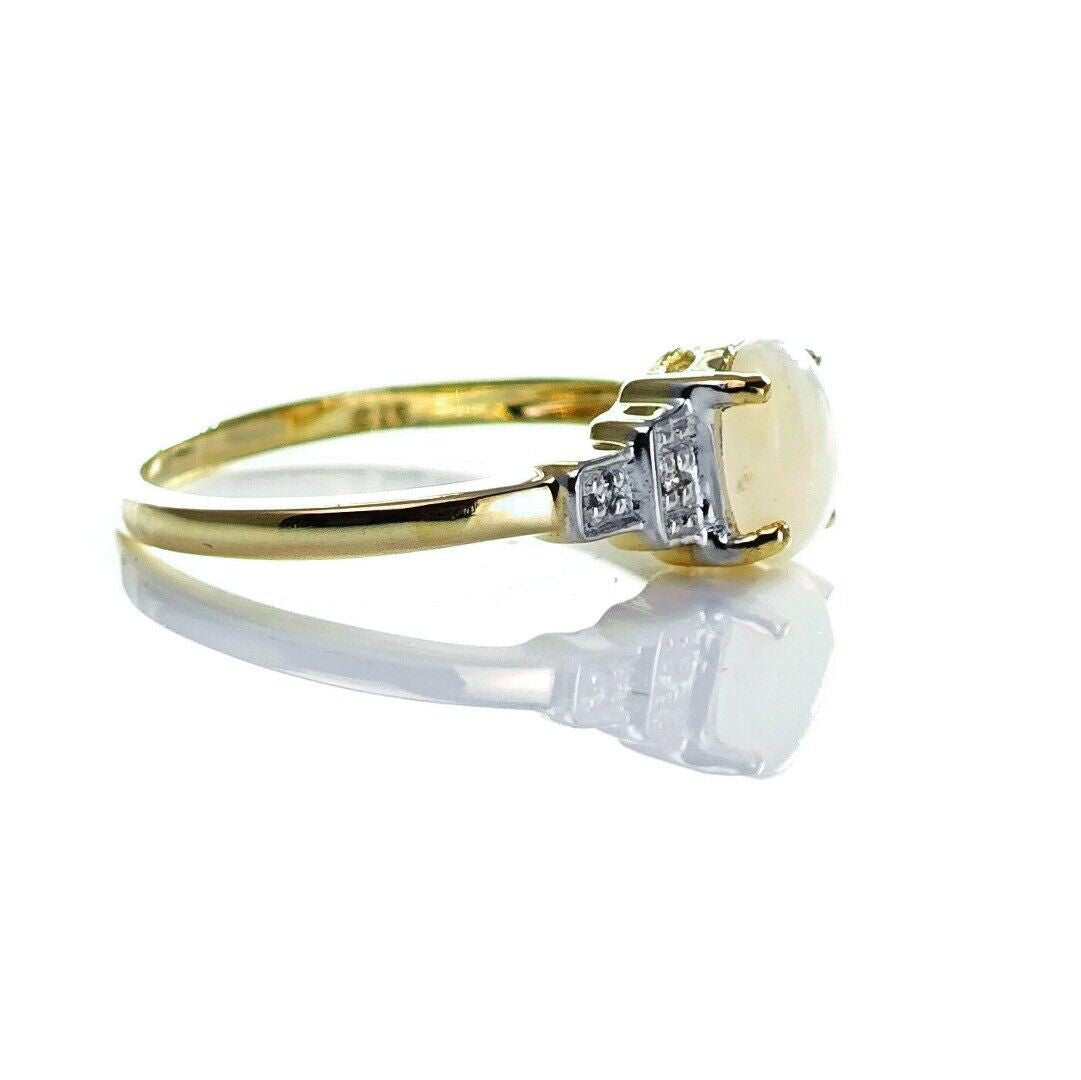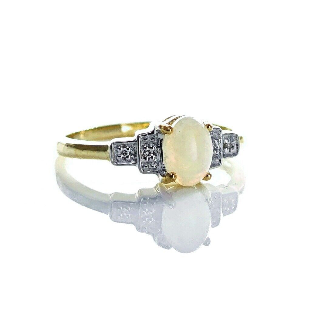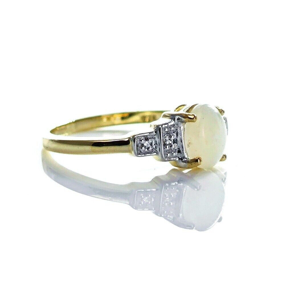 9ct Opal Ring Size M.5 Diamond Yellow Gold 0.33ct White Oval Gemstone