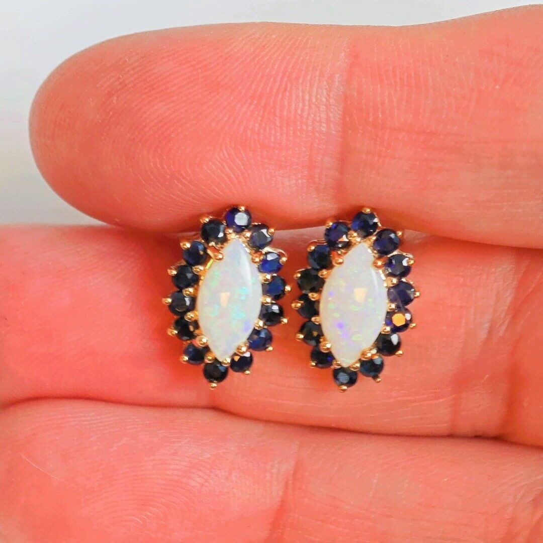 9ct Opal Sapphire Earrings Gold Studs Natural Gemstones 2.58ct
