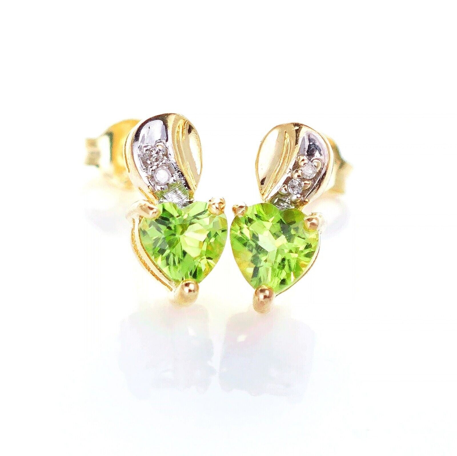 9ct Peridot Diamond Earrings Gold Studs Natural Green Gemstones 1ct