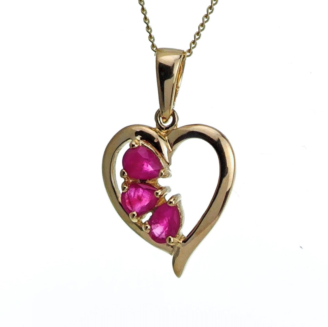 9ct Ruby Heart Necklace Yellow Gold 0.58ct Red Pear Natural Gemstone