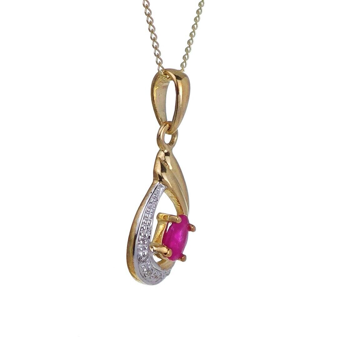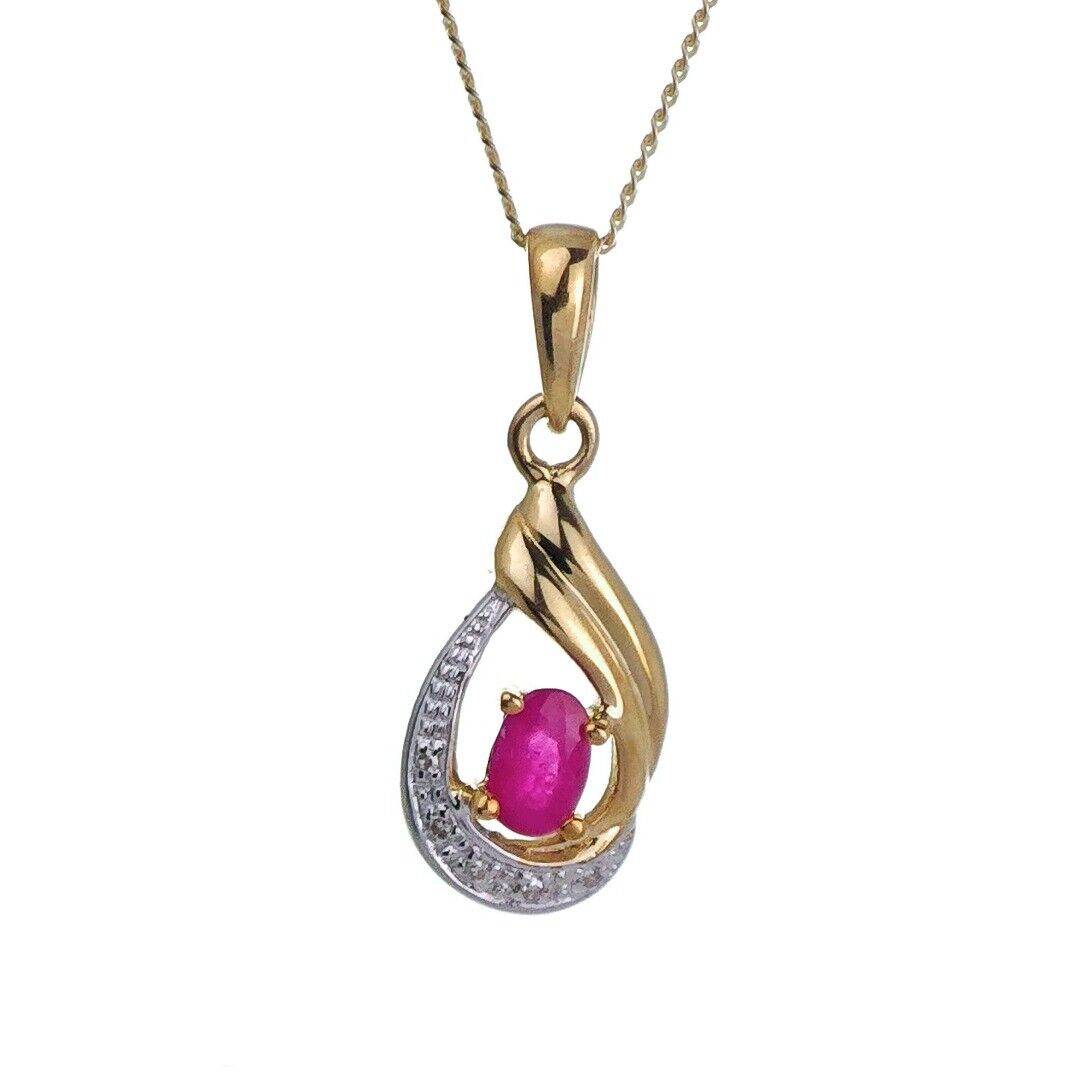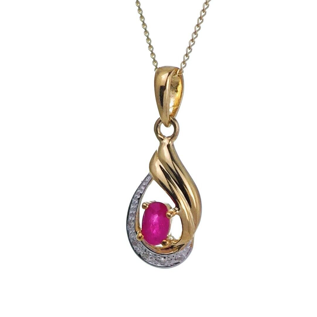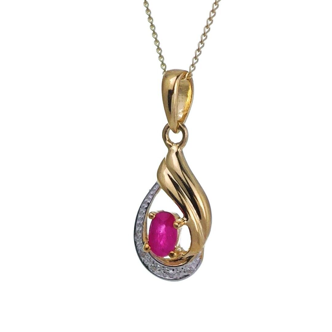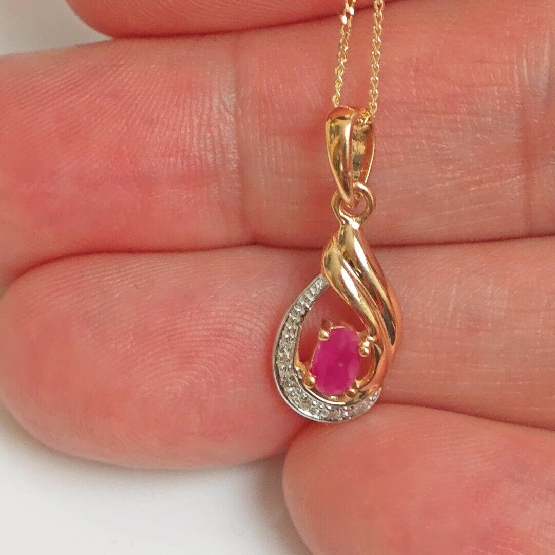 9ct Ruby Necklace Diamonds Yellow Gold 0.3ct Red Oval Natural Gemstone
