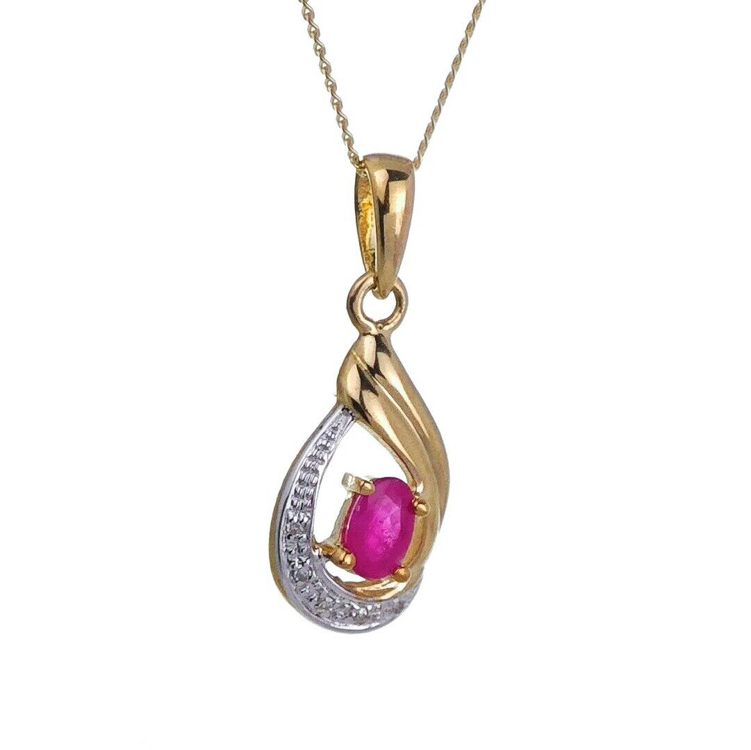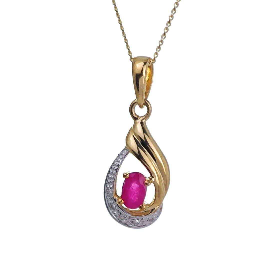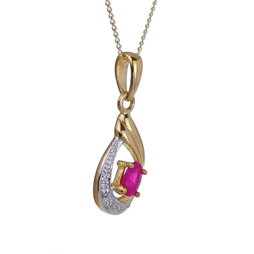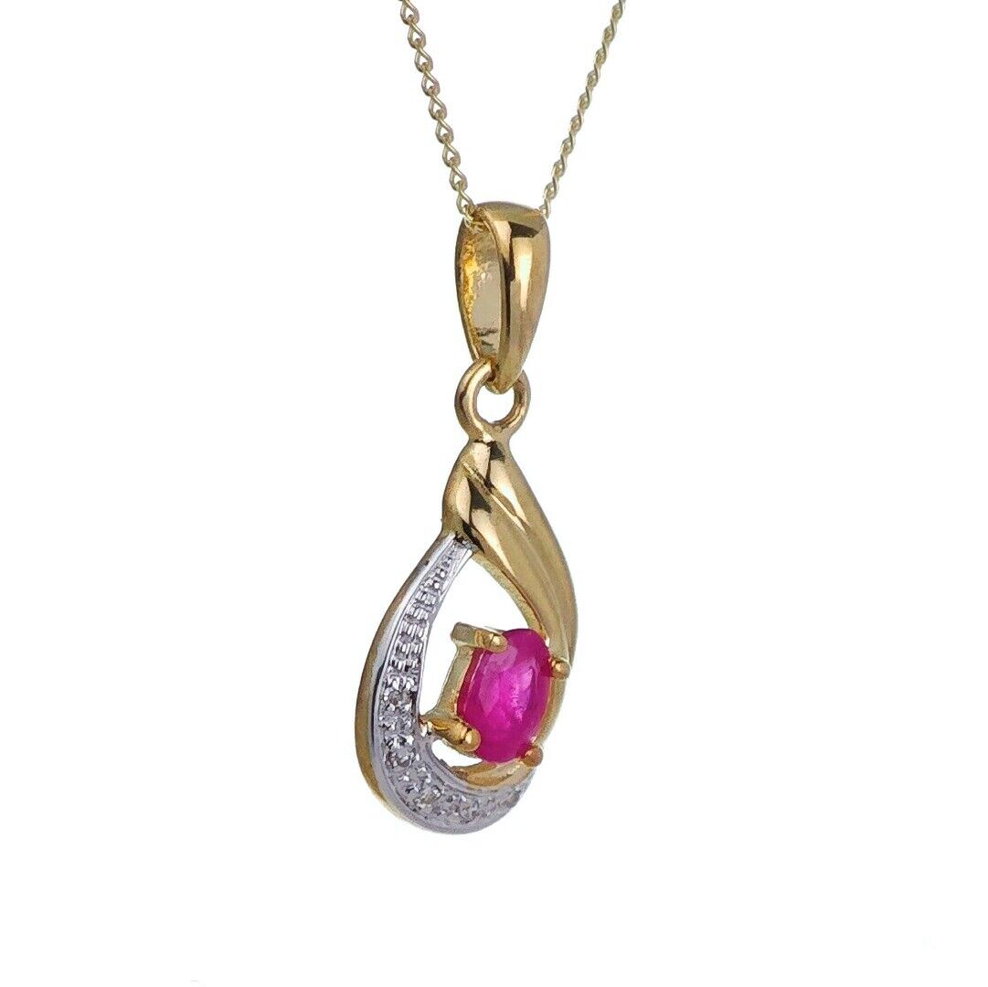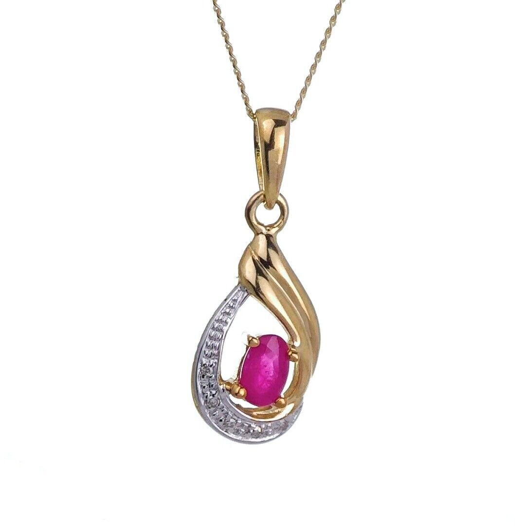 9ct Ruby Necklace Diamonds Yellow Gold 0.3ct Red Oval Natural Gemstone