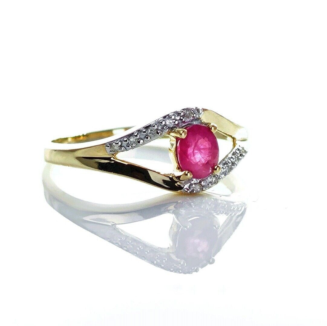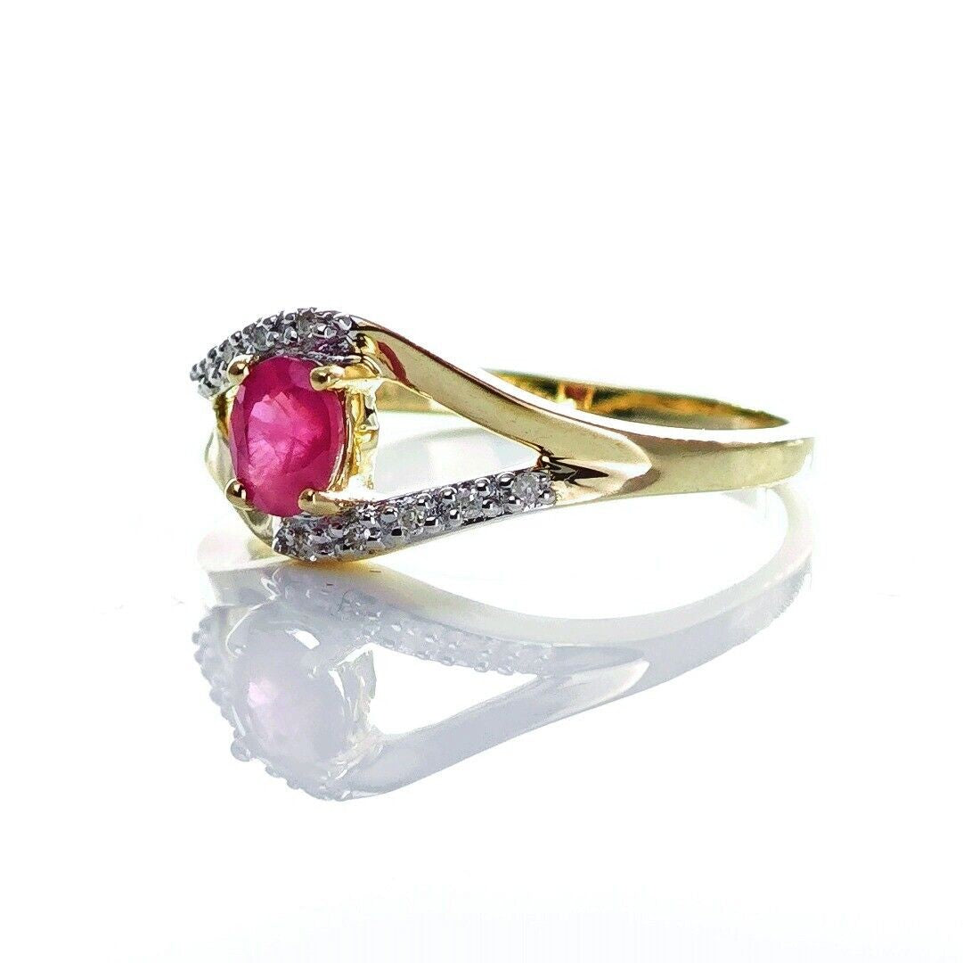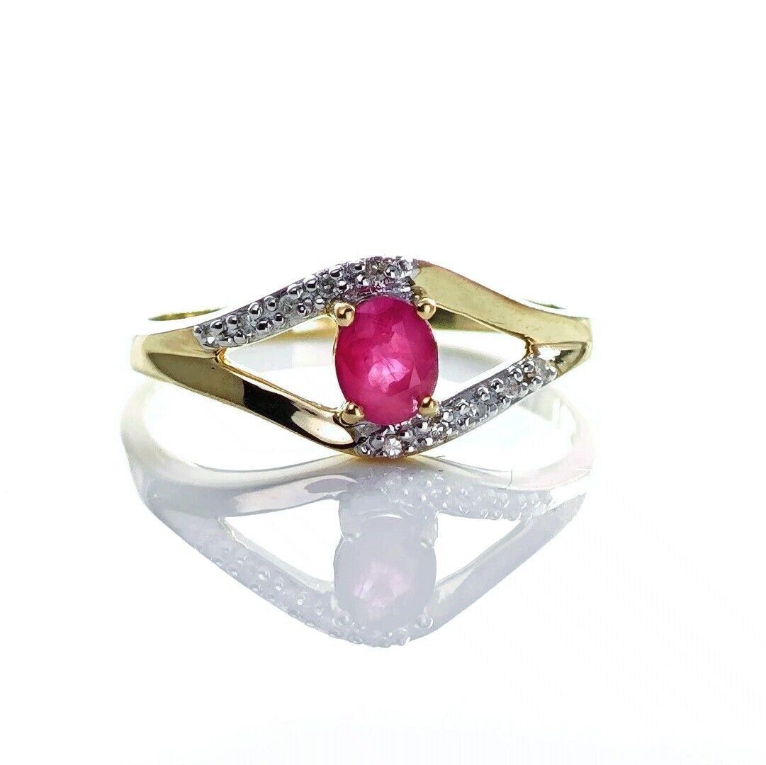 9ct Ruby Ring Size N Diamond Yellow Gold 0.4ct Red Oval Treated Gemstone