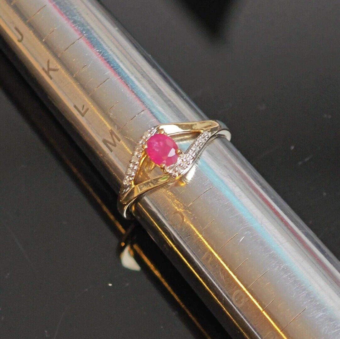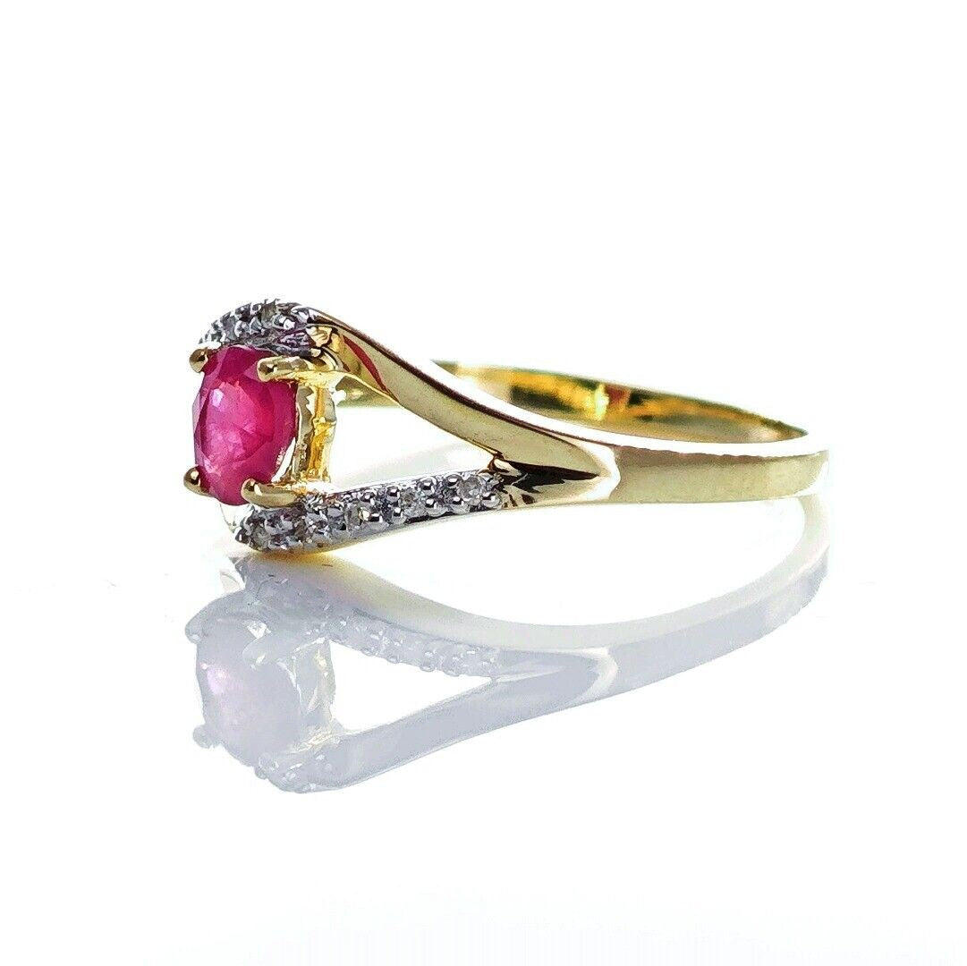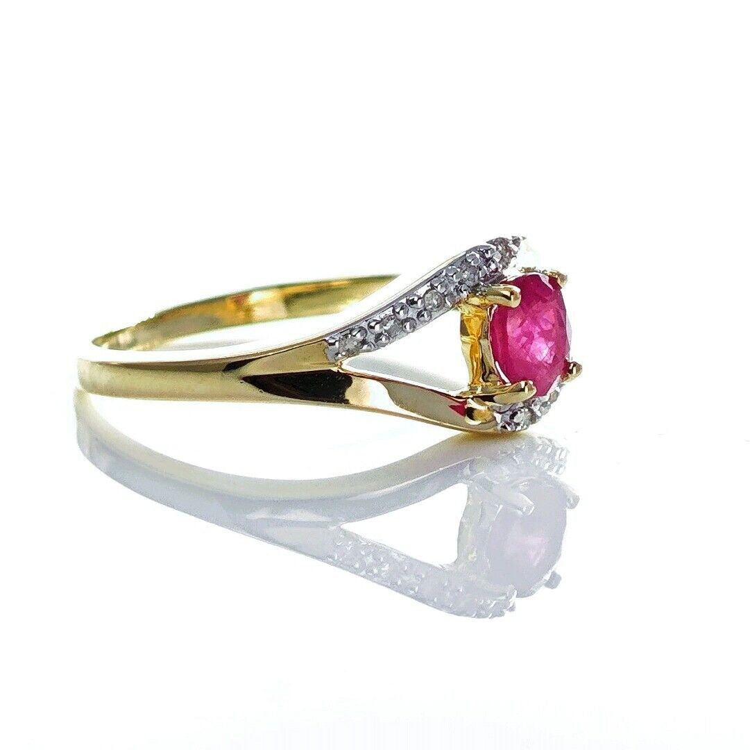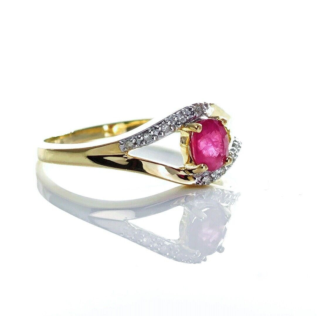 9ct Ruby Ring Size N Diamond Yellow Gold 0.4ct Red Oval Treated Gemstone