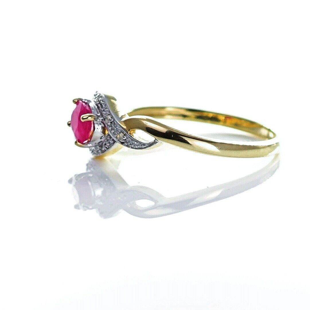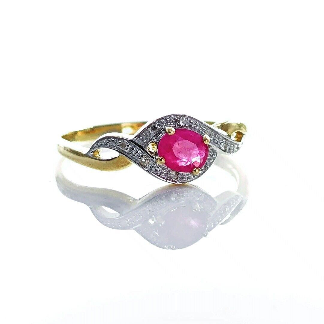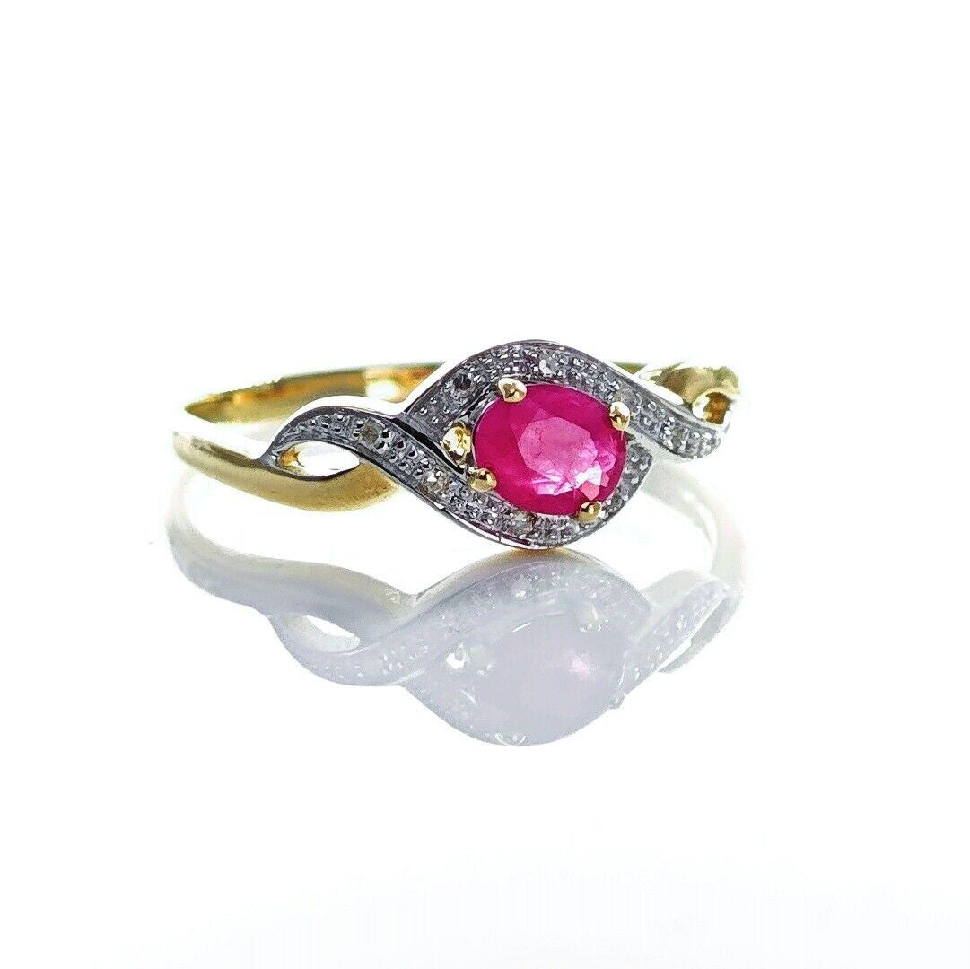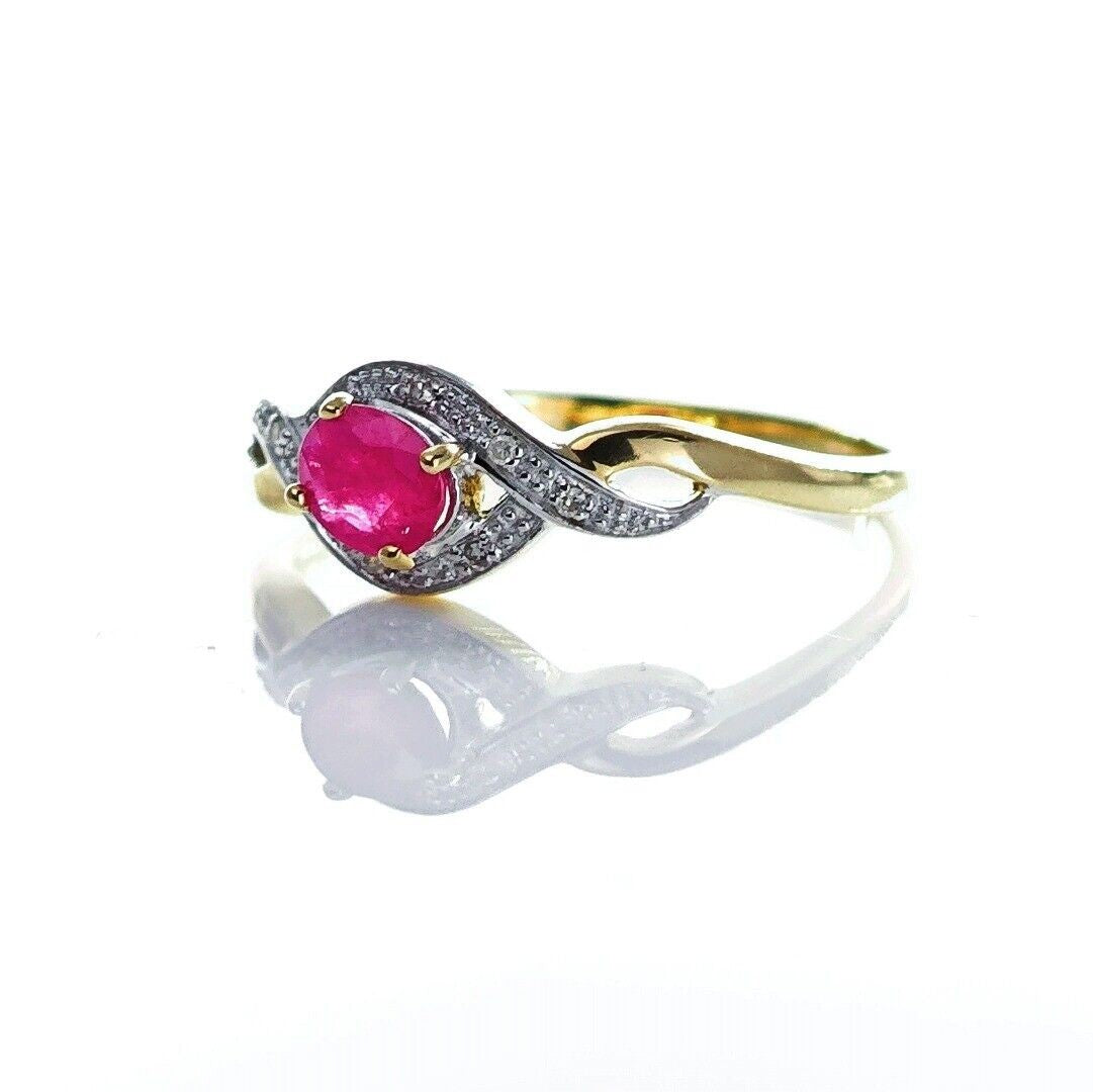 9ct Ruby Ring Size P.5 Diamond Yellow Gold 0.45ct Red Oval Gemstone