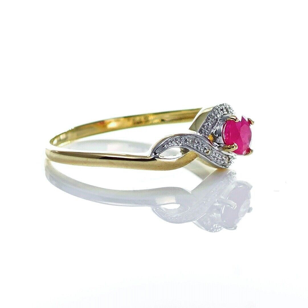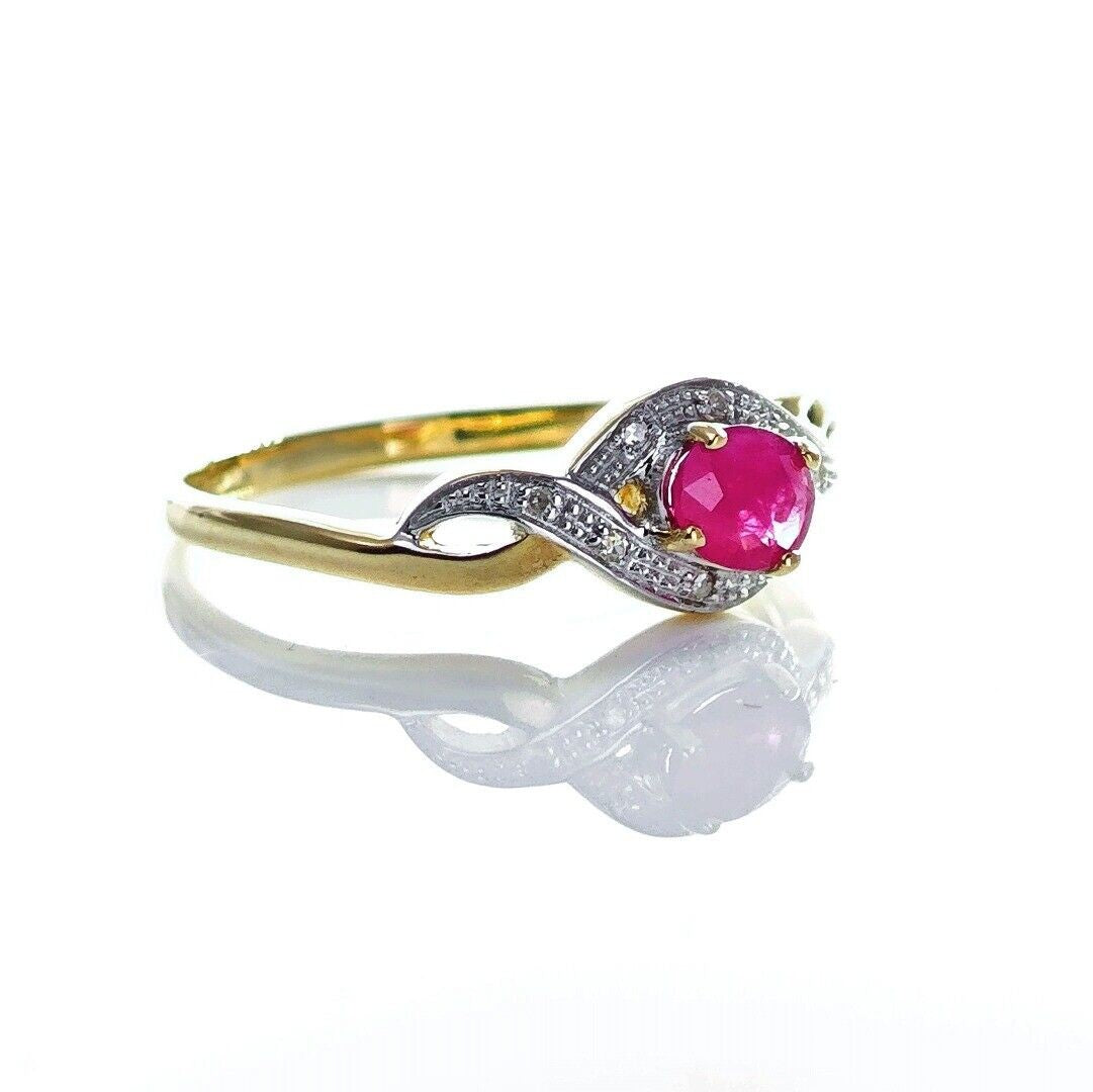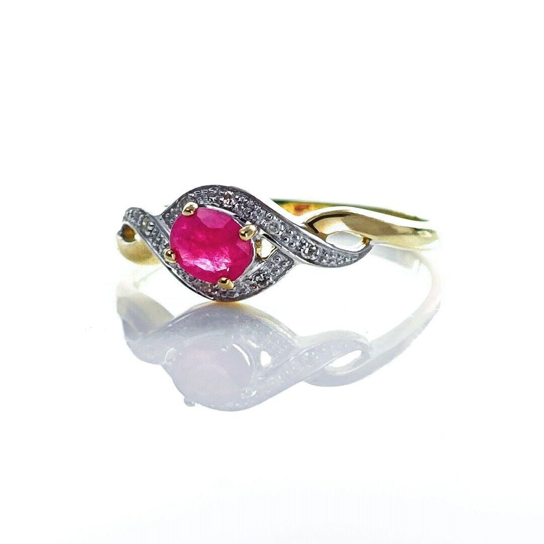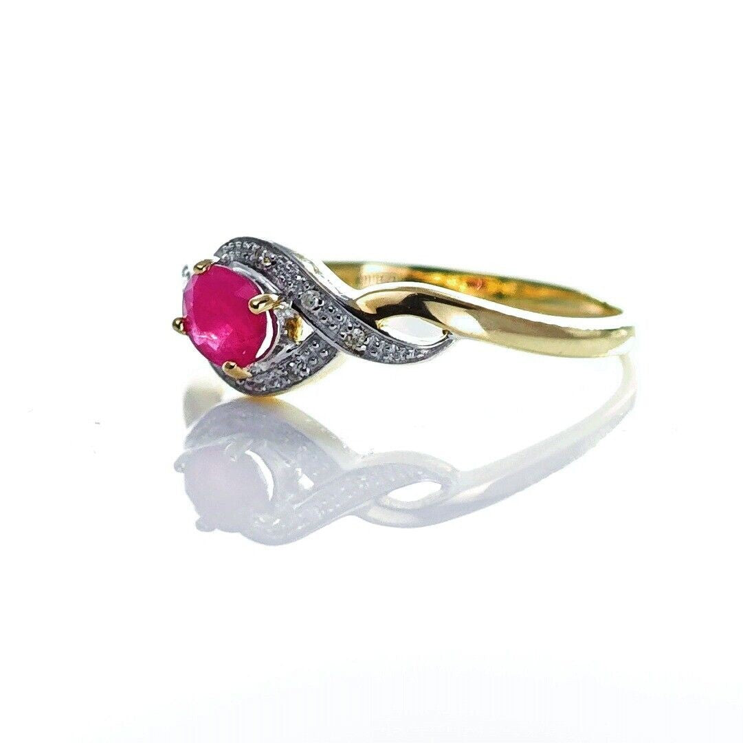 9ct Ruby Ring Size P.5 Diamond Yellow Gold 0.45ct Red Oval Gemstone