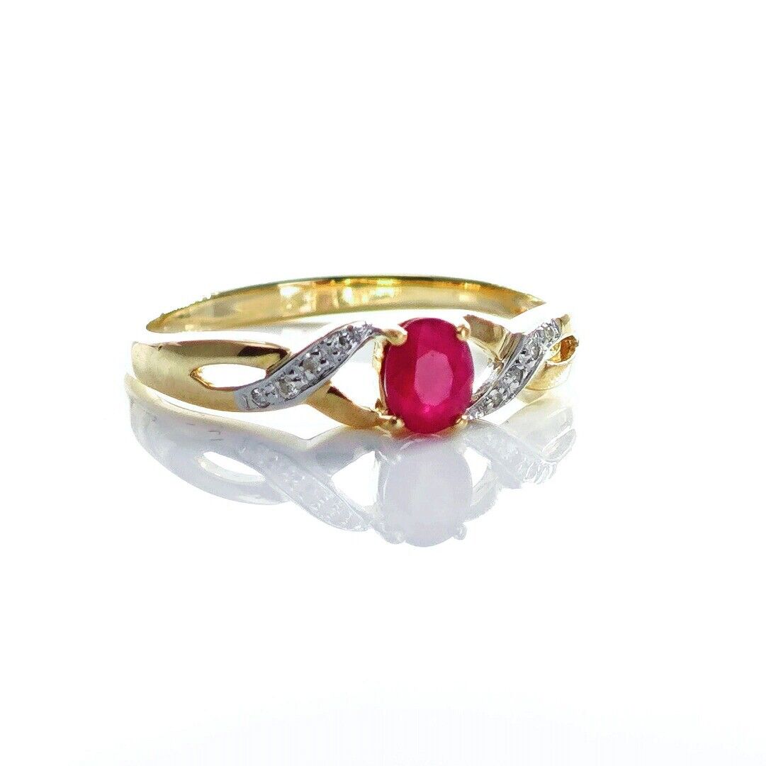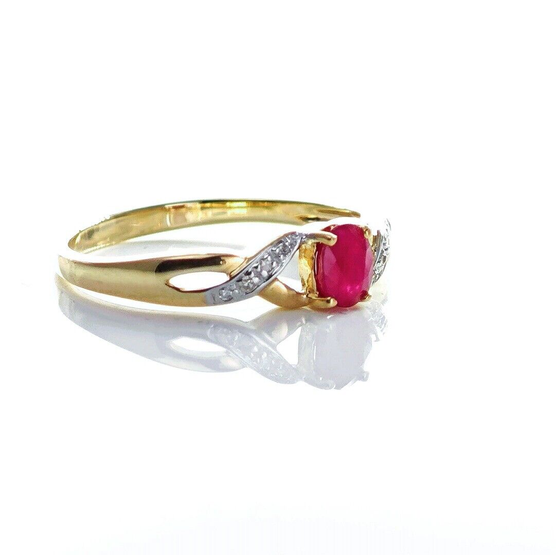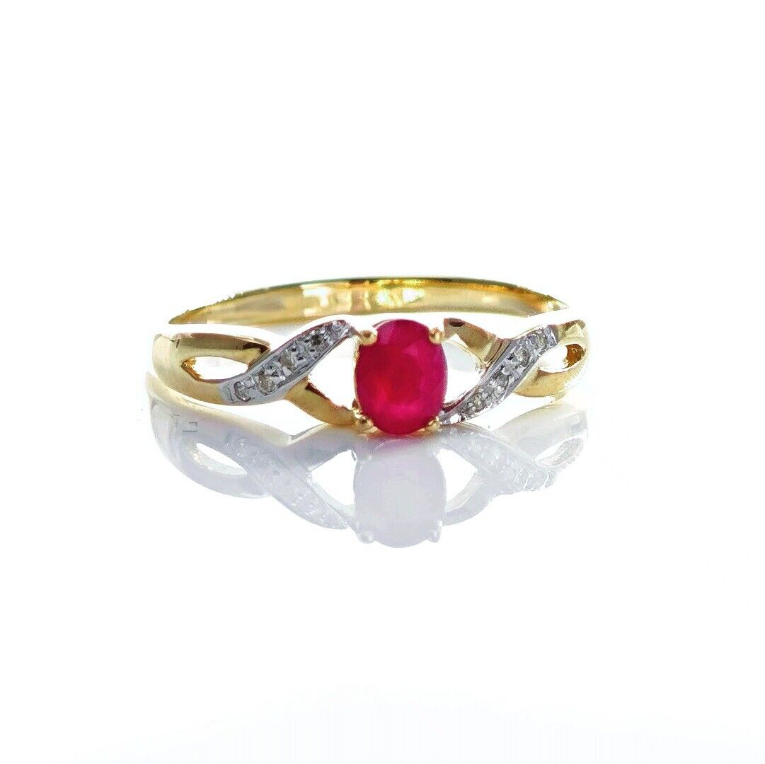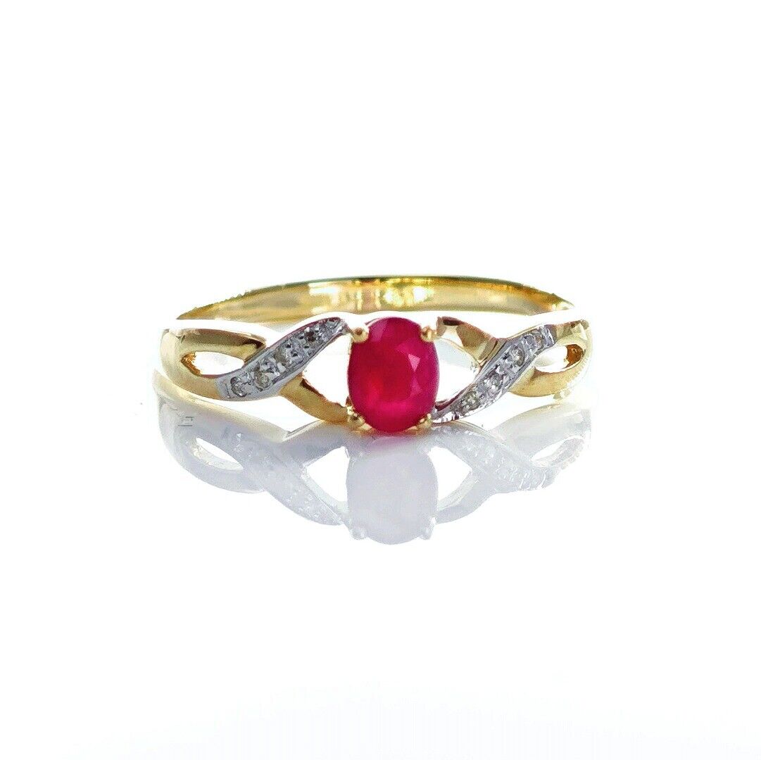 9ct Ruby Ring Size P Diamond Yellow Gold 0.45ct Red Oval Natural Treated Gemstone