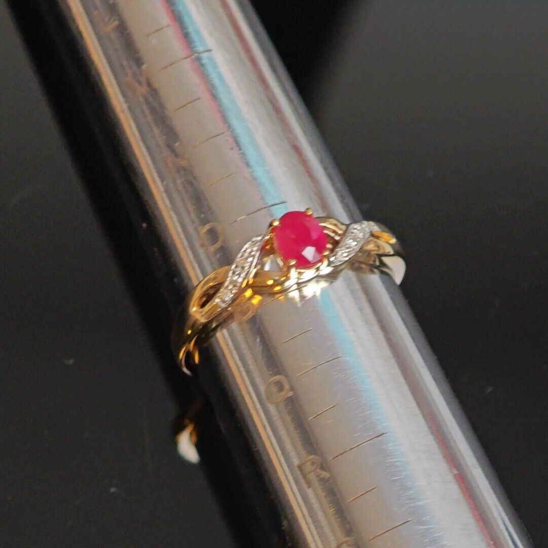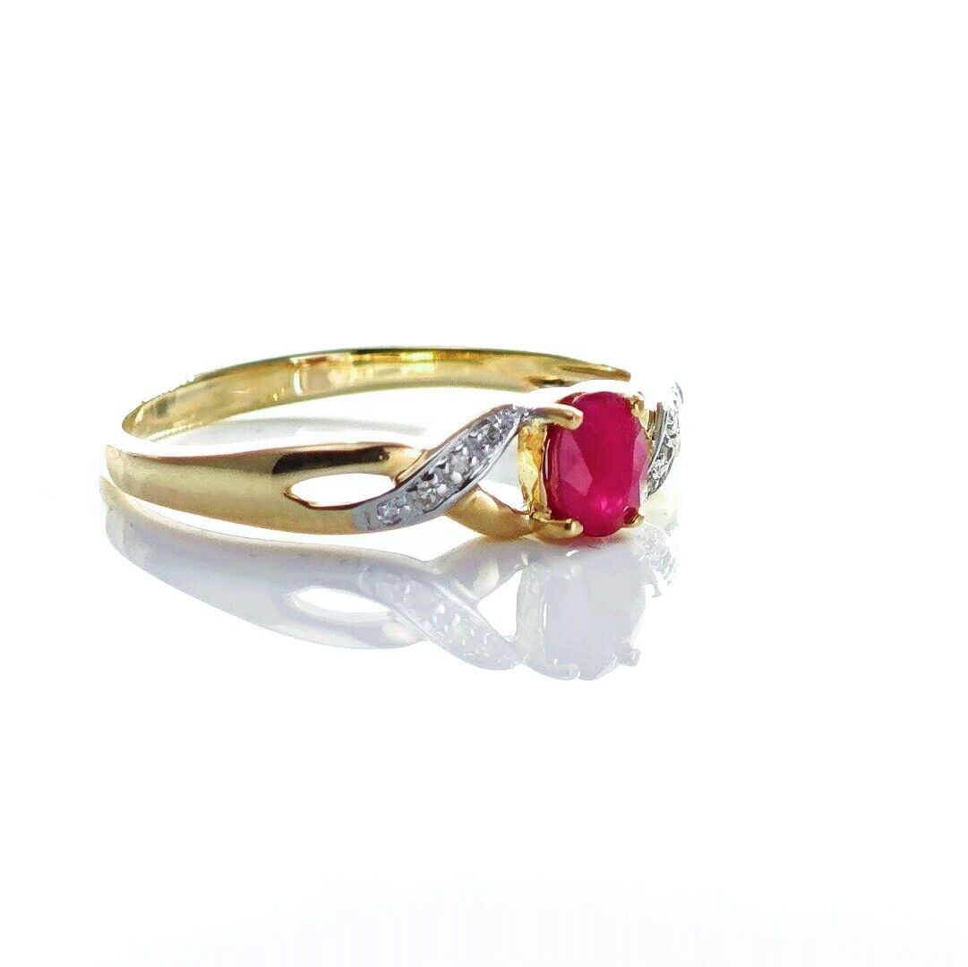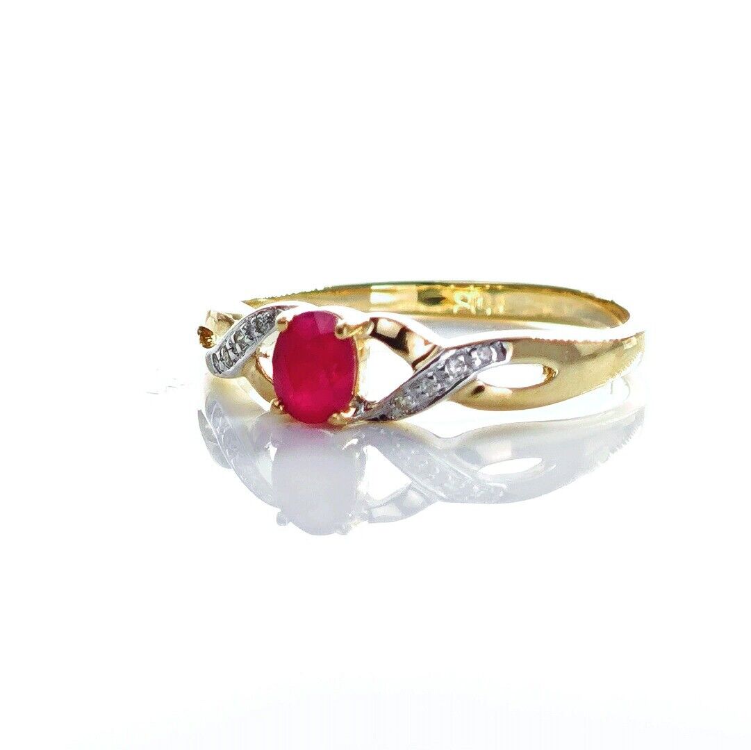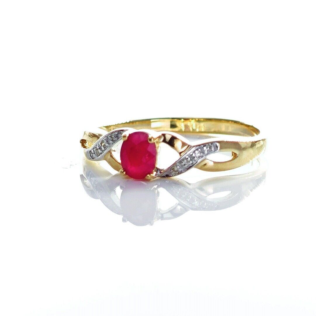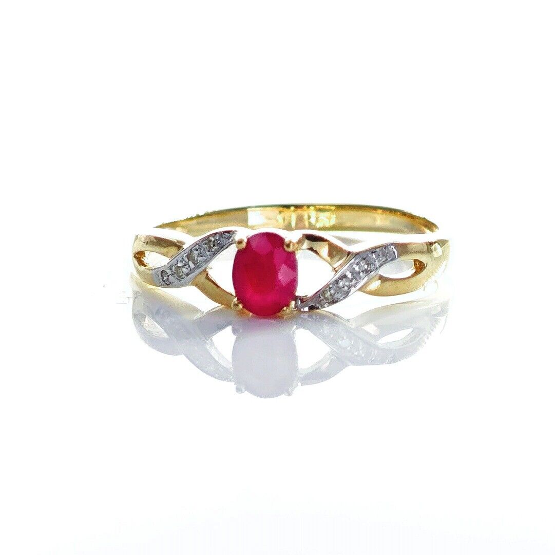 9ct Ruby Ring Size P Diamond Yellow Gold 0.45ct Red Oval Natural Treated Gemstone