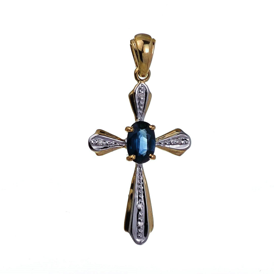 This elegant Sapphire Cross Necklace is handmade. It features a natural Blue Australian Sapphire gemstone, the cross is also set with natural African Diamonds. The sapphire stone is set in 9ct yellow gold with a rhodium layer around the diamonds to show off their natural sparkle.