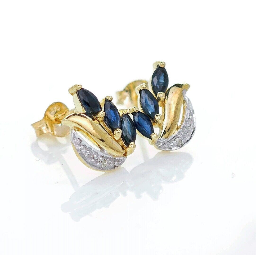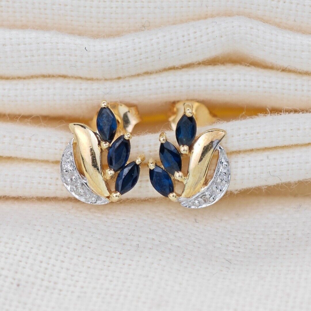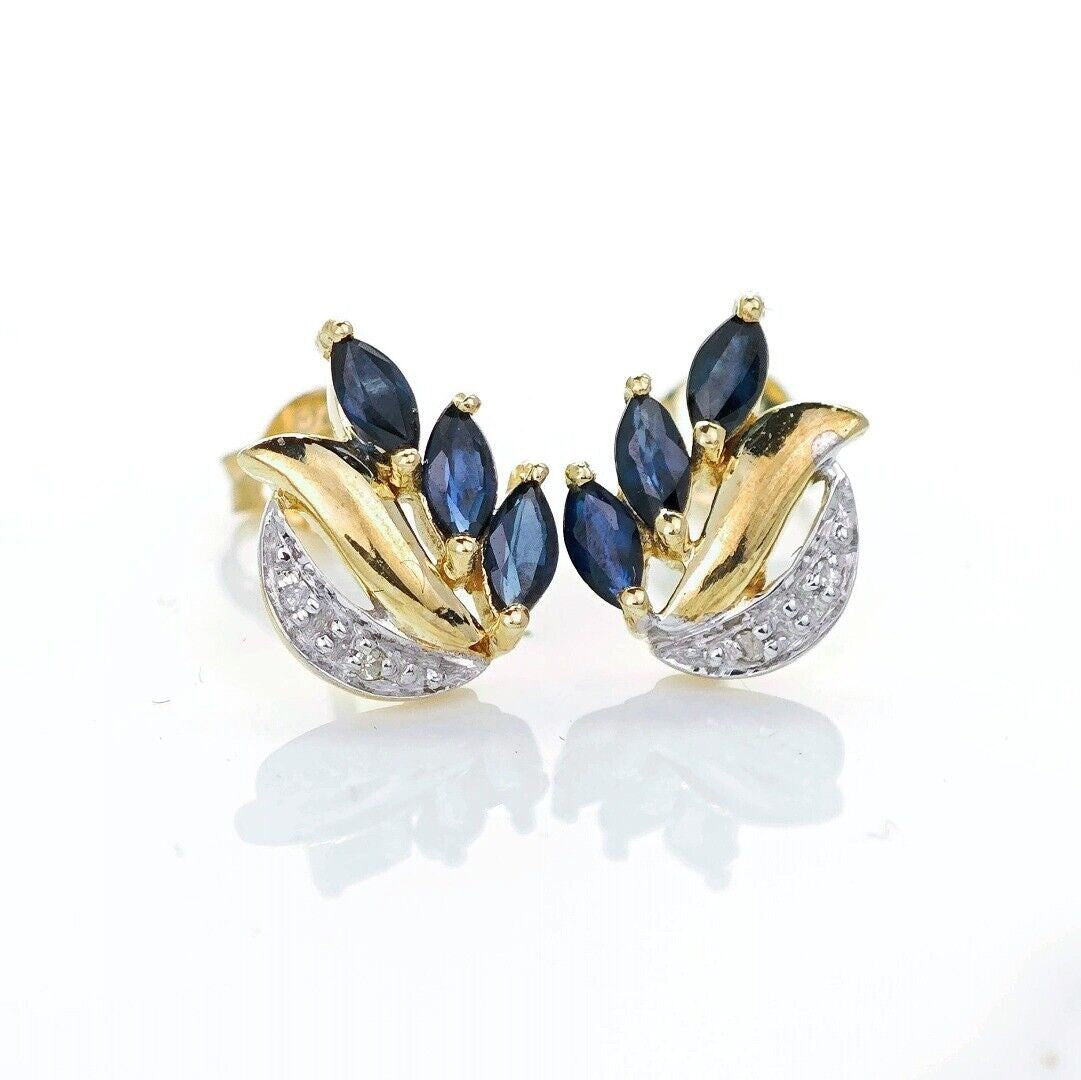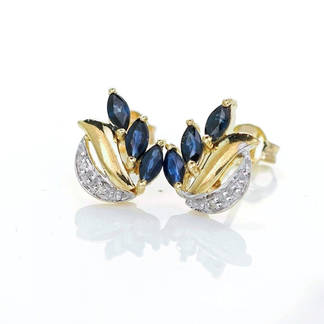 9ct Sapphire Diamond Earrings Gold Studs Natural Blue Gemstones 0.65ct