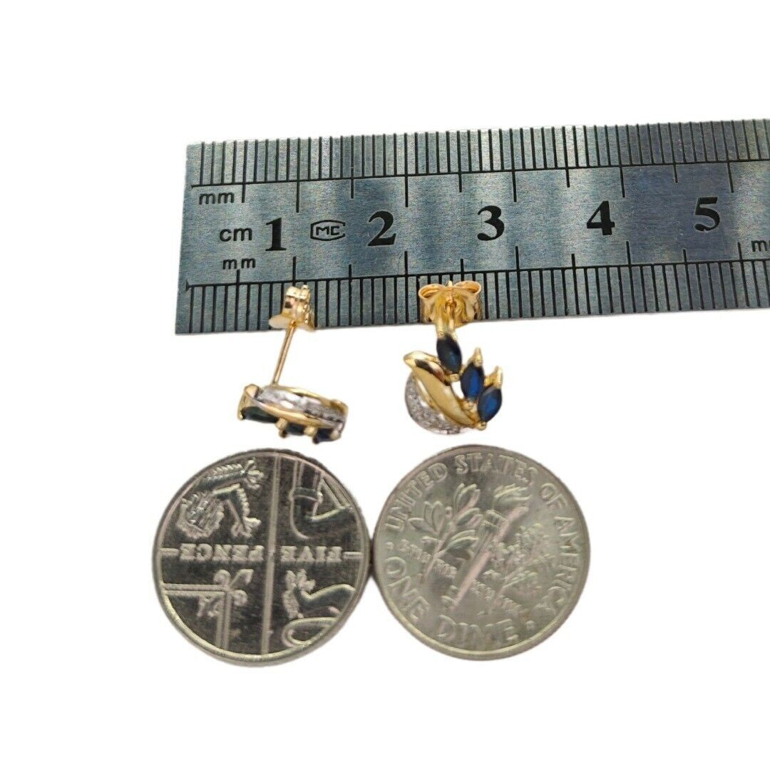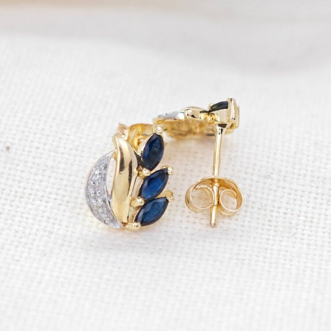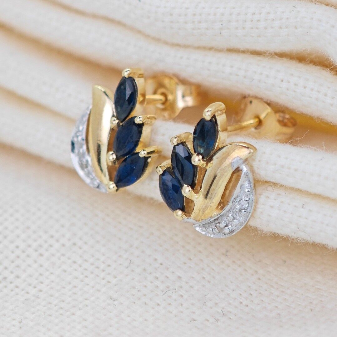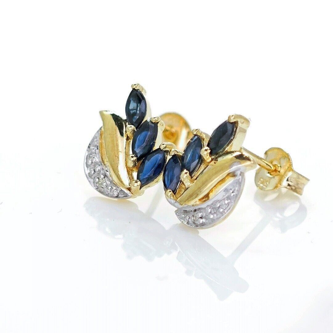 9ct Sapphire Diamond Earrings Gold Studs Natural Blue Gemstones 0.65ct