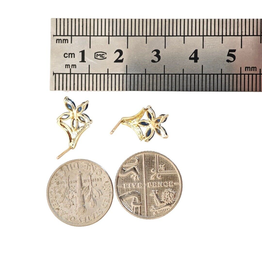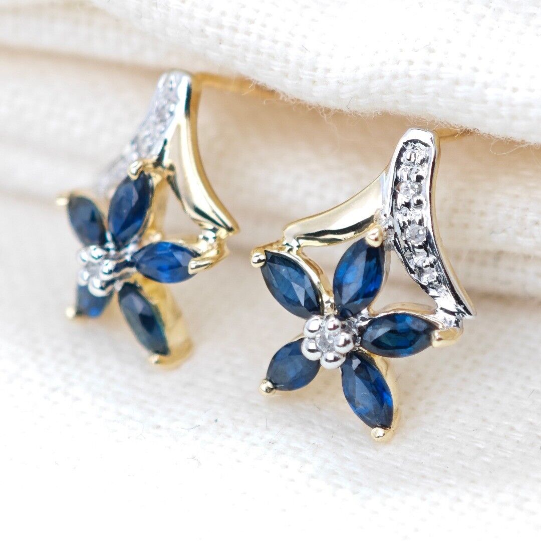 9ct Sapphire Diamond Earrings Gold Studs Natural Blue Gemstones 0.86ct