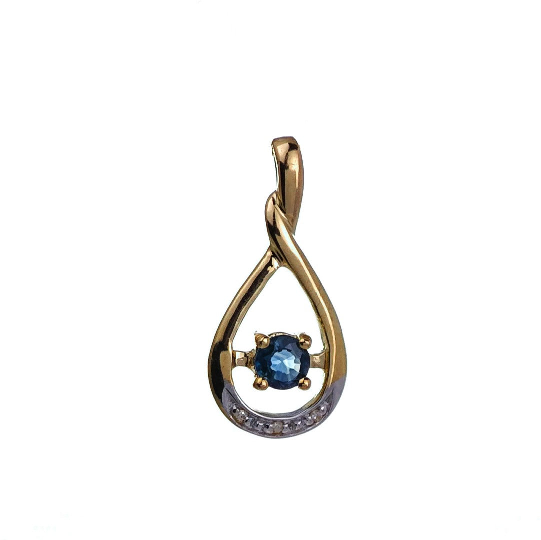 This elegant Sapphire Necklace is handmade. It features a natural Blue Australian Sapphire gemstone accented by natural African Diamonds. The stones are set in 9ct yellow gold with a rhodium layer to show off their natural sparkle.