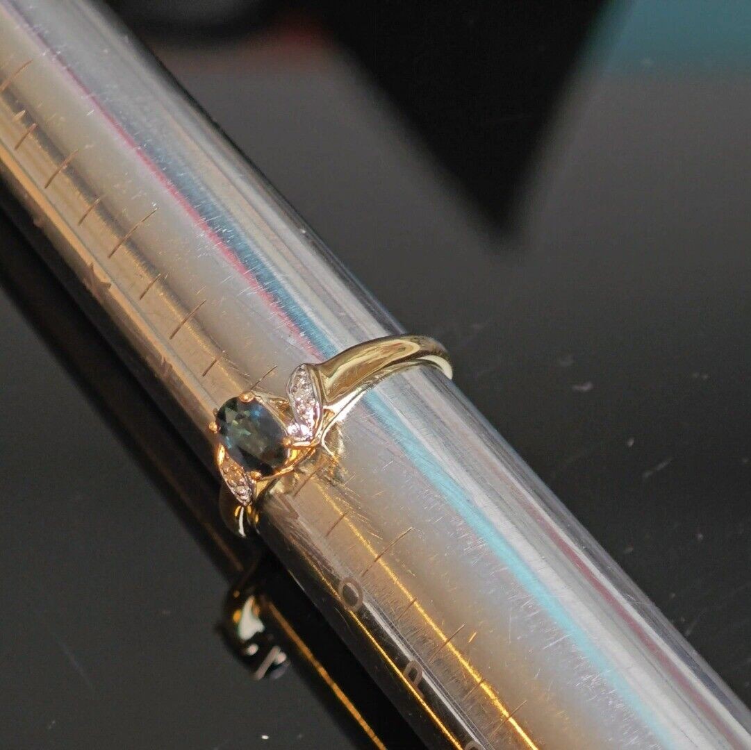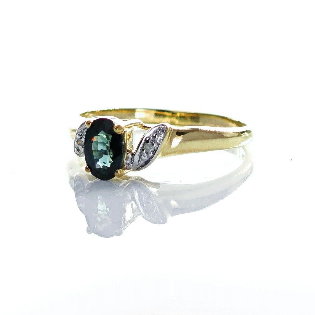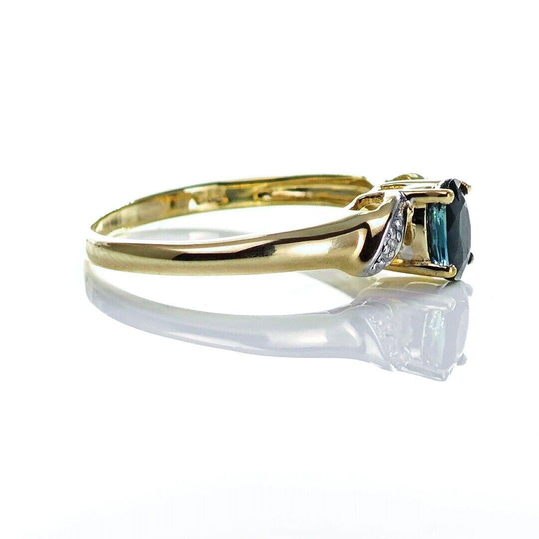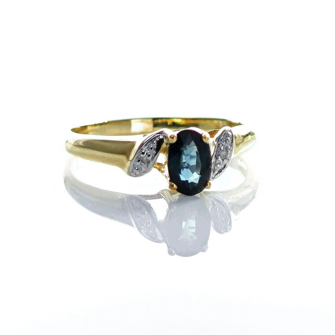 9ct Sapphire Ring Size M.5 Diamond Yellow Gold 0.58ct Blue Oval Gemstone
