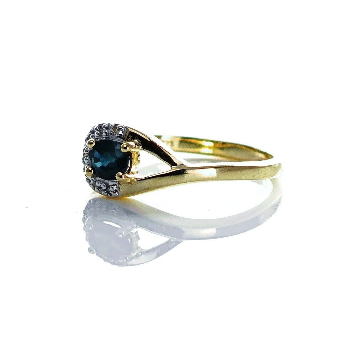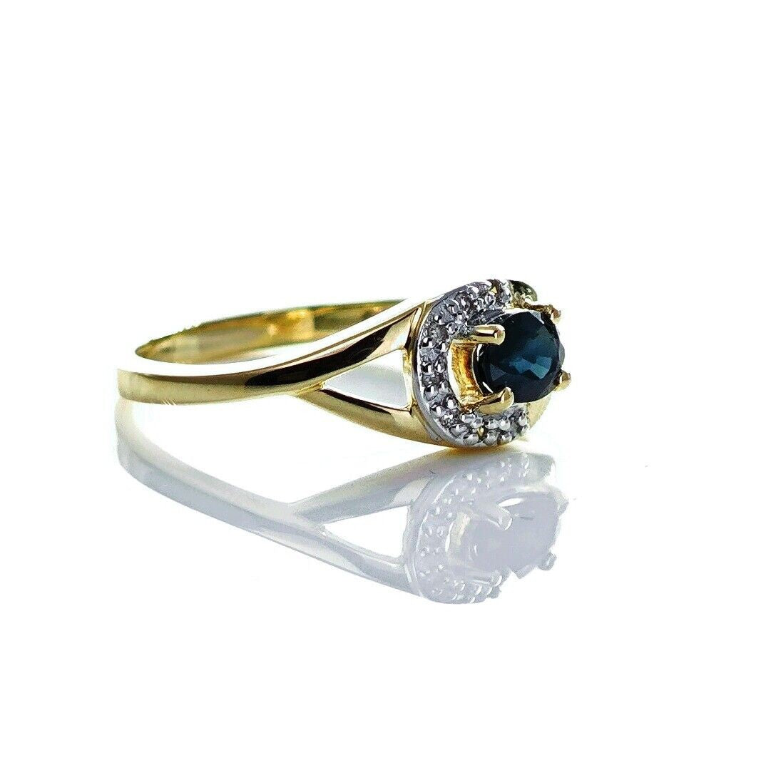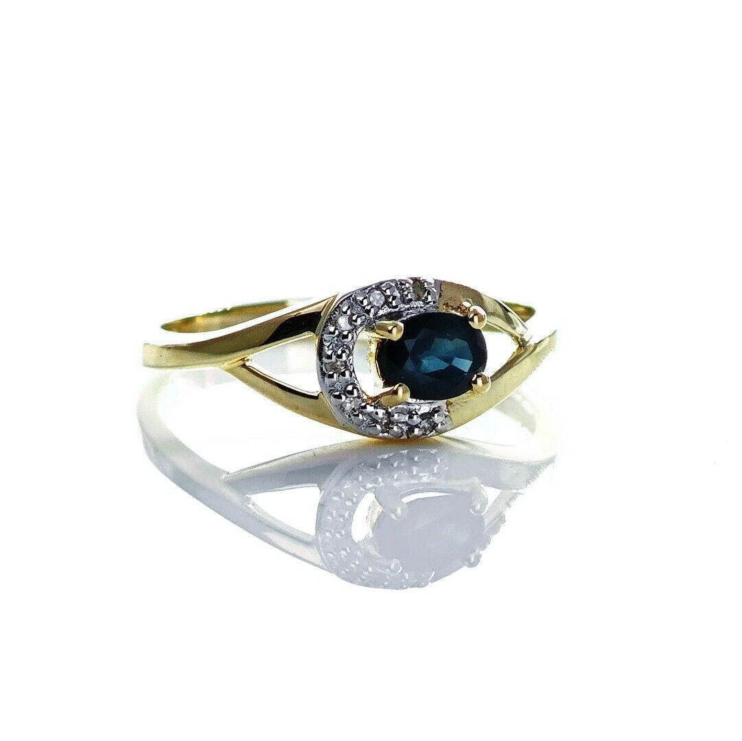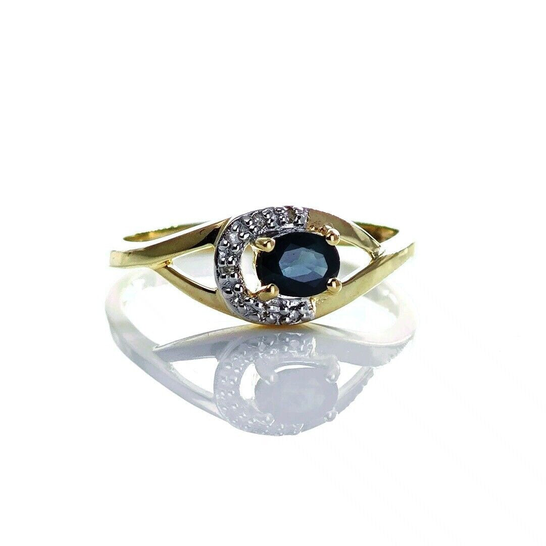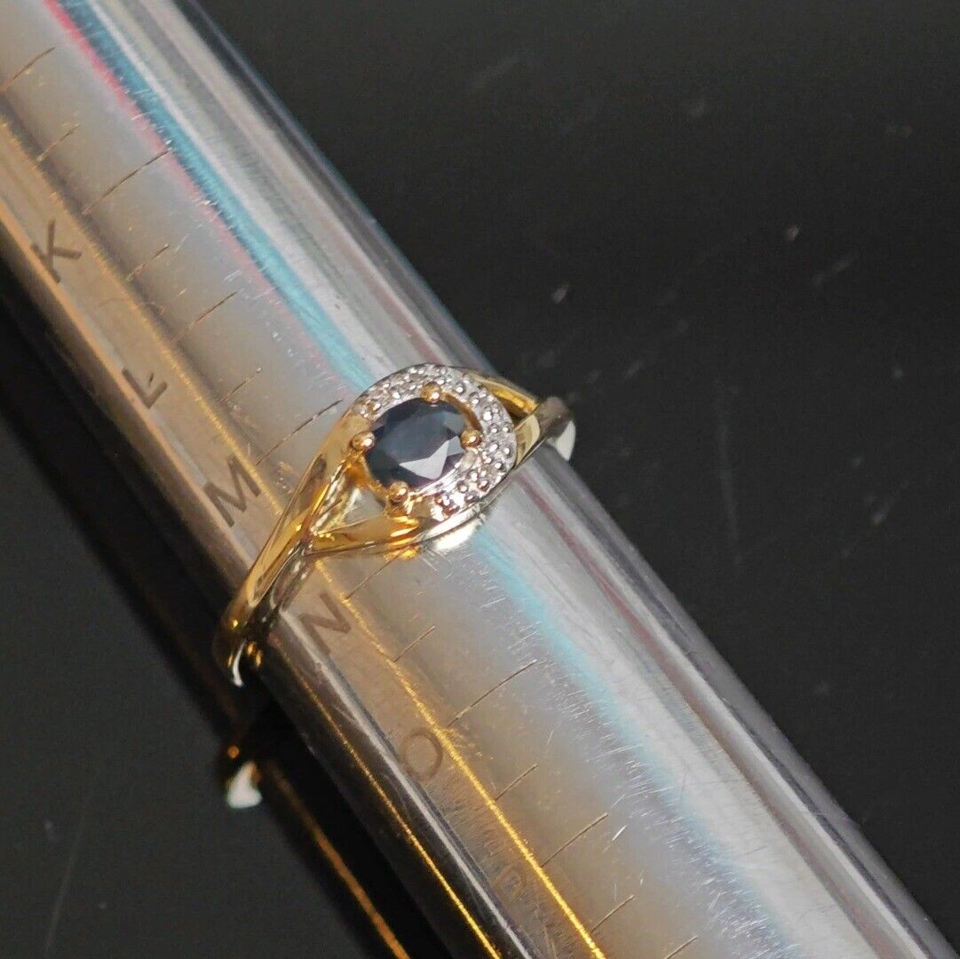 9ct Sapphire Ring Size N Diamond Yellow Gold 0.45ct Blue Oval Gemstone