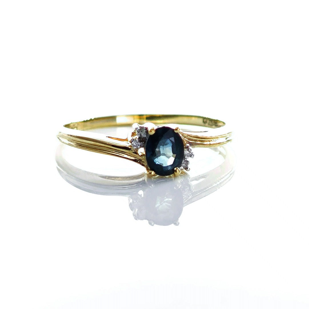9ct Sapphire Ring Size O Diamond Yellow Gold 0.45ct Blue Oval Gemstone