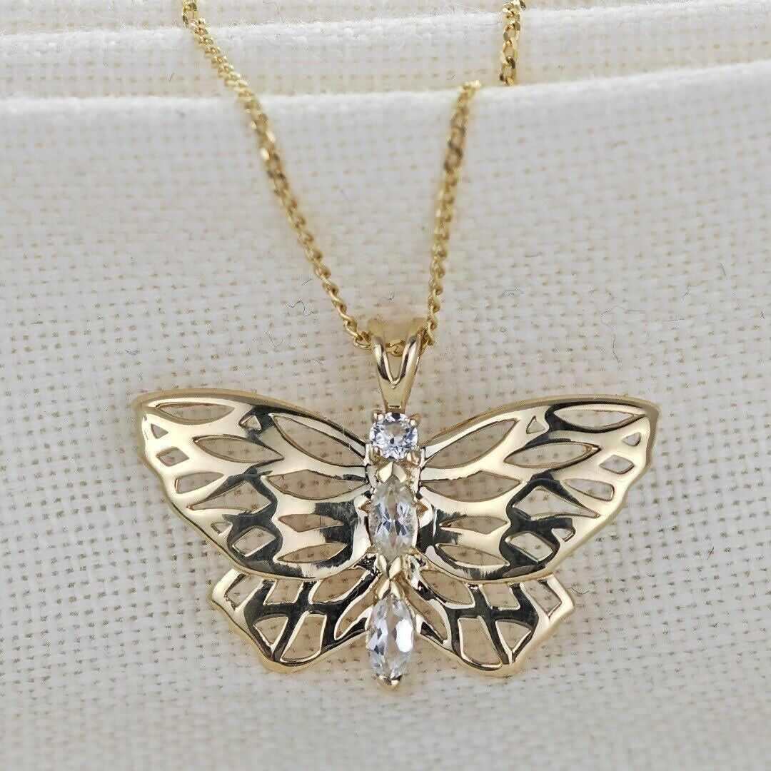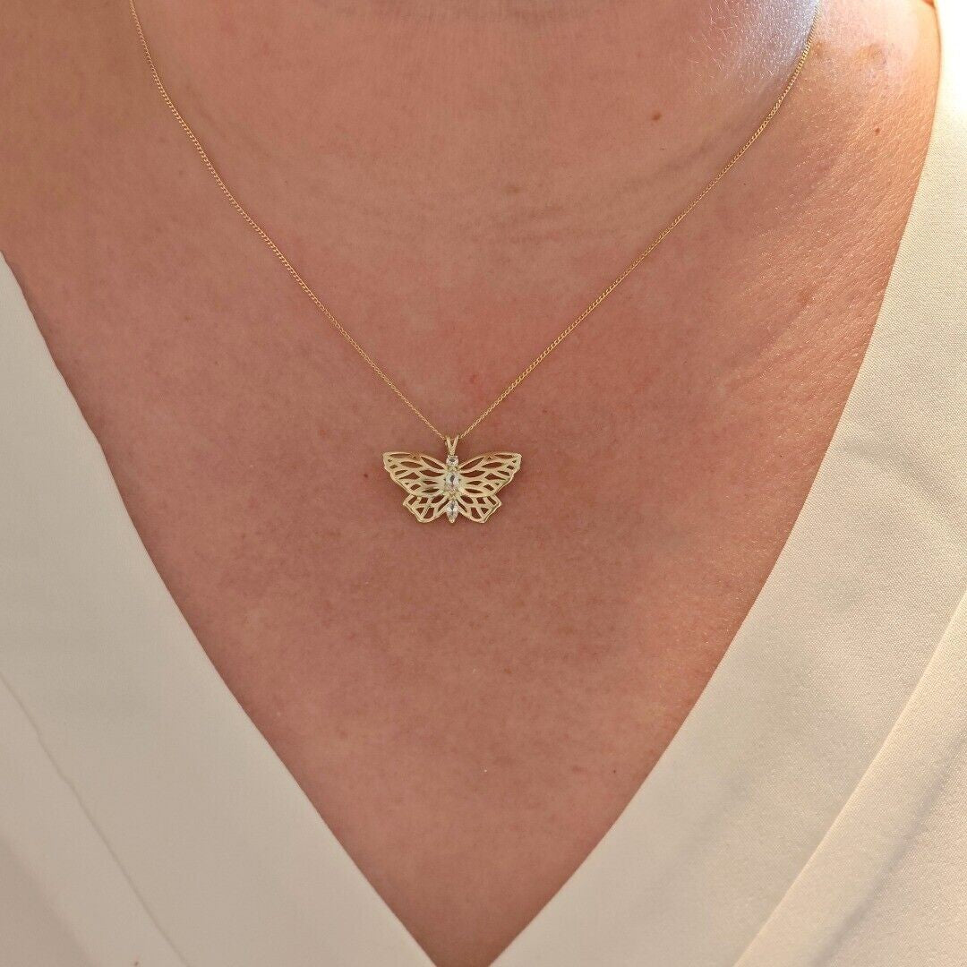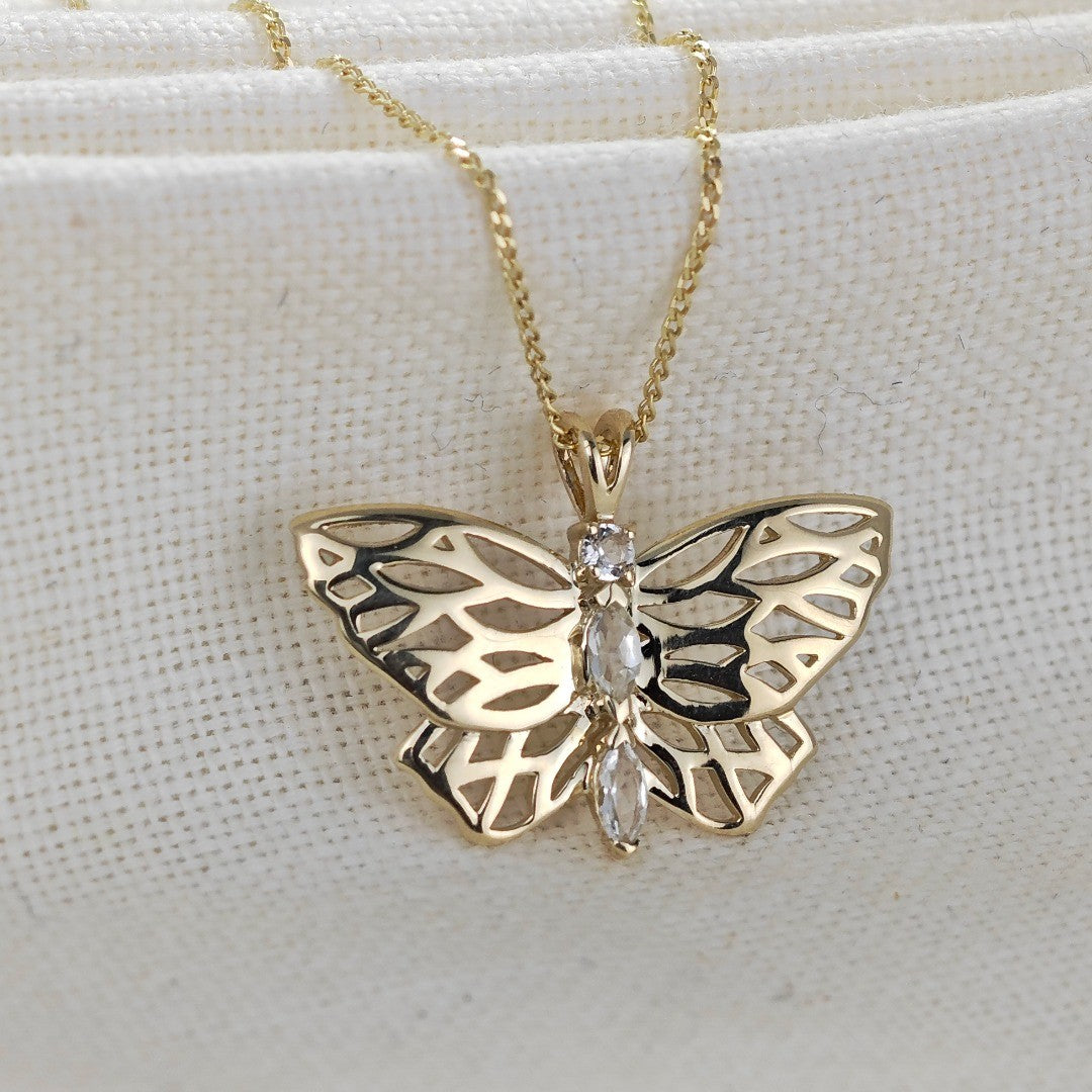 9ct Topaz Butterfly Necklace Yellow Gold Hallmarked Handmade Boxed UK Design
