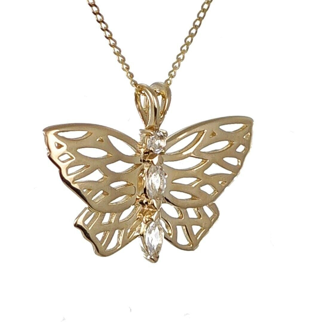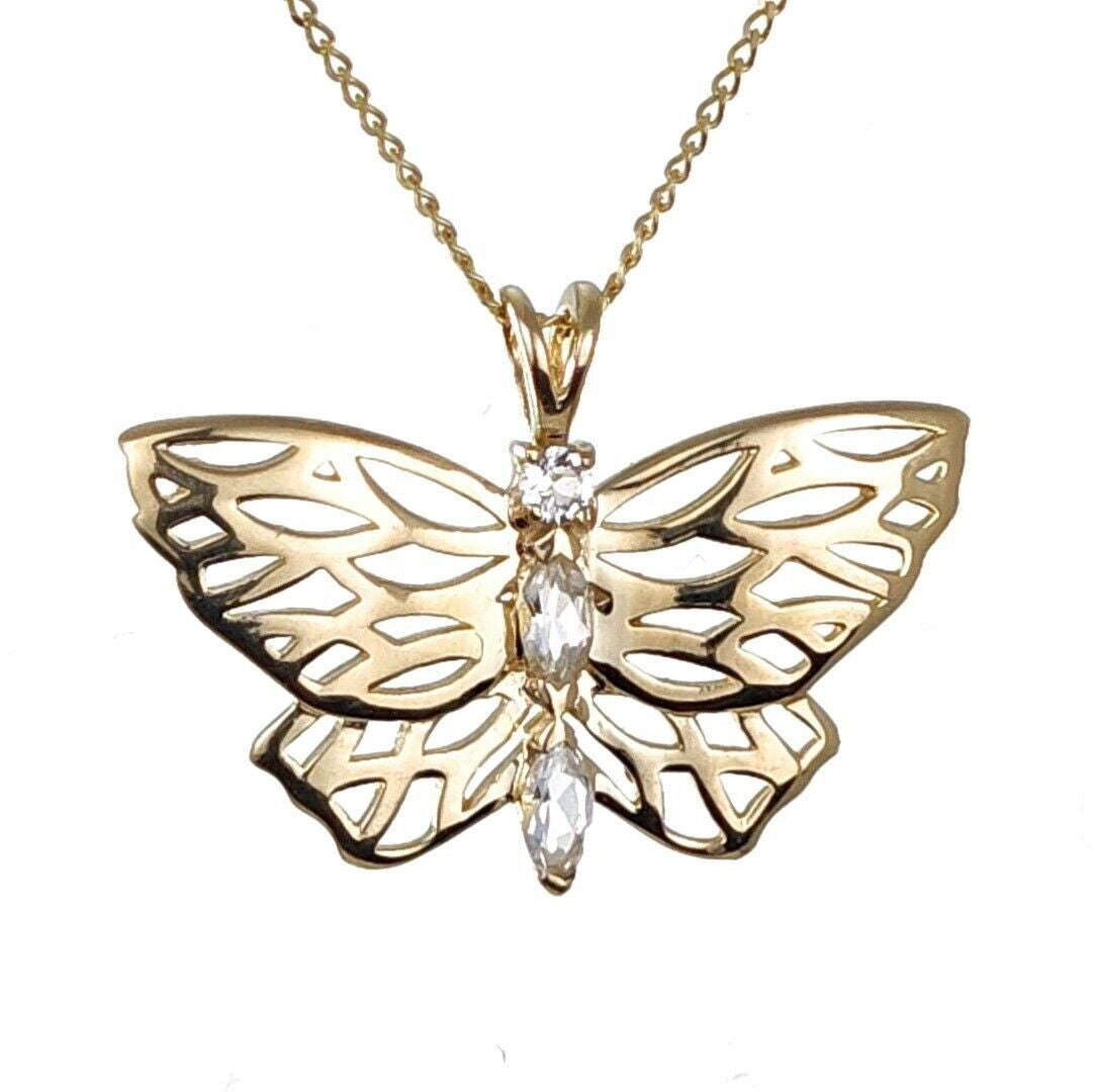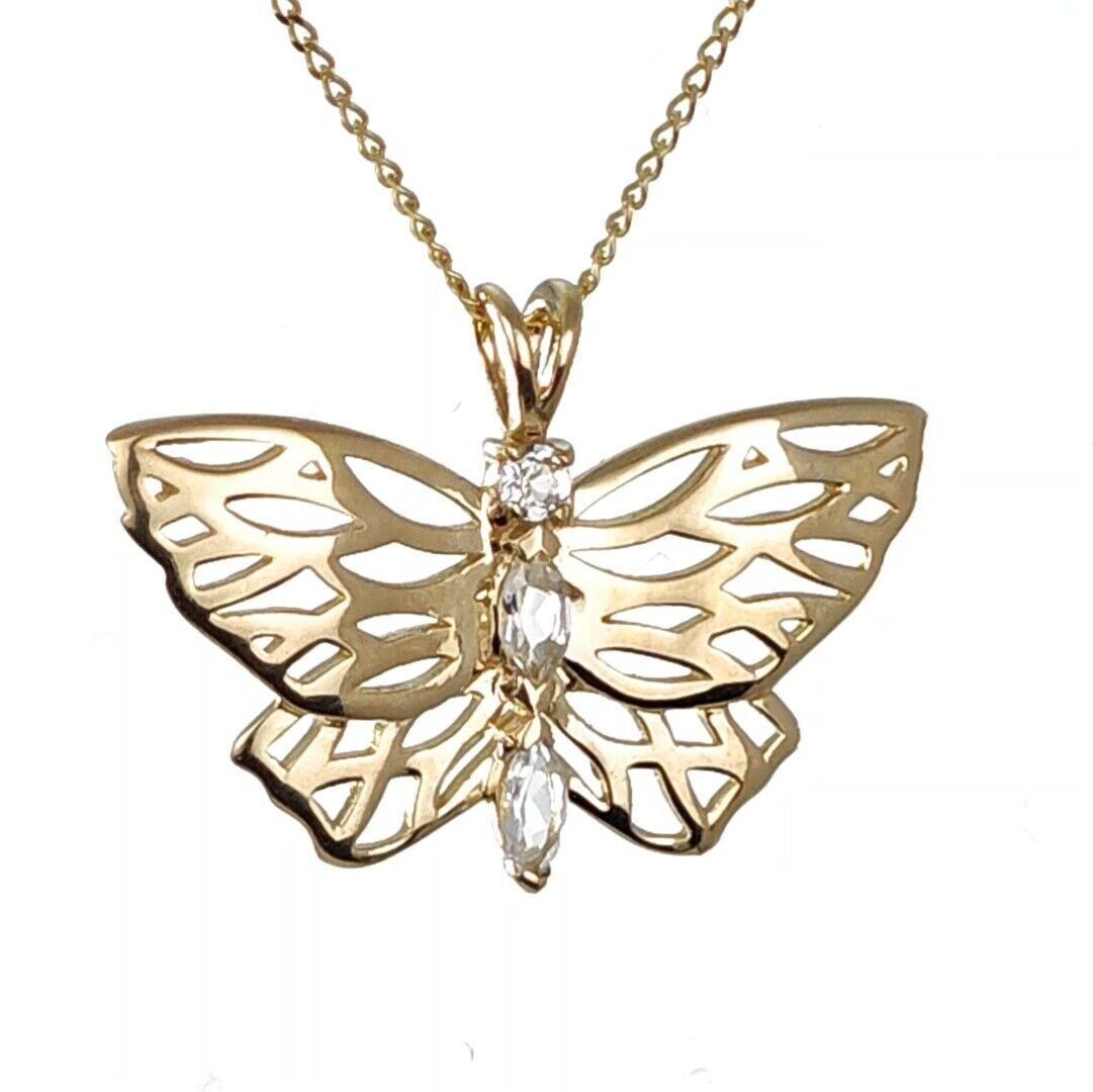9ct Topaz Butterfly Necklace Yellow Gold Hallmarked Handmade Boxed UK Design