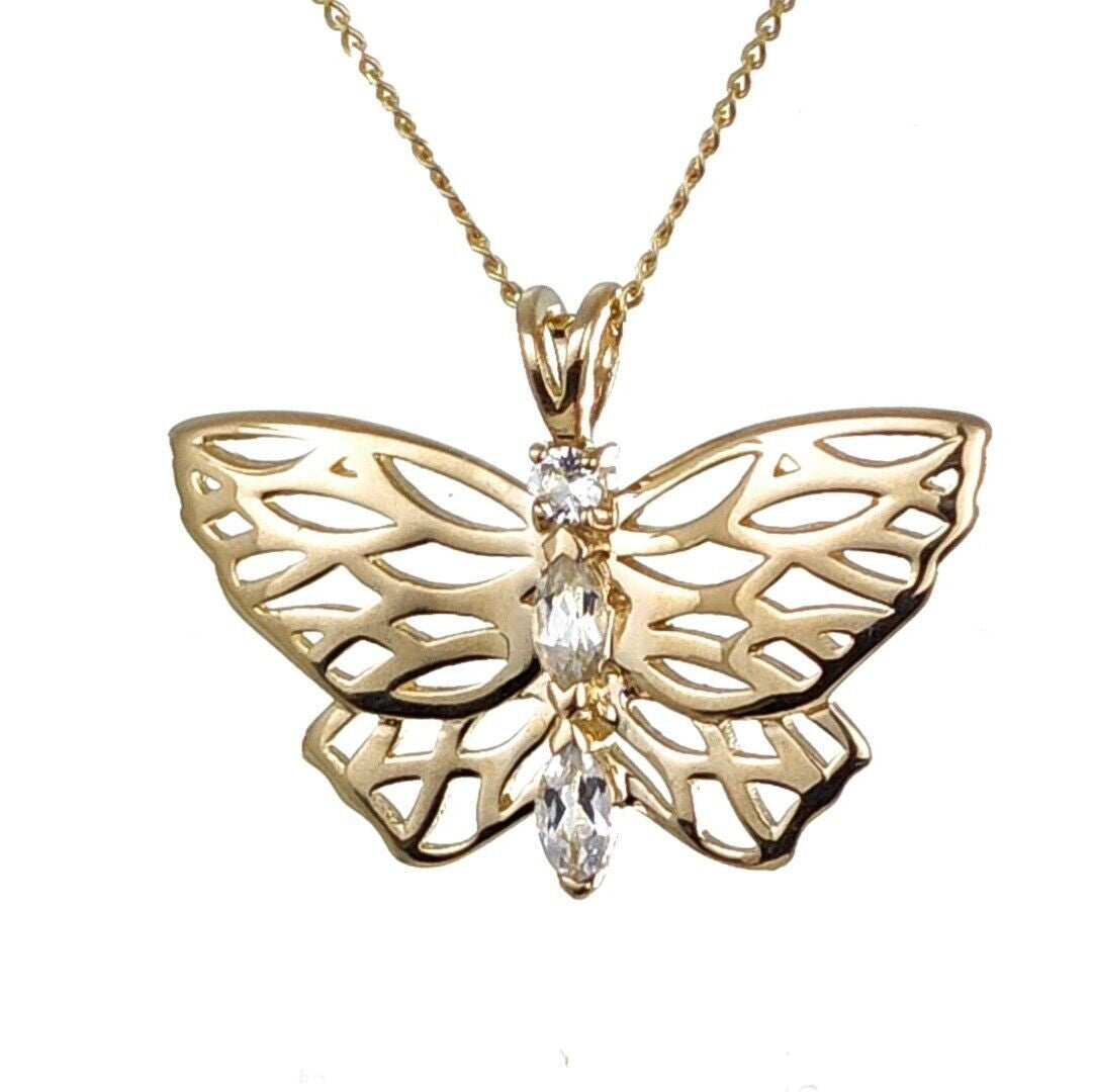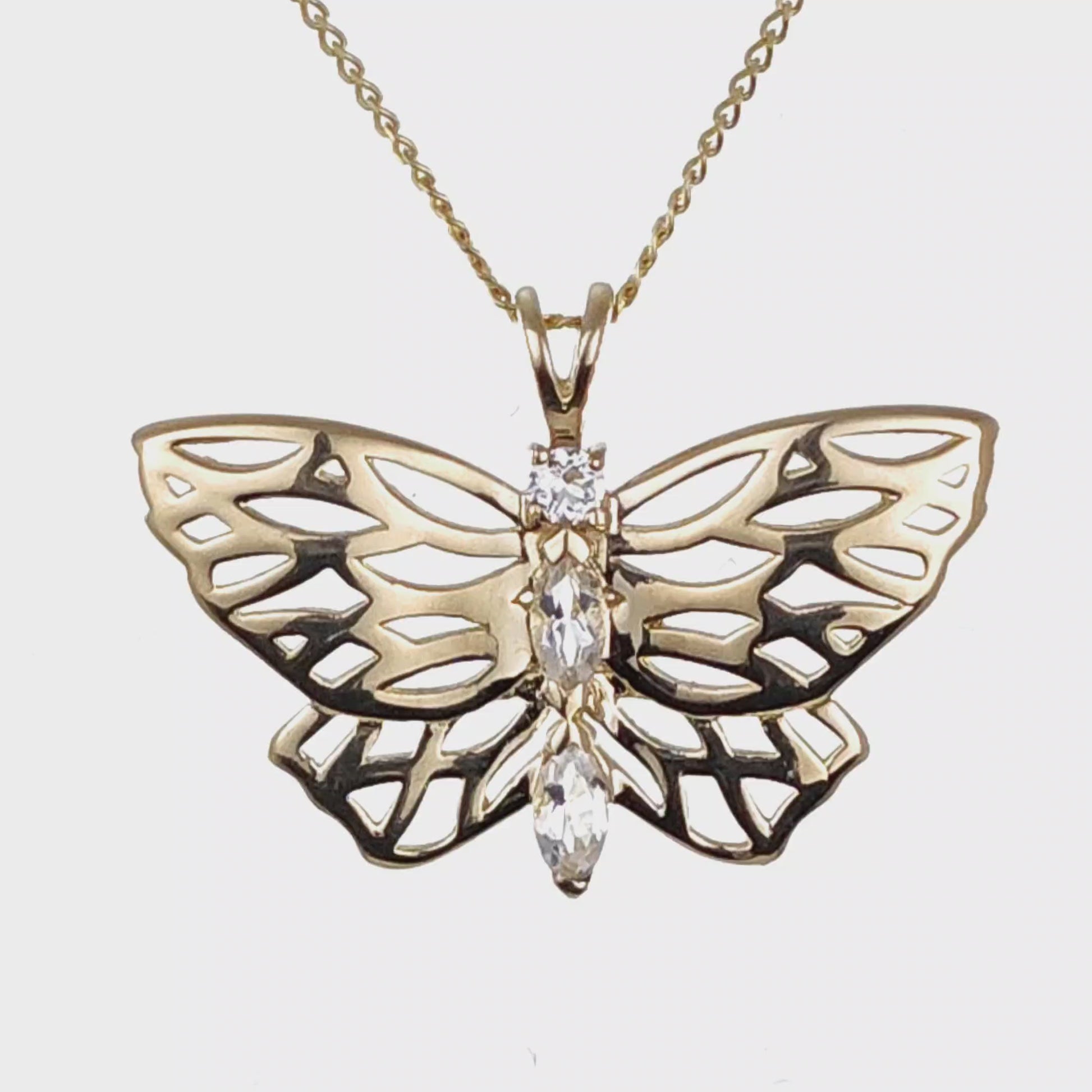 Elegant 9ct Gold white topaz butterfly pendant. Ojewellery design and part of our first full gold collection. Produced in very small quantities you will only find this pendant from Ojewellery direct.