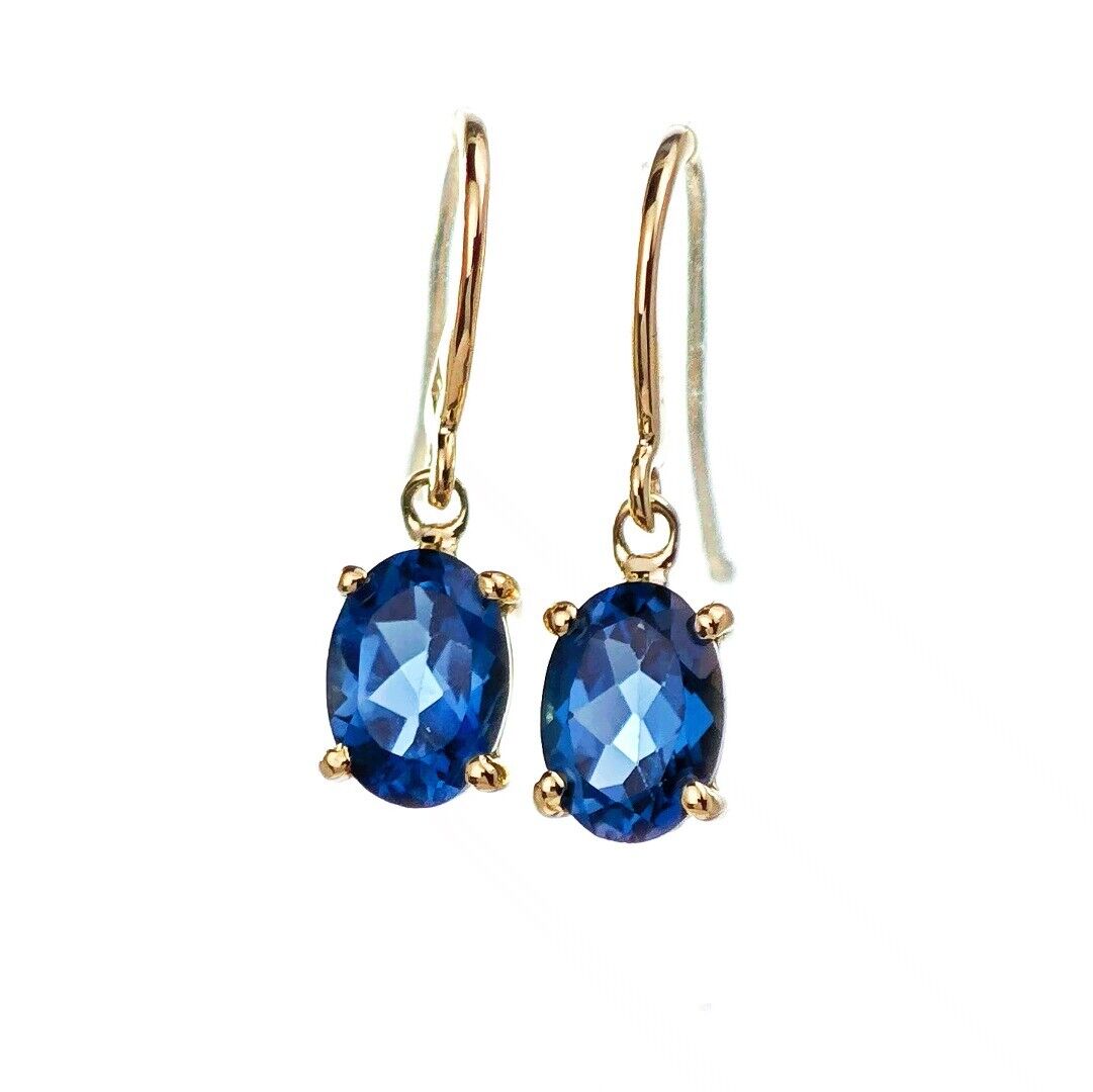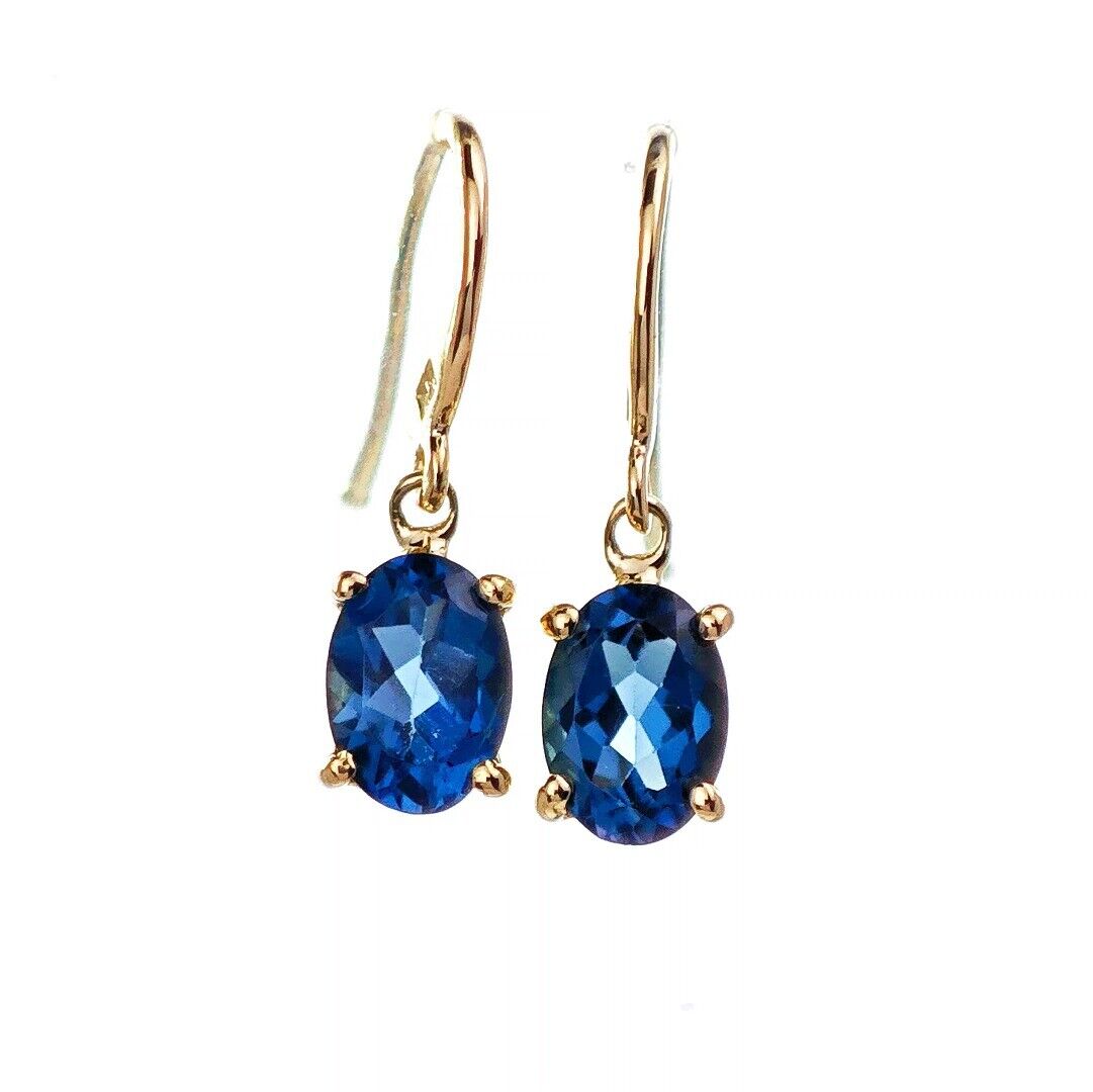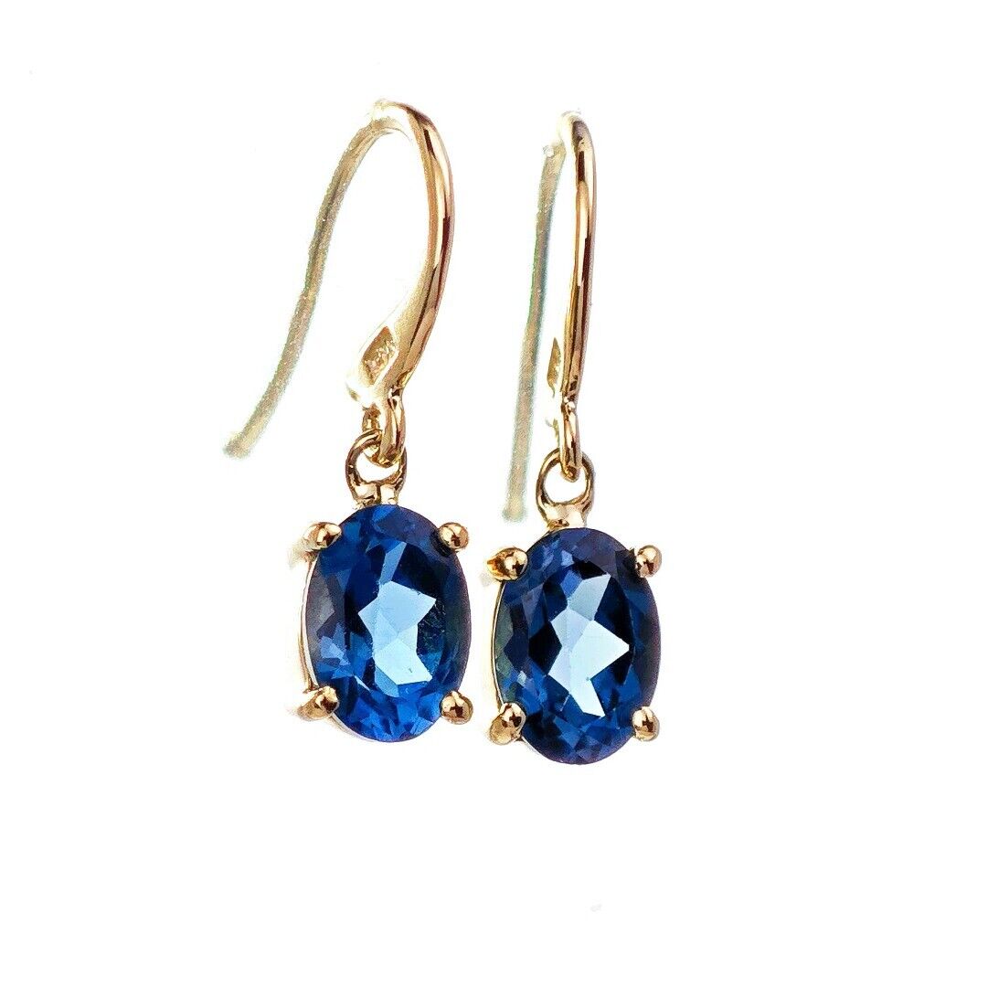 9ct Topaz Dangle Earrings Gold Treated London Blue Natural Gemstones1.82ct
