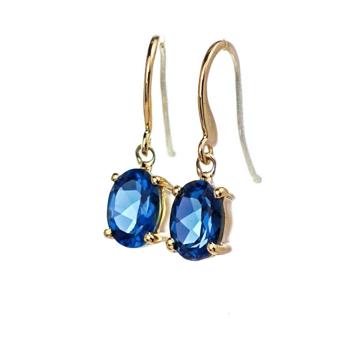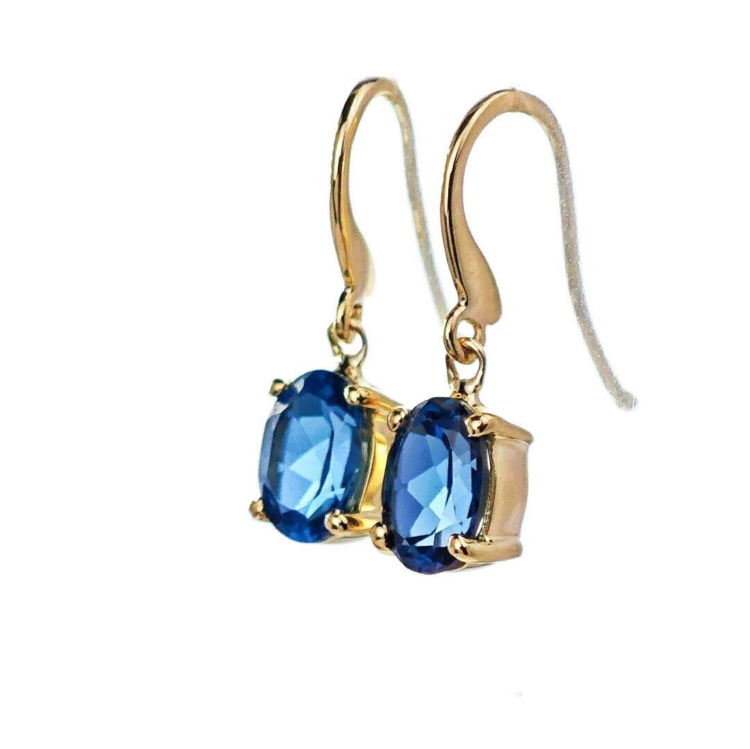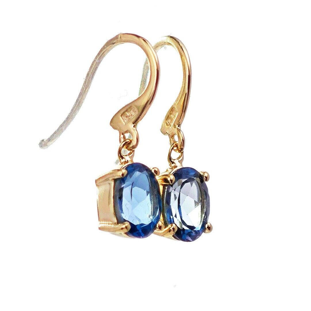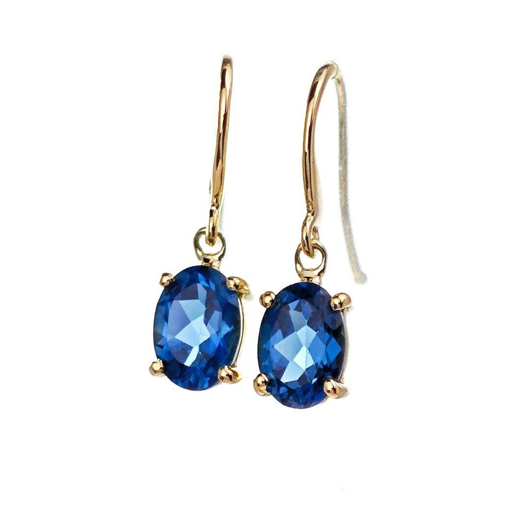 9ct Topaz Dangle Earrings Gold Treated London Blue Natural Gemstones1.82ct