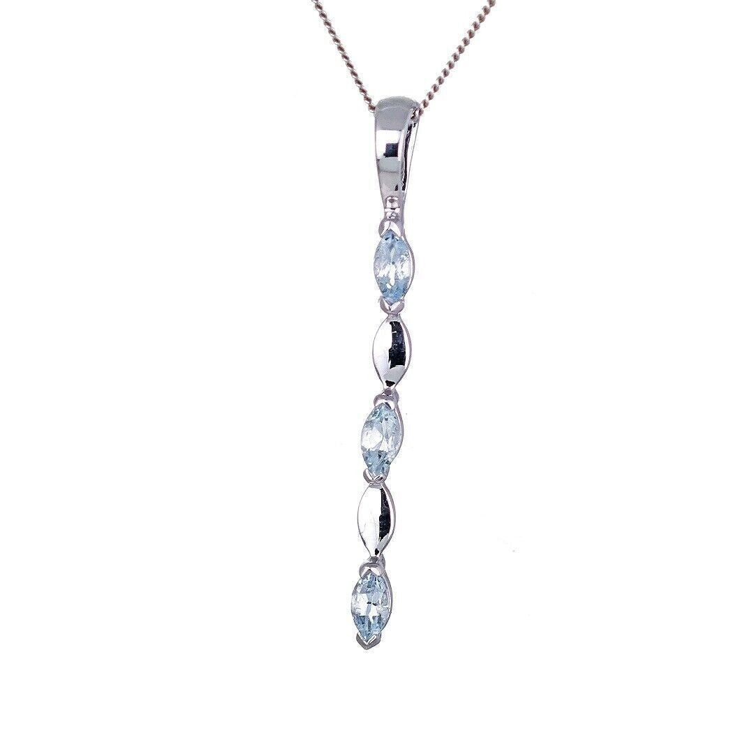 9ct White Gold Aquamarine Necklace Natural Blue Marquise Gemstone