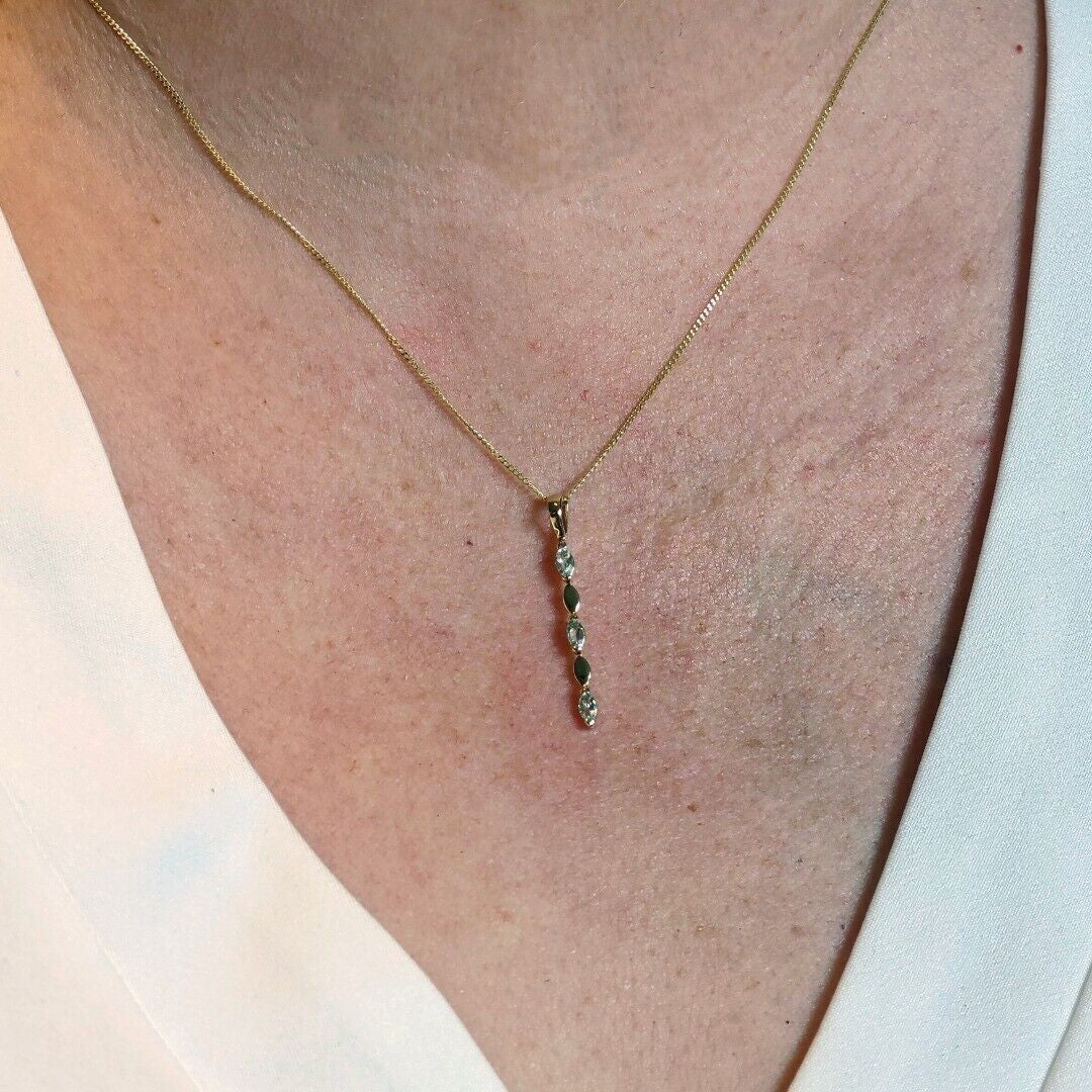 9ct Yellow Gold Aquamarine Necklace Natural Blue Marquise Gemstones