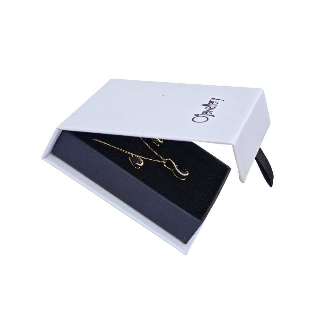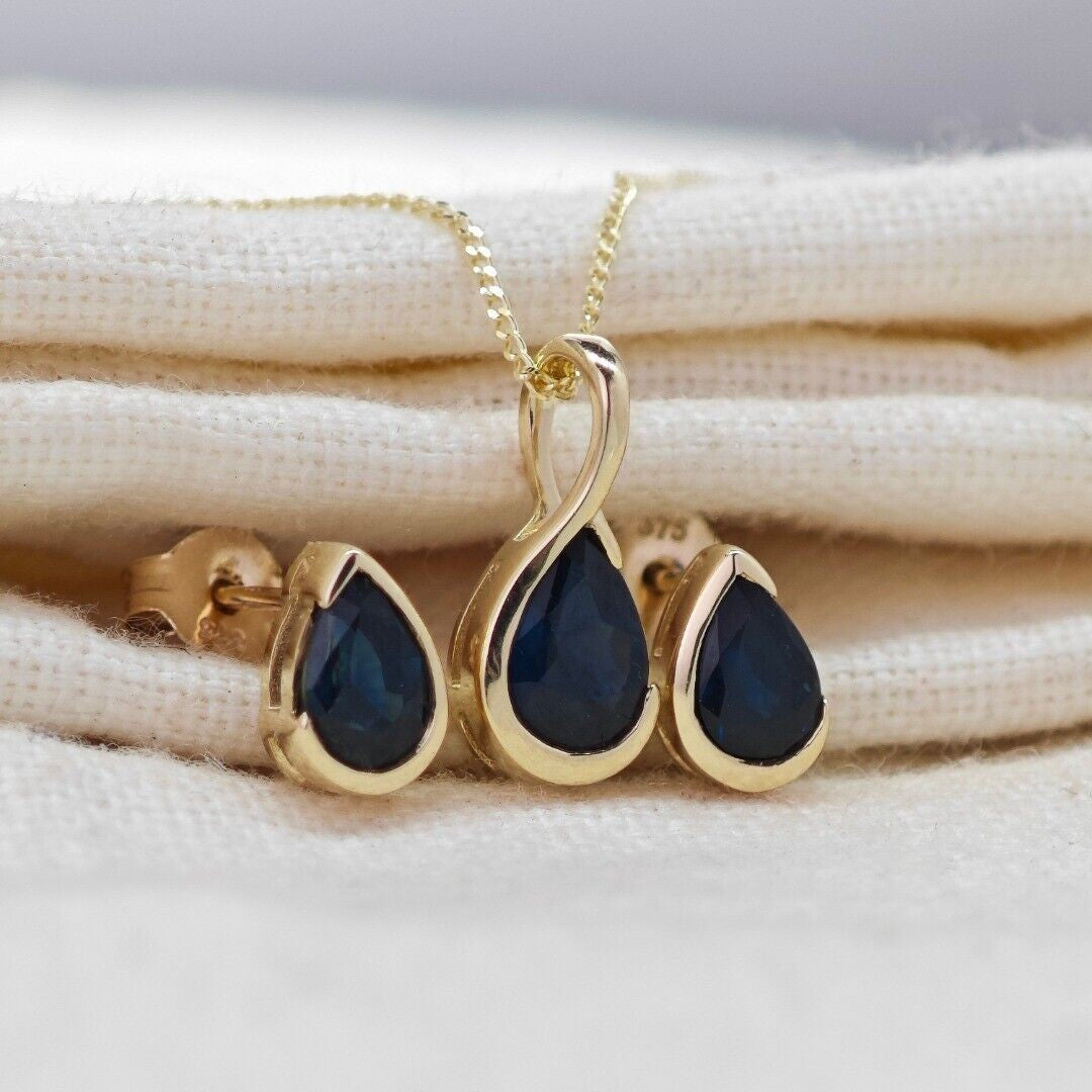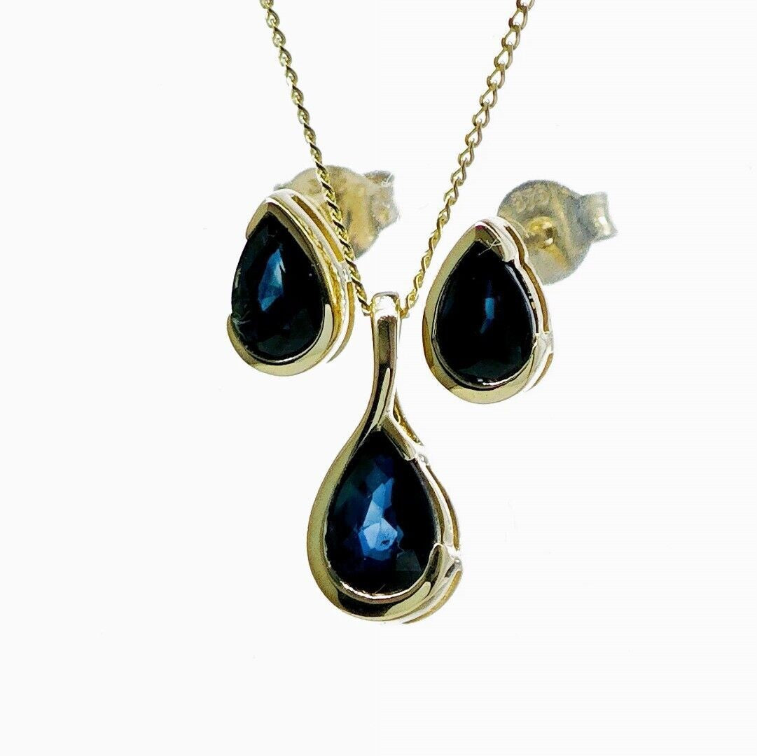 9ct Yellow Gold Blue Sapphire Set Pendant Stud Earrings Infinity Loop Natural Gemstone