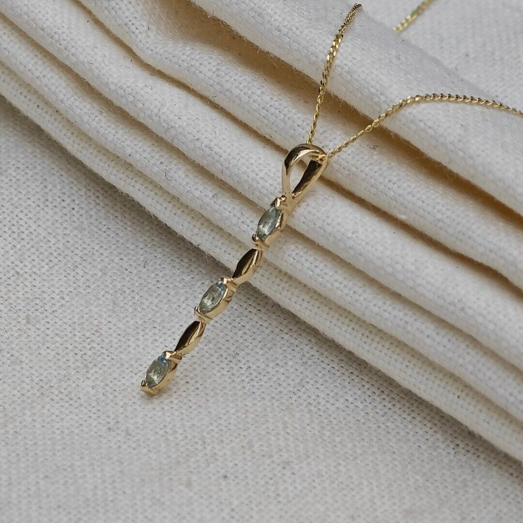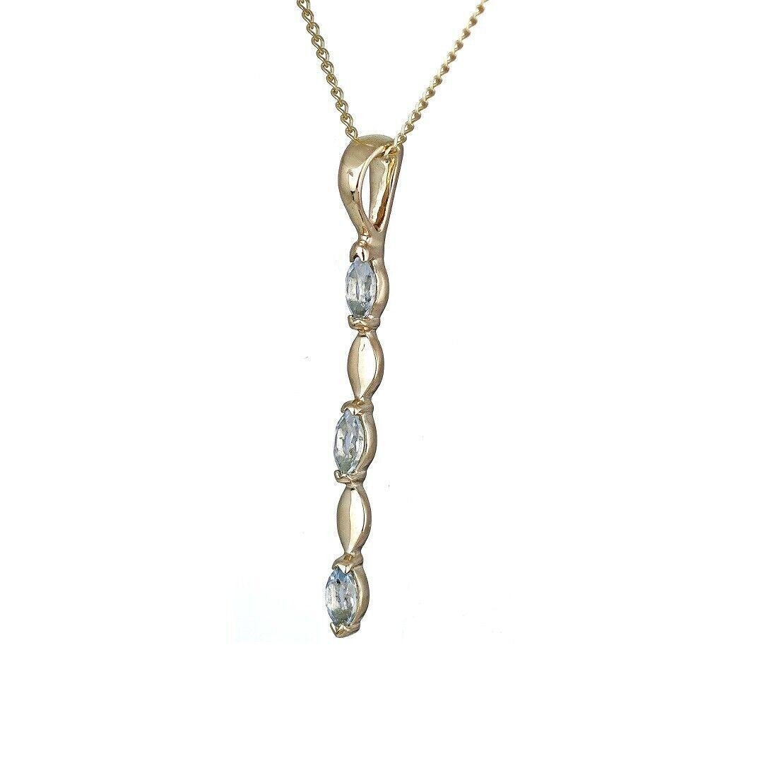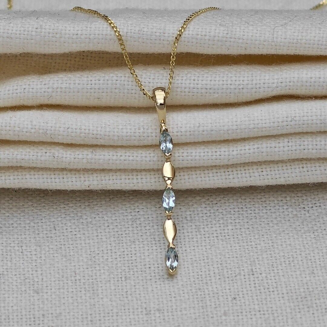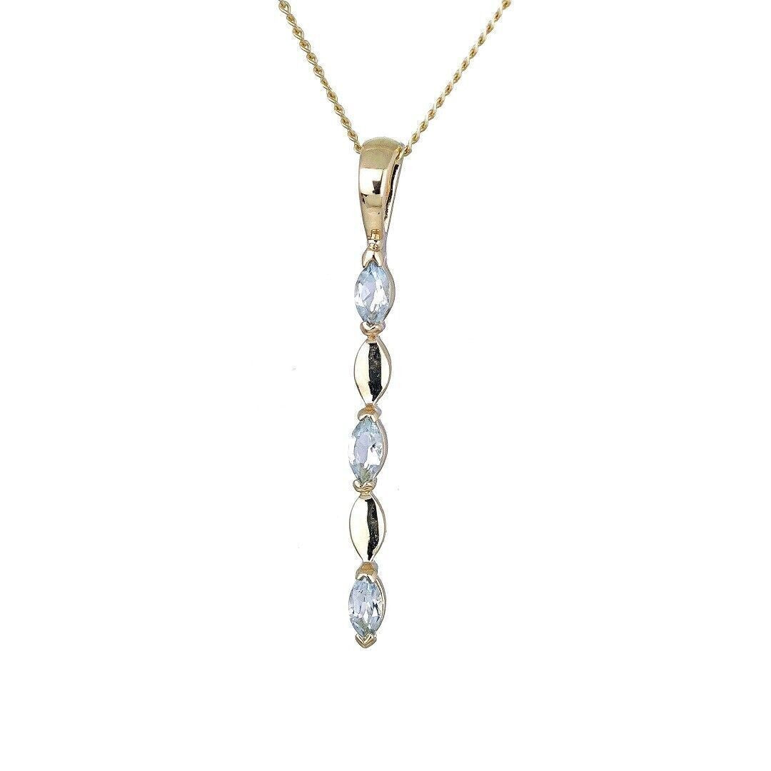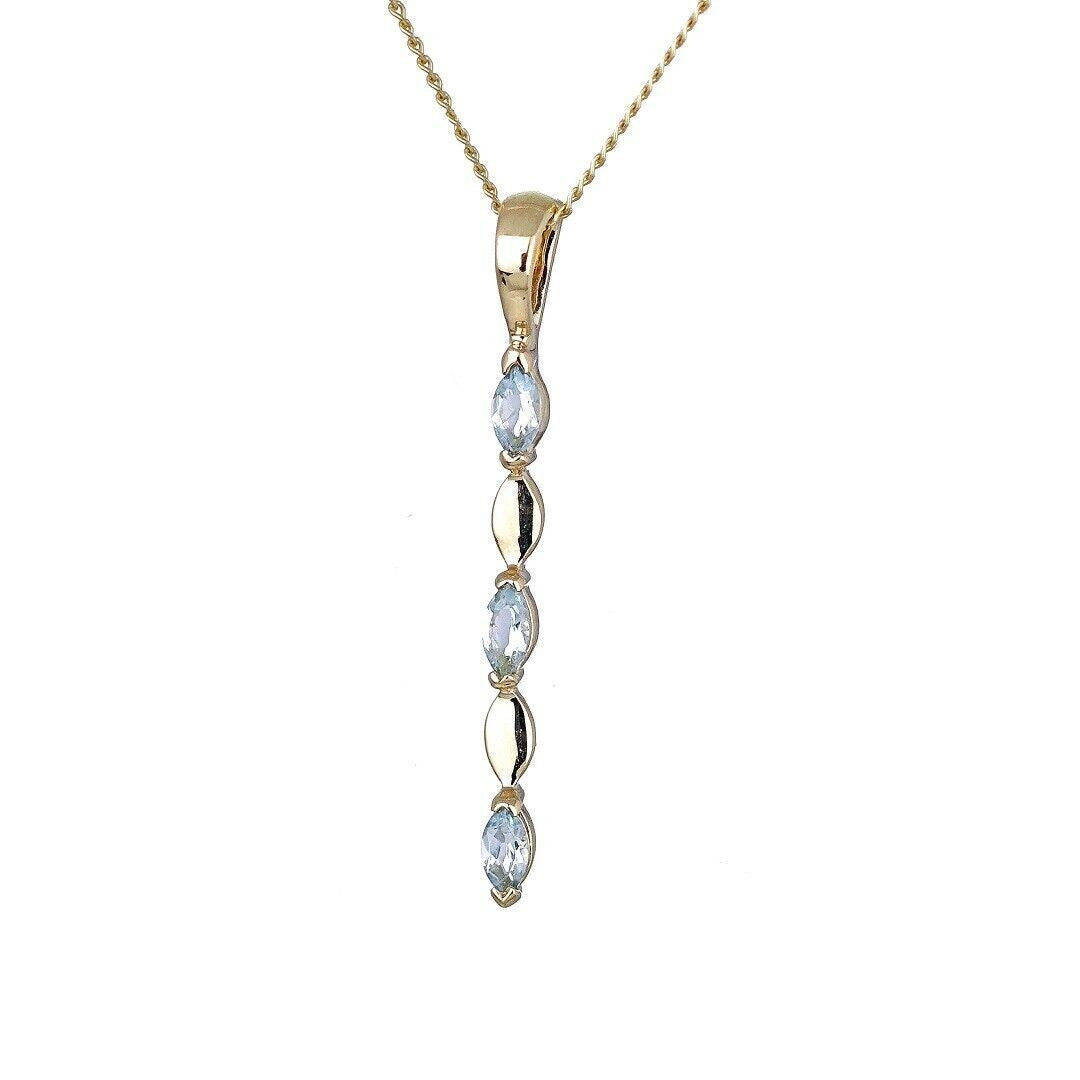 9ct Yellow Gold Blue Topaz Necklace Natural Treated Marquise Gemstones