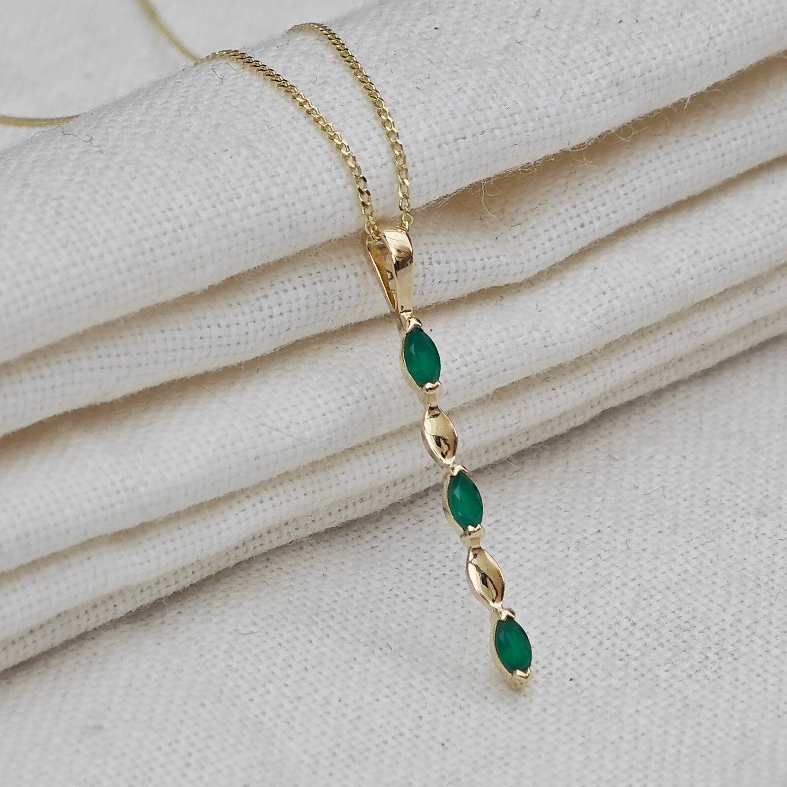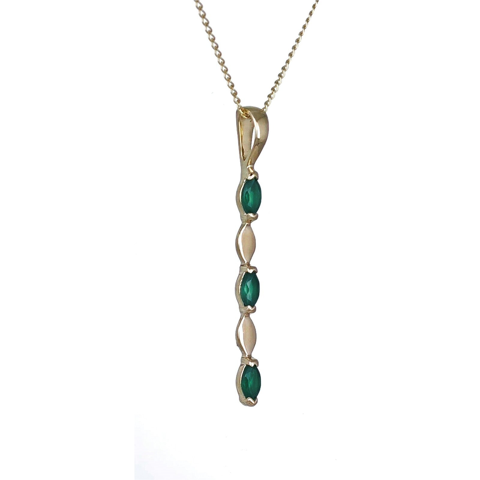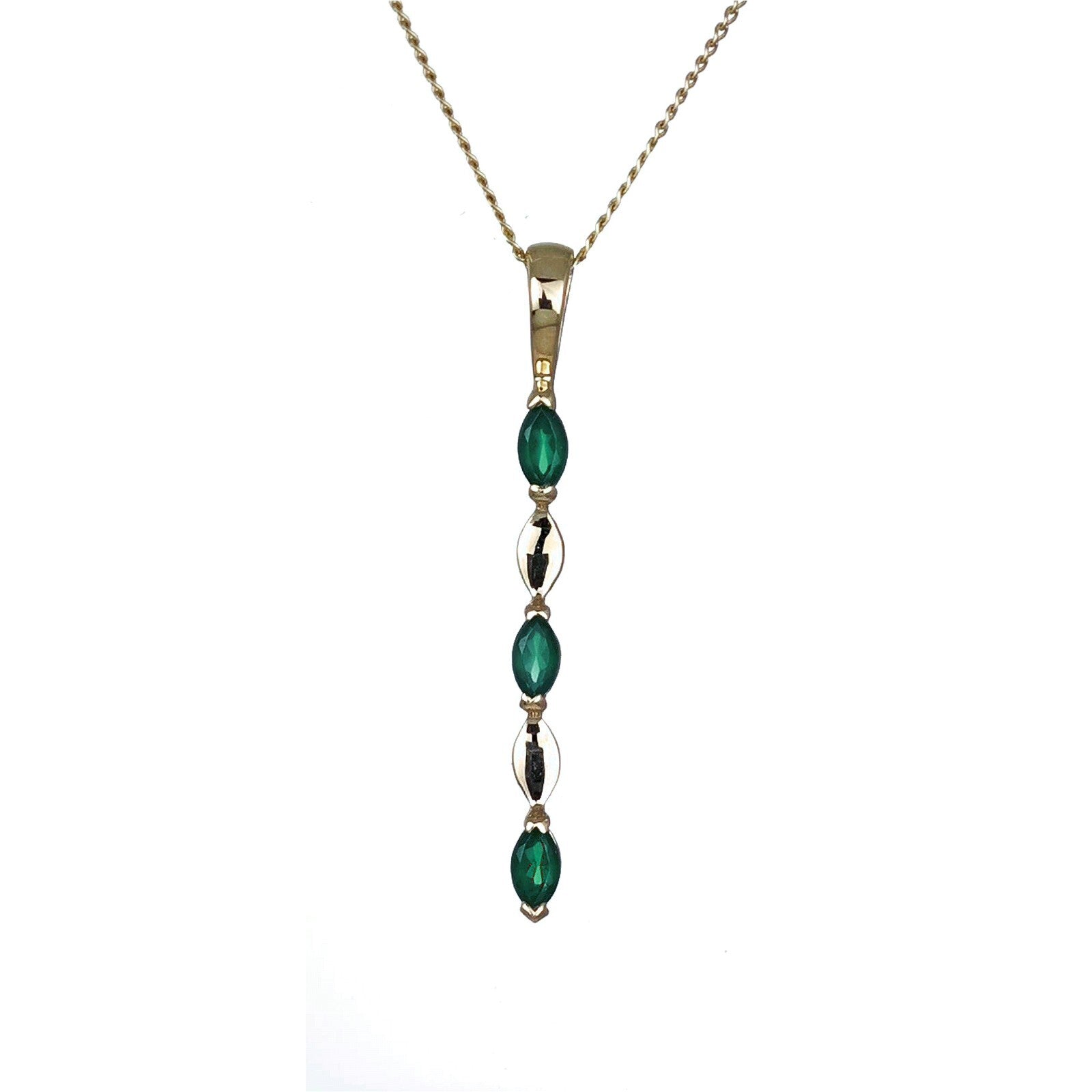 9ct Yellow Gold Green Onyx Necklace Natural Marquise Gemstones