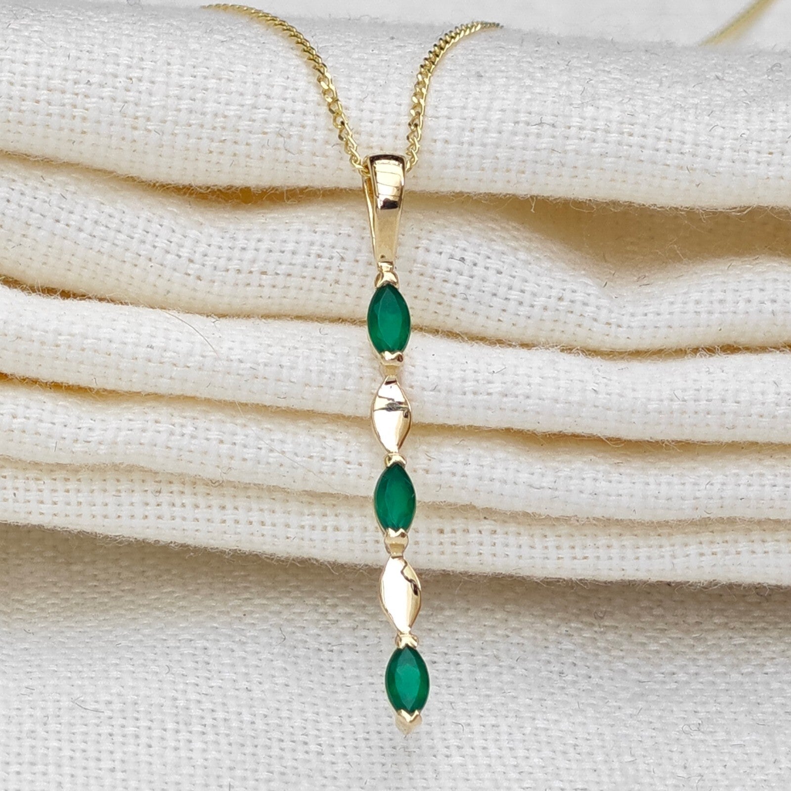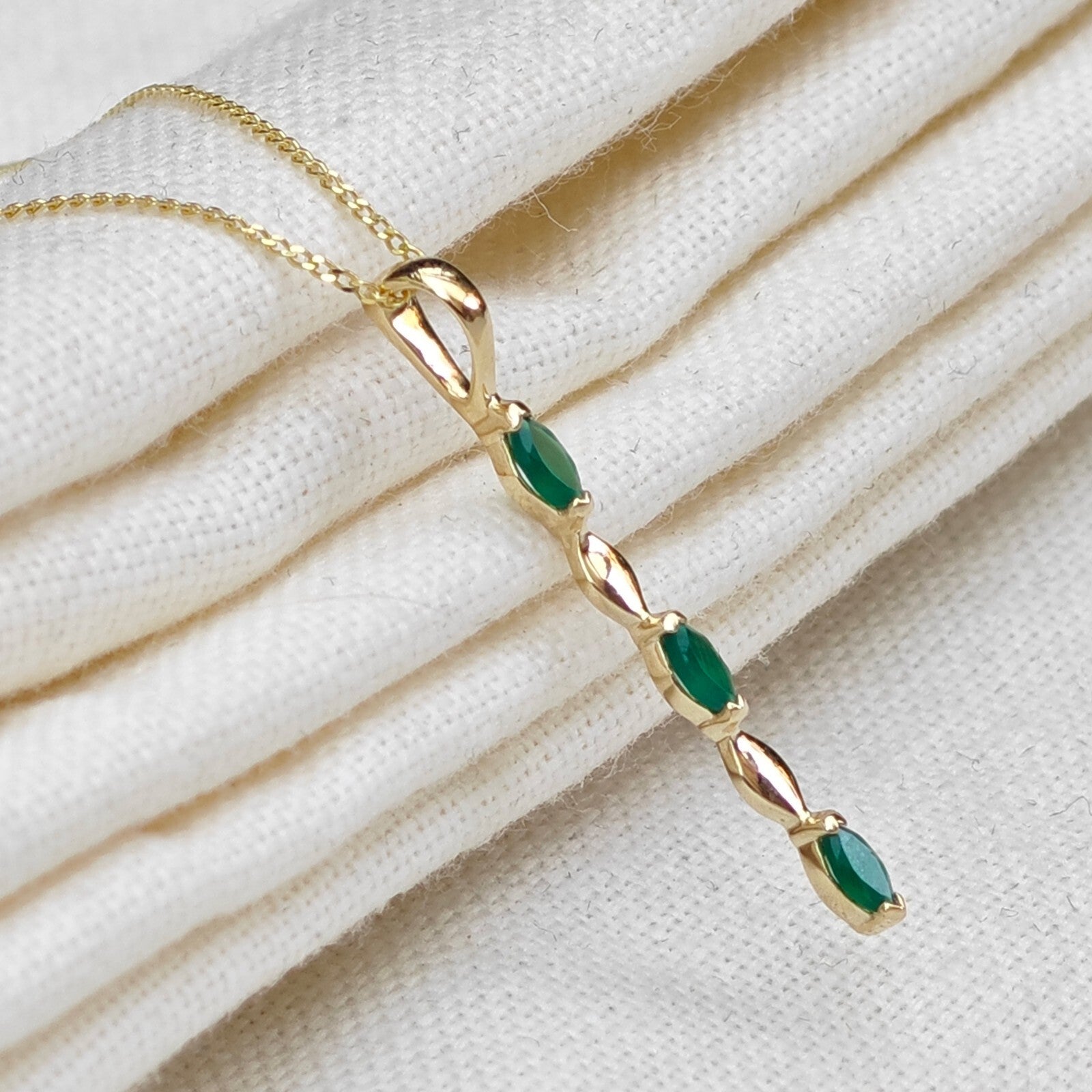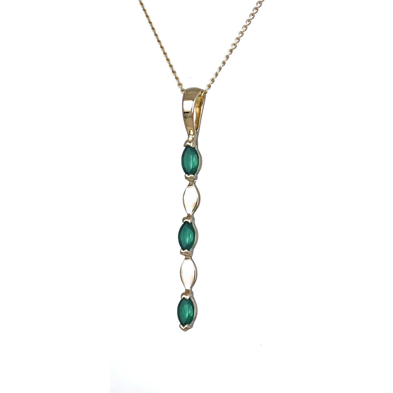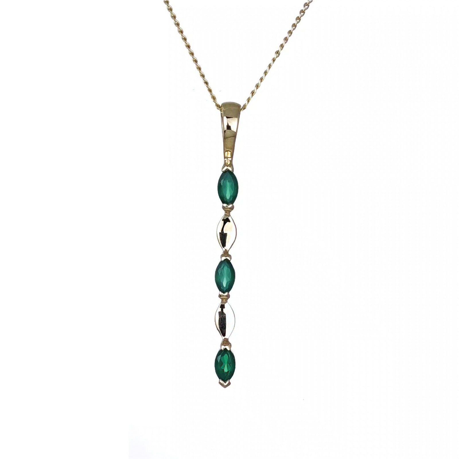 9ct Yellow Gold Green Onyx Necklace Natural Marquise Gemstones