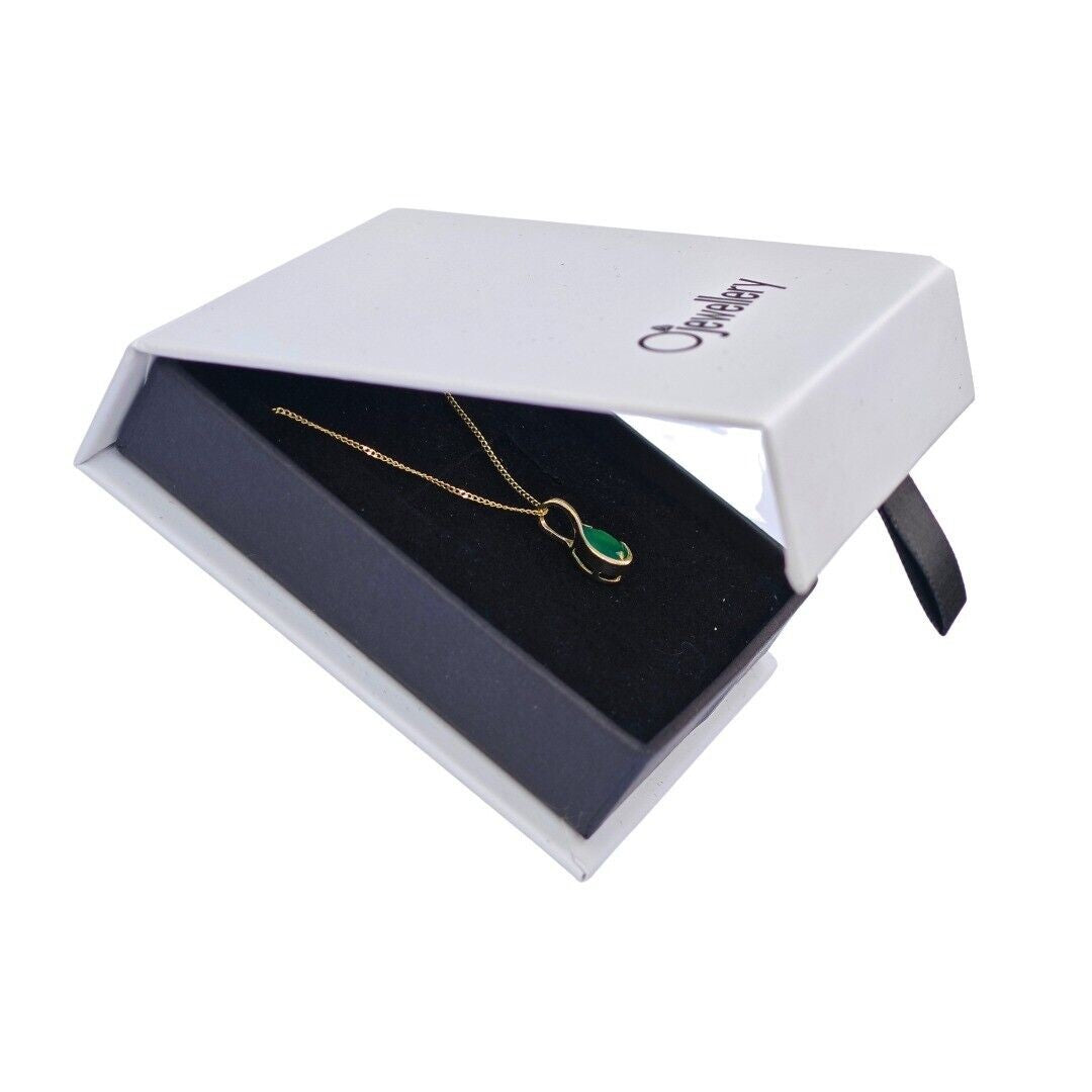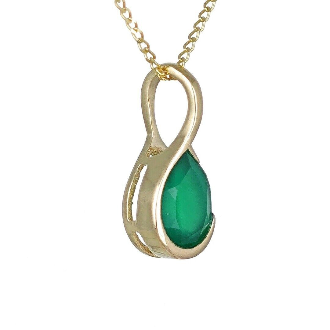 9ct Yellow Gold Necklace Infinity Loop Green Natural Onyx Gemstone Handmade