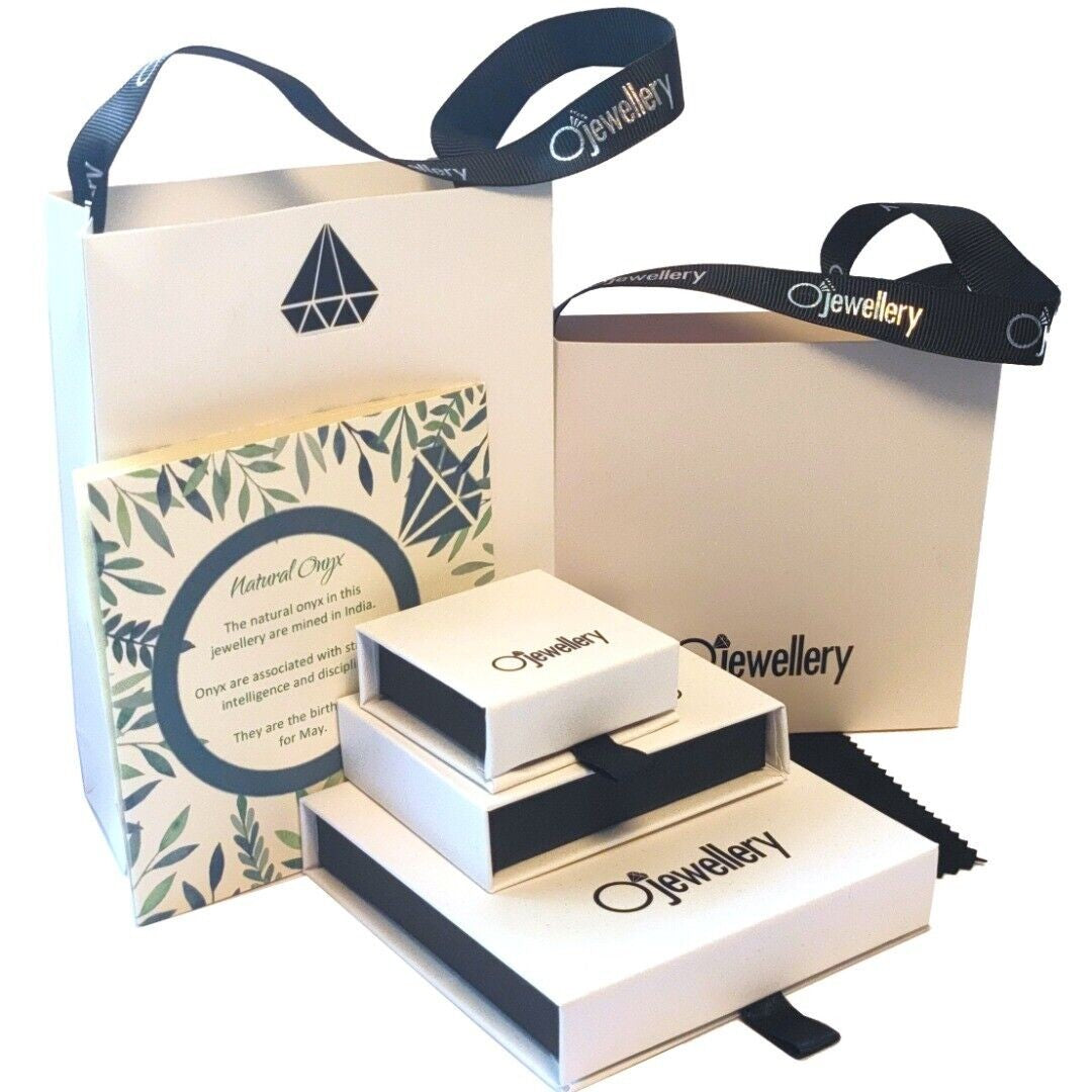 Supplied in an Ojewellery presentation box, within a ribbon handled gift bag, complete with product information authenticity card with space for a gift message and a jewellery cleaning cloth to keep your jewellery in ready to wear condition.
