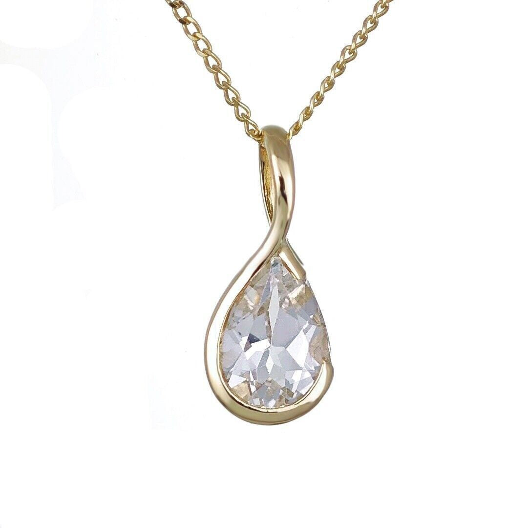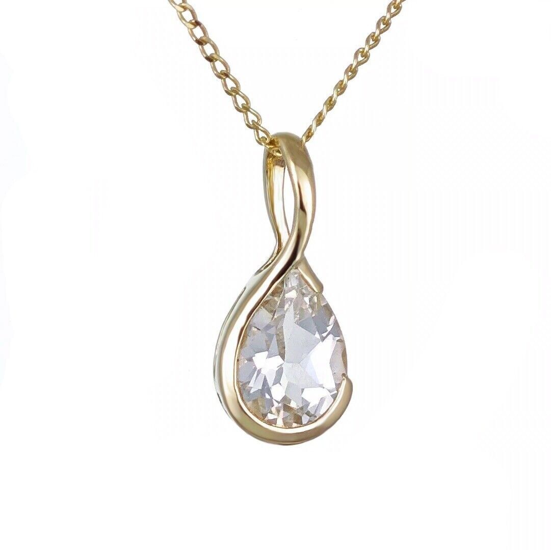 9ct Yellow Gold Topaz Necklace Infinity Loop Natural Gemstone Handmade