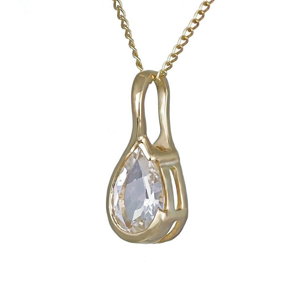 This elegant Topaz necklace is designed in the UK and handmade. It features a natural African topaz gemstone. The stone is set in a raised flush setting made of 9ct yellow gold to allow light to the back of the stone and show off its natural sparkle. White Topaz are associated with love self esteem and good fortune. They are the birthstone for April
